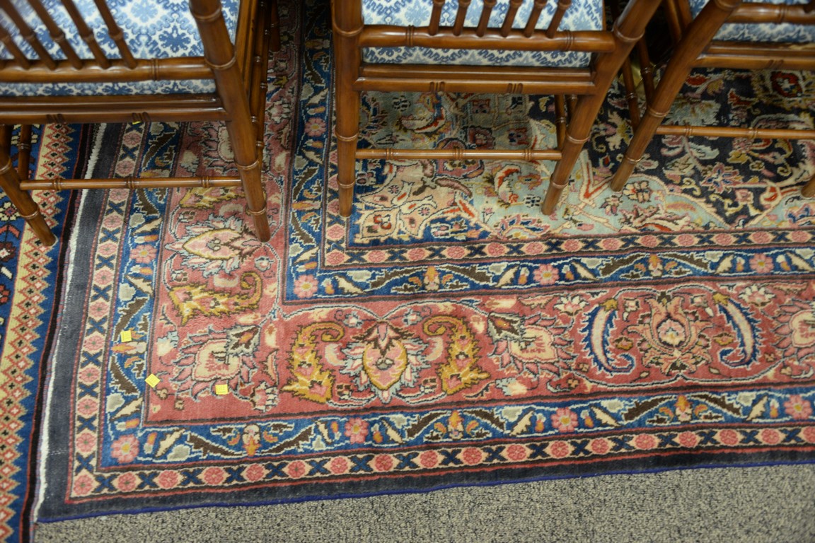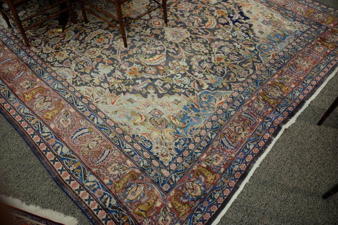 Oriental carpet signed on edge. 9’4 x 13′ Provenance: Estate of Dr. Steve Leder