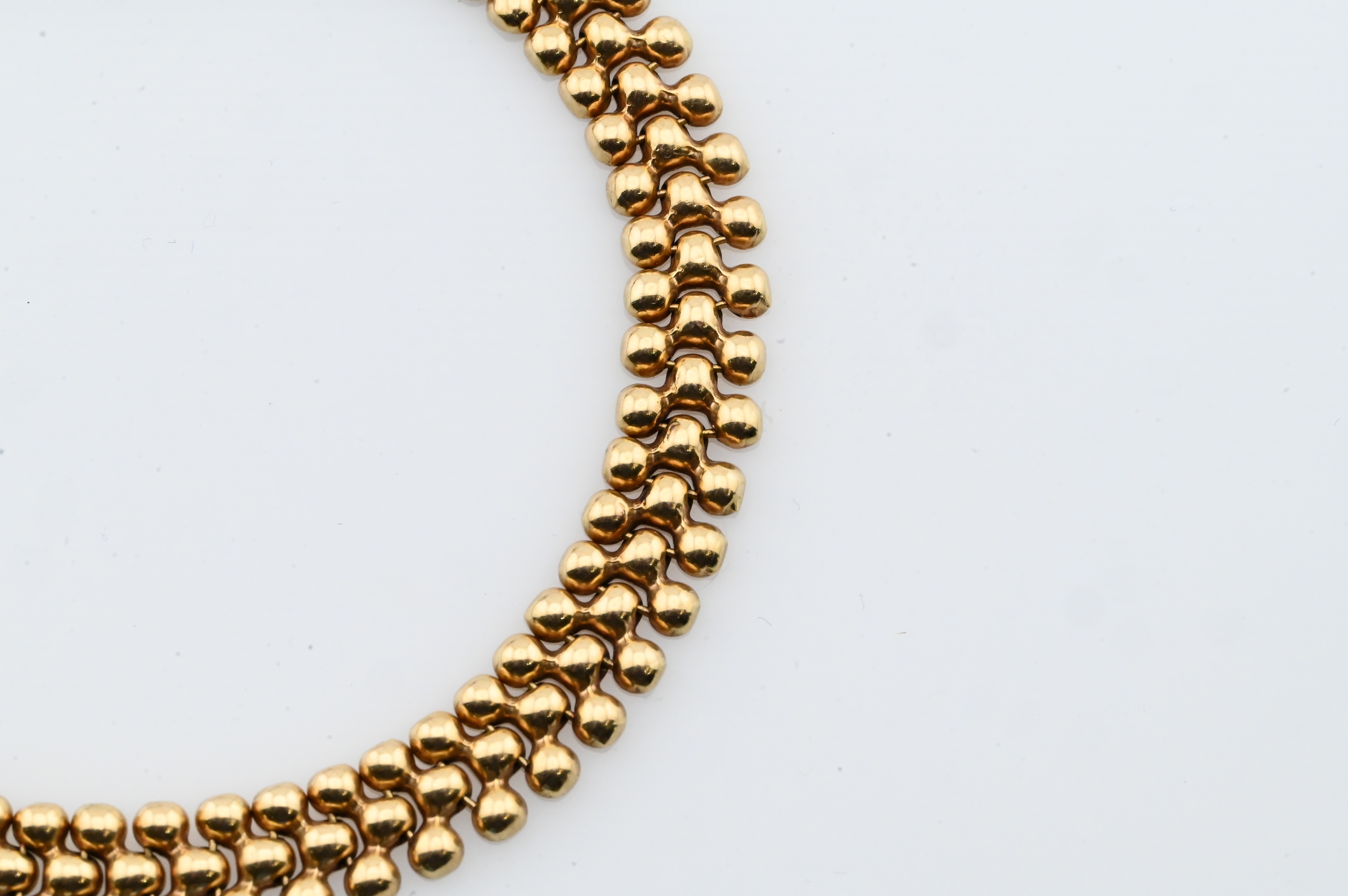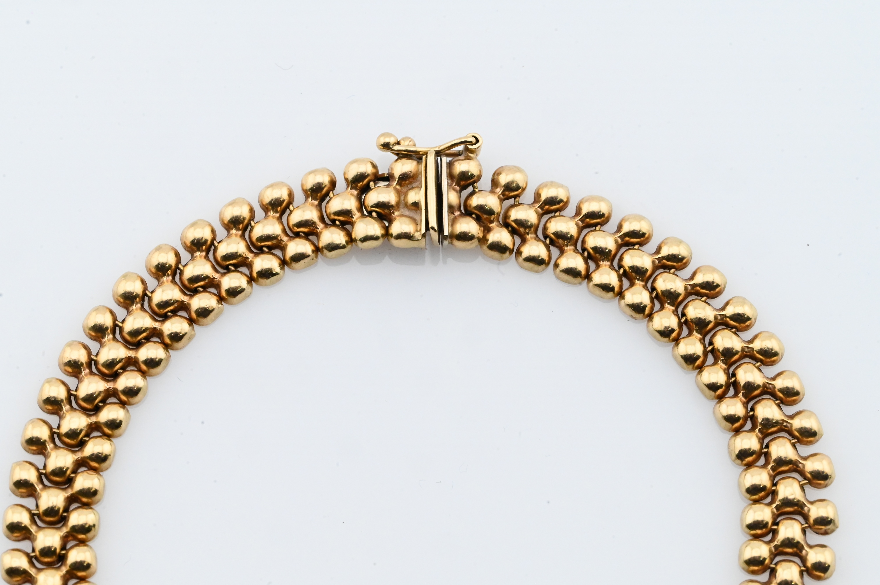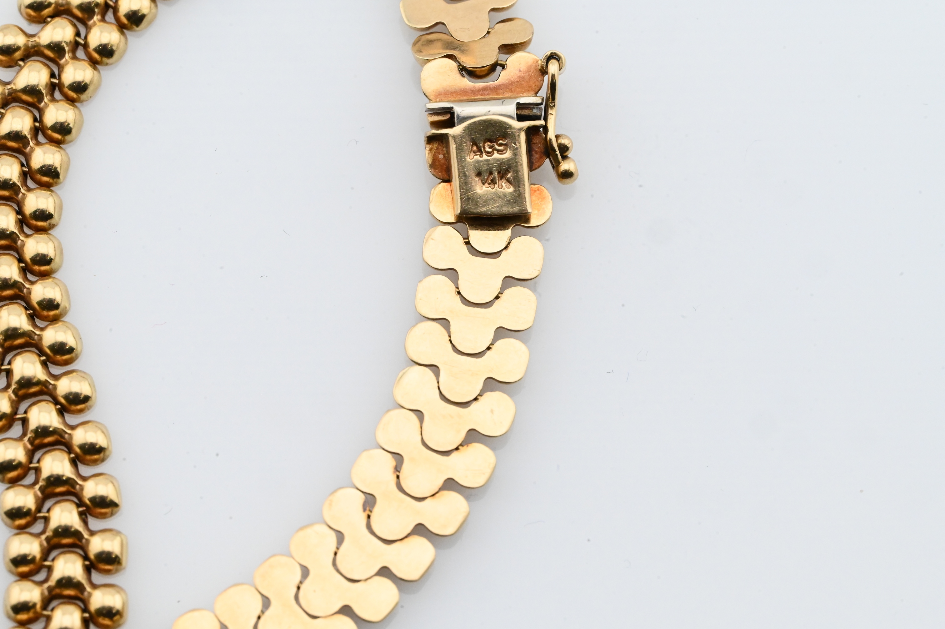 having beaded popcorn links marked “14K / AG5”
