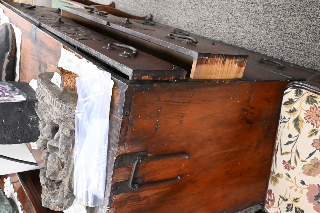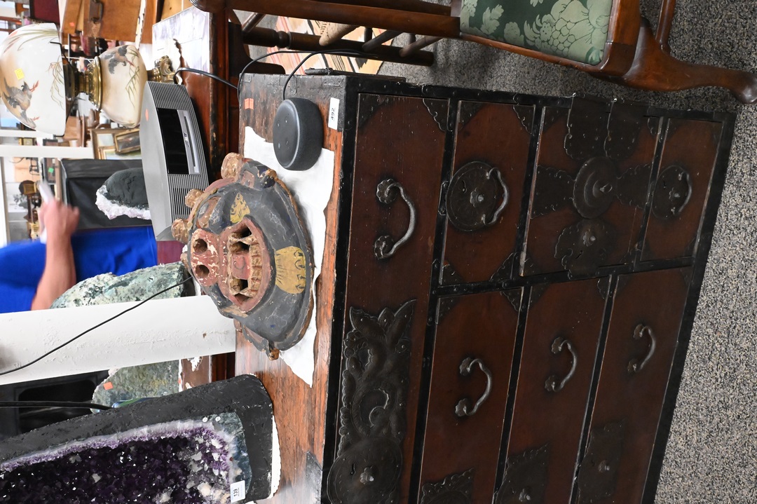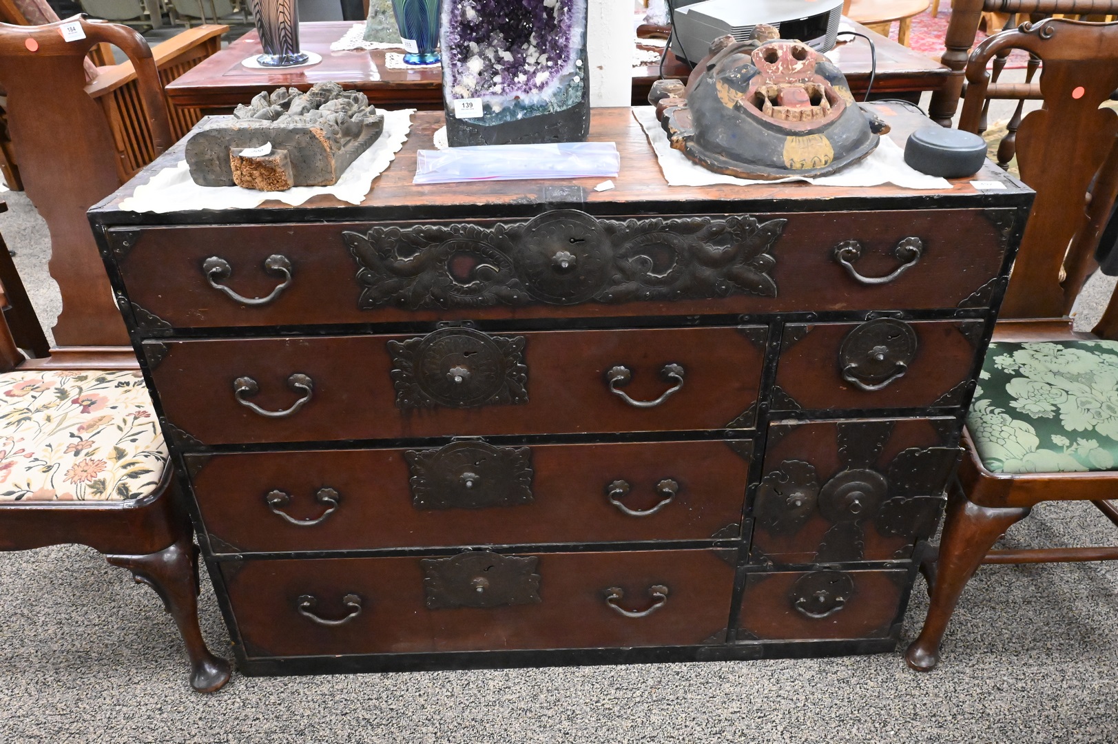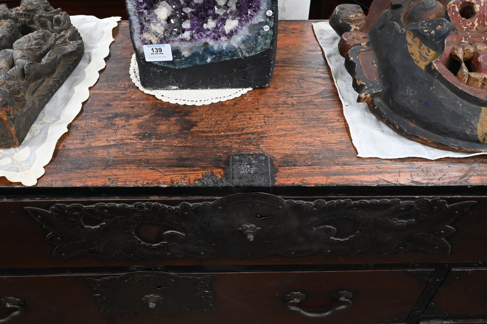 Asian Chest, having drawers, door and brass mounts, probably 18th century, height 34 1/2 inches, top 17″ x 46 1/4″.