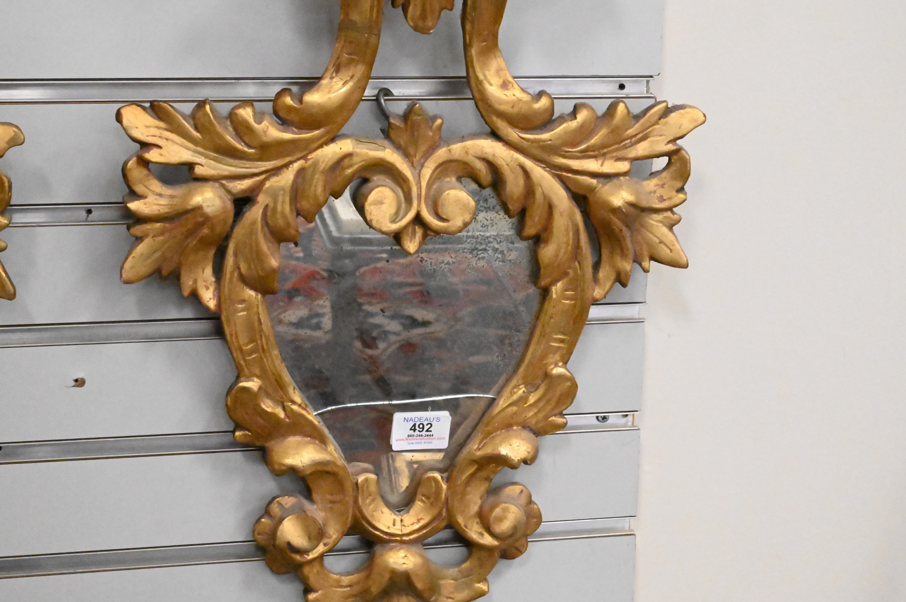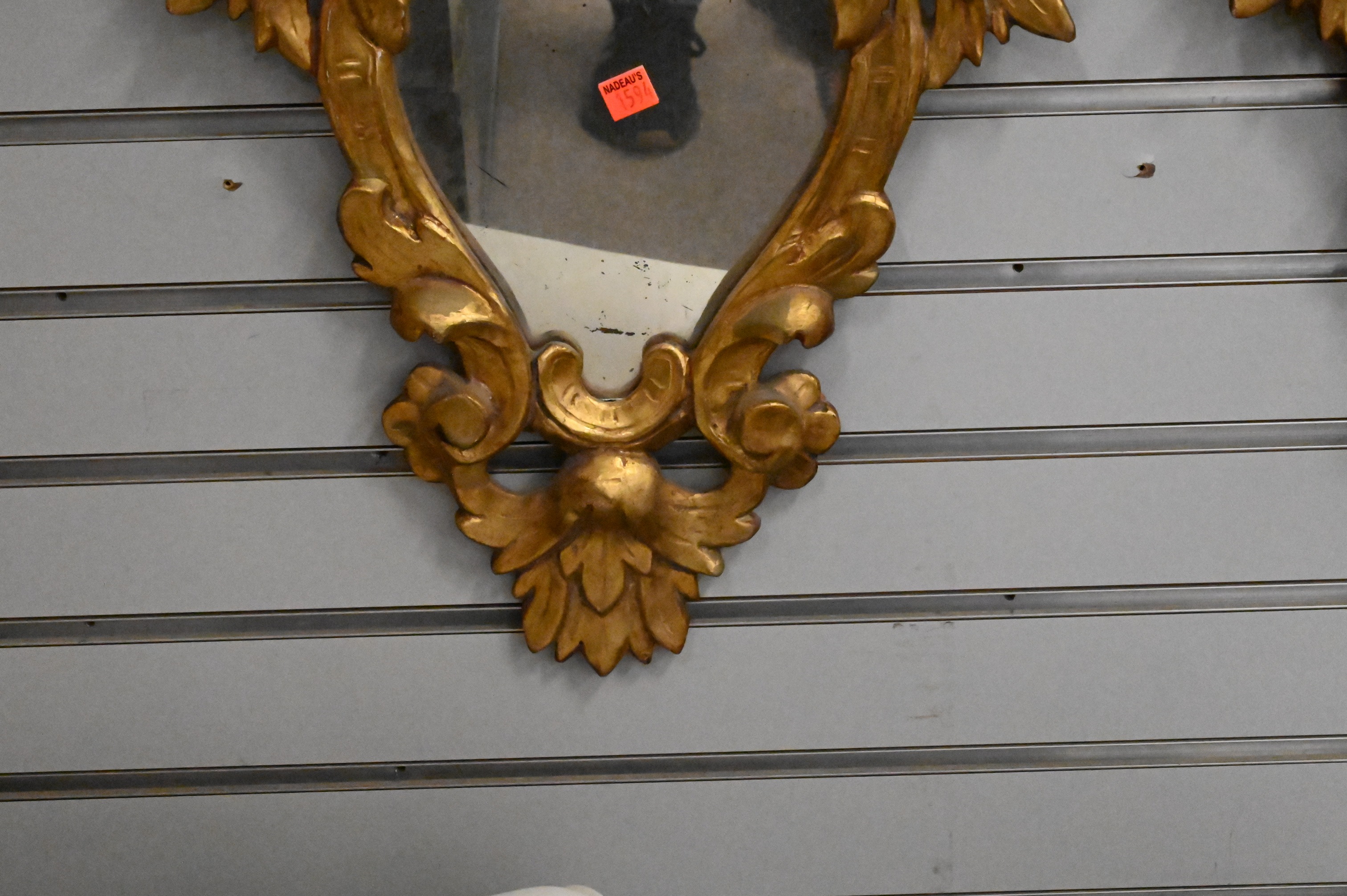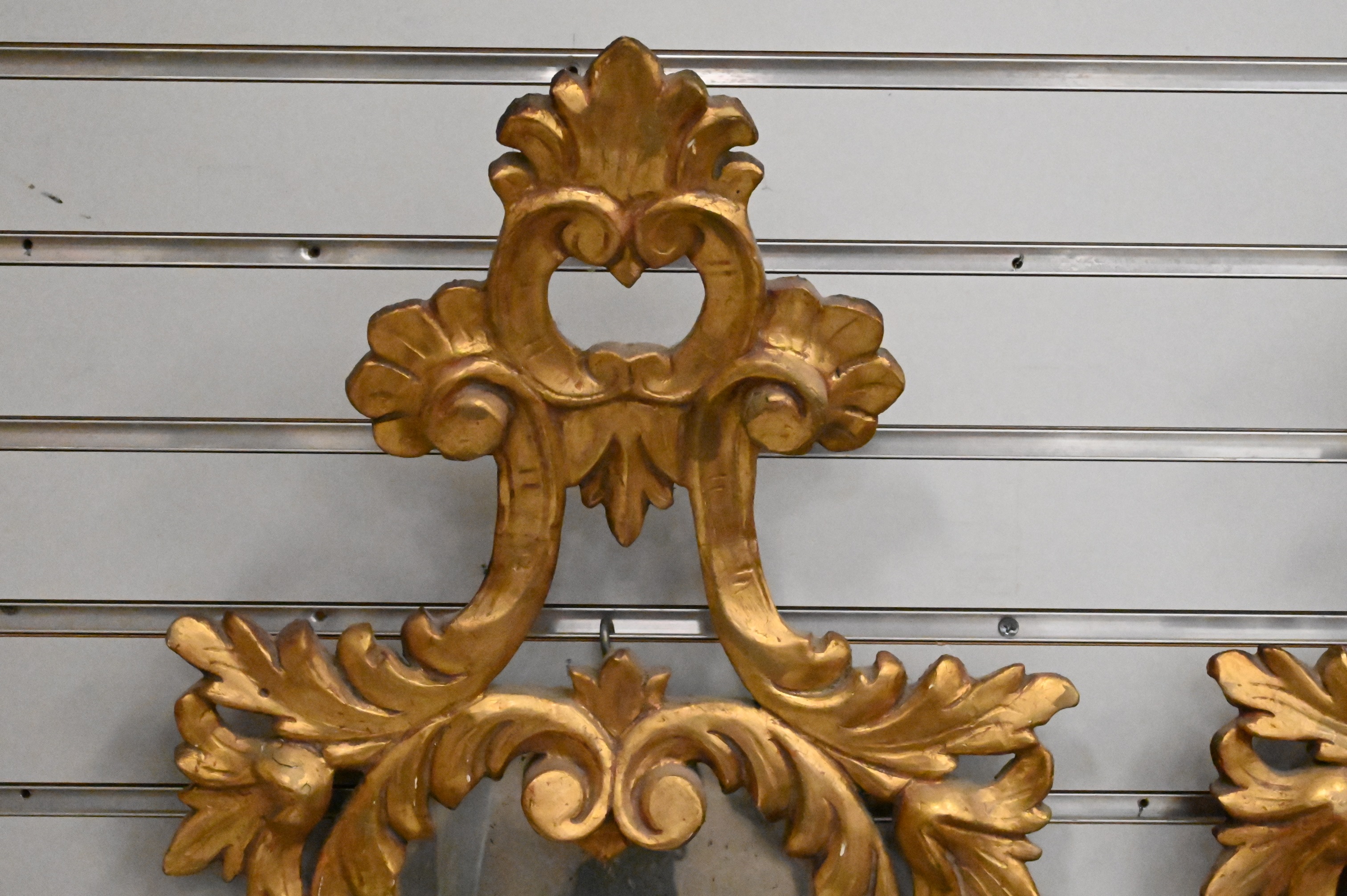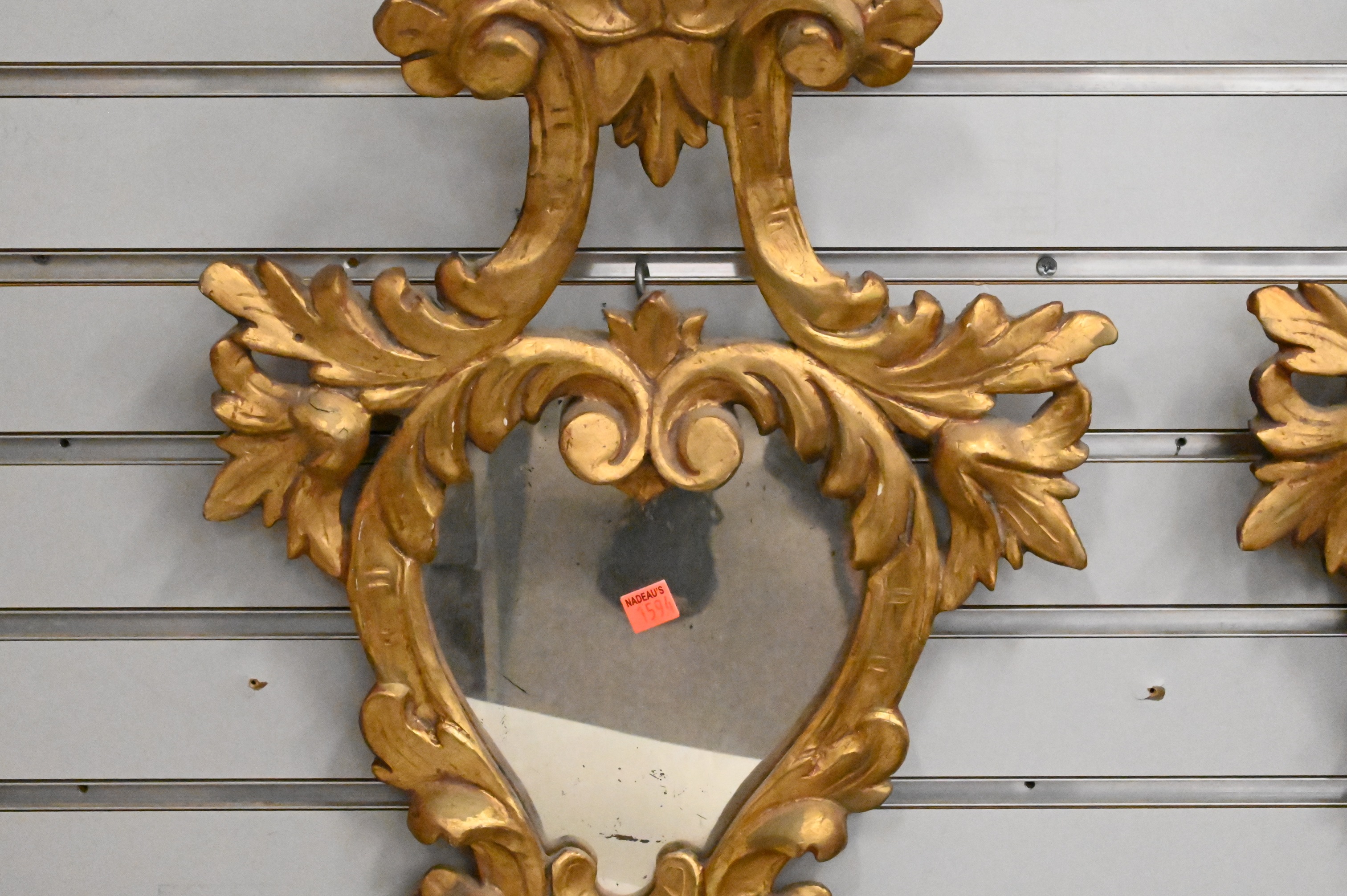 Pair of Carved and Gilt Mirrors, height 26 inches, width 15 inches.