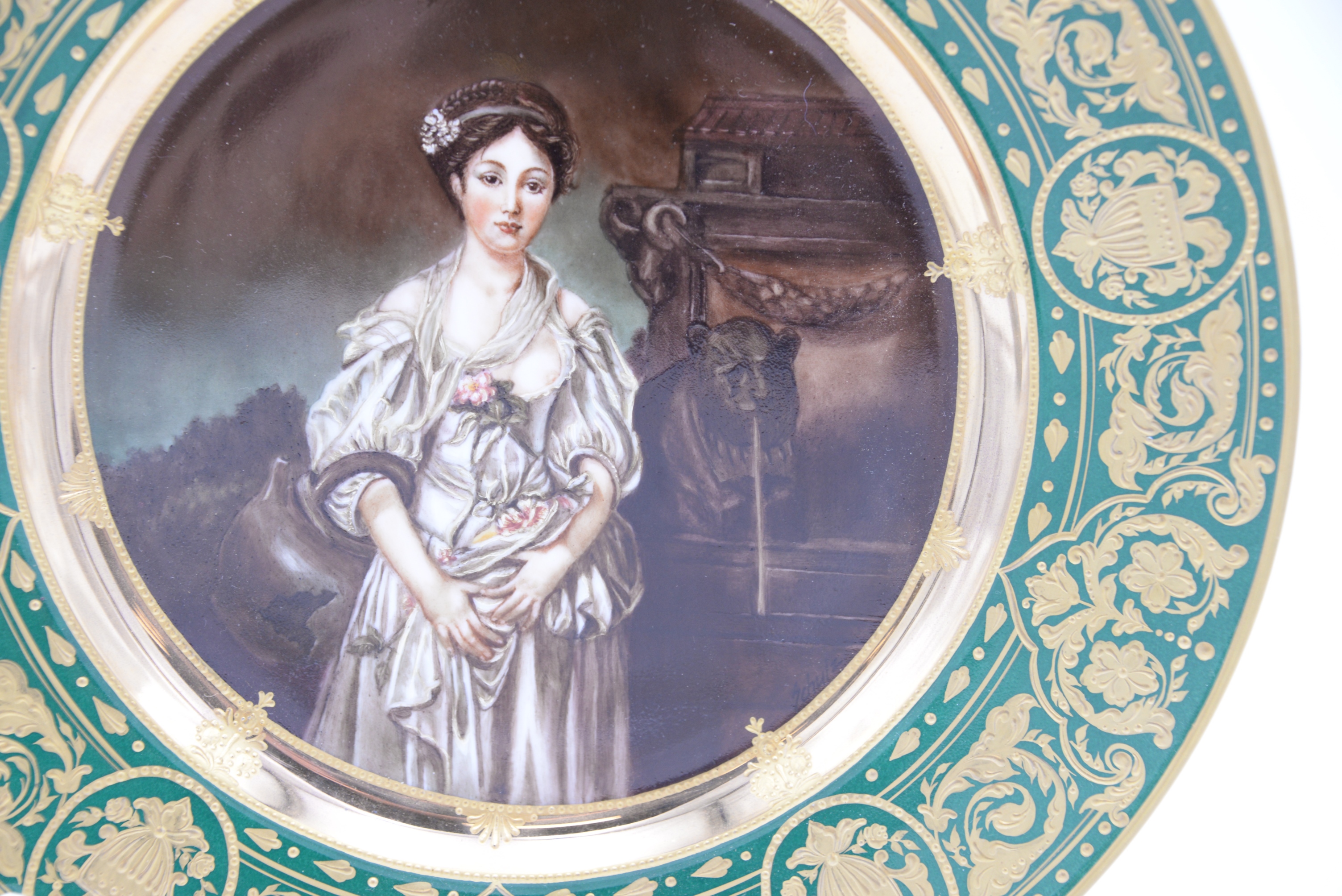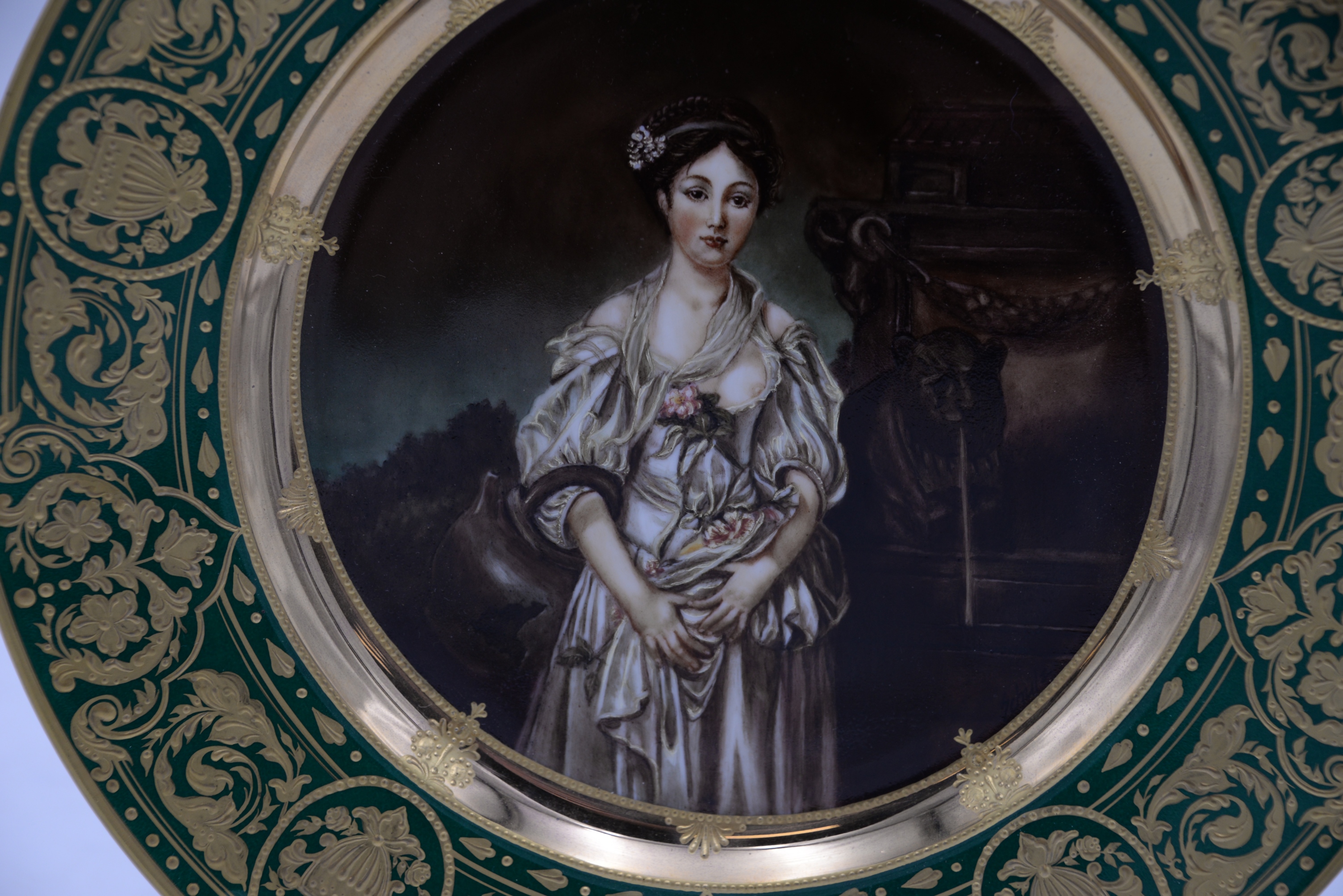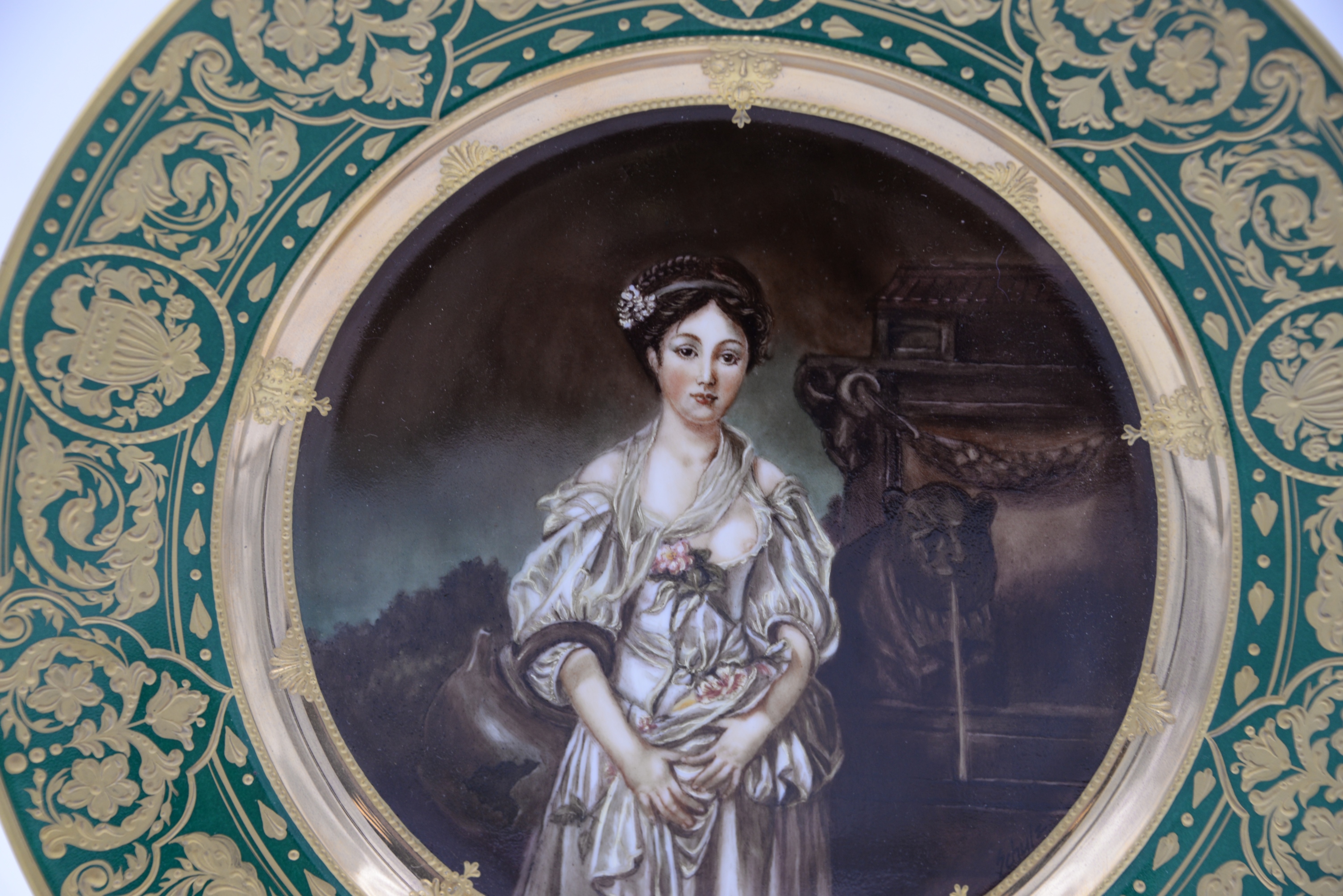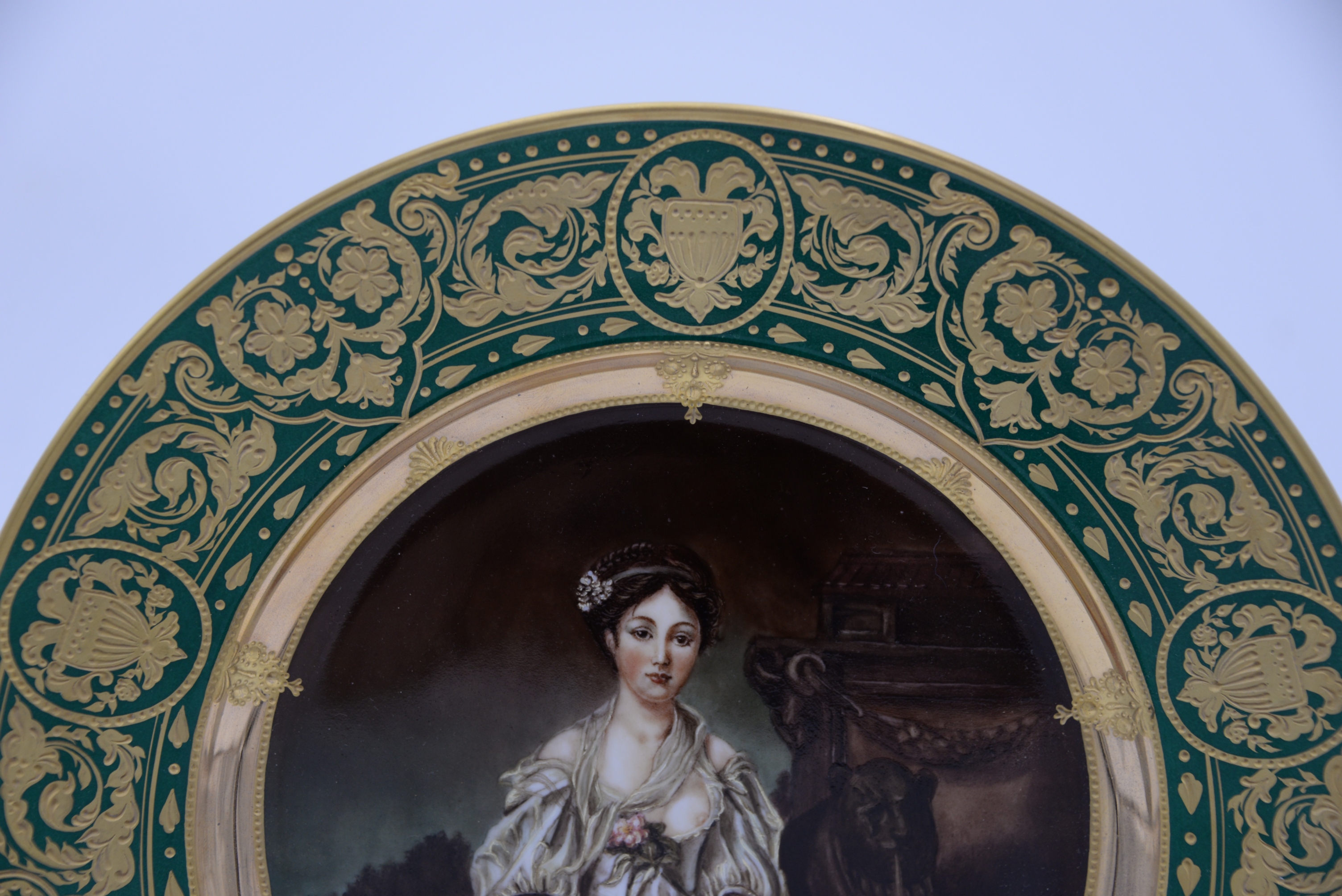 Royal Vienna Portrait Plate, having partially clad woman, high relief border, artist signed “Schultz” lower right, stamped with Royal Vienna beehive on reverse, diameter 10 1/2 inches.