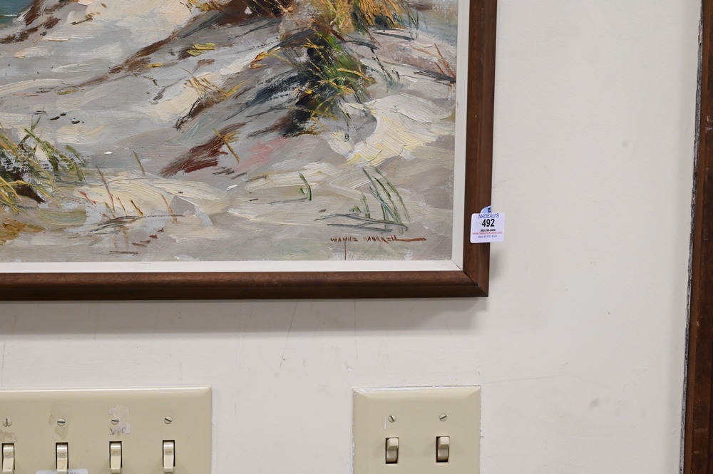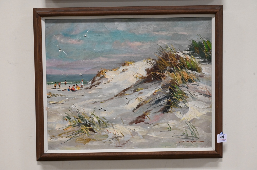 Wayne Beam Morrell (1923 – 2013), Beach, oil on canvas, signed lower right Wayne Morrell, 16″ x 20″.