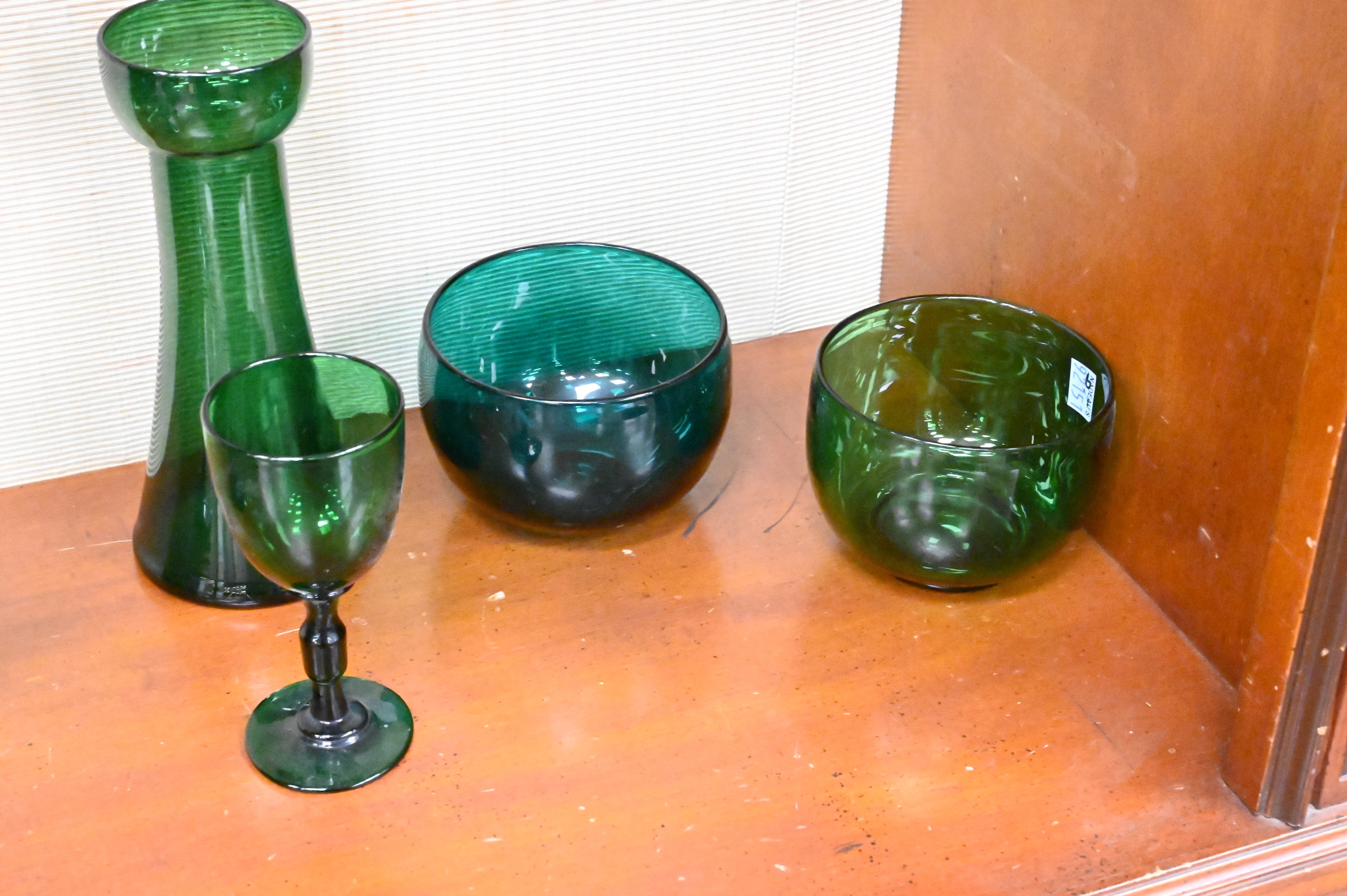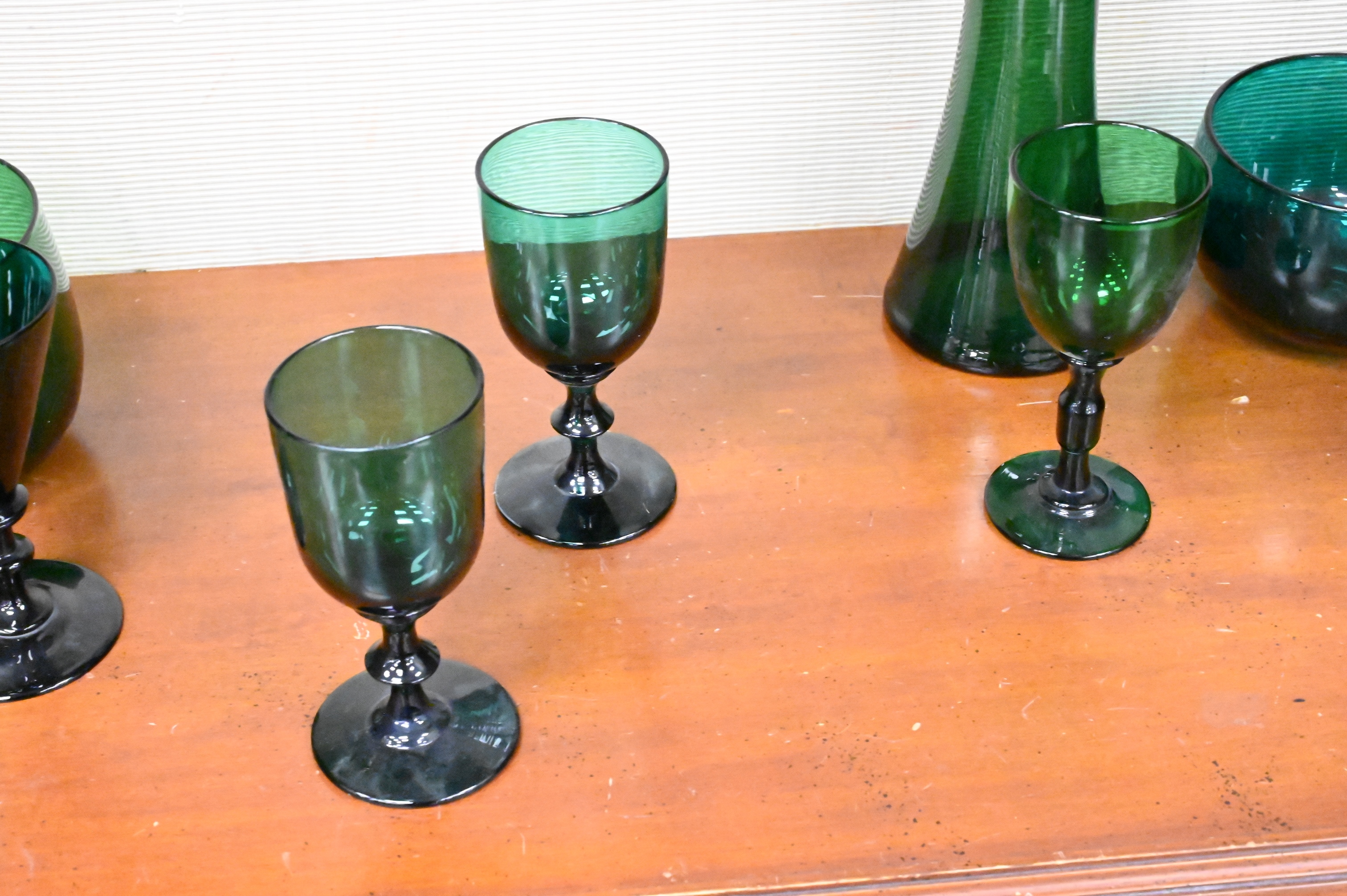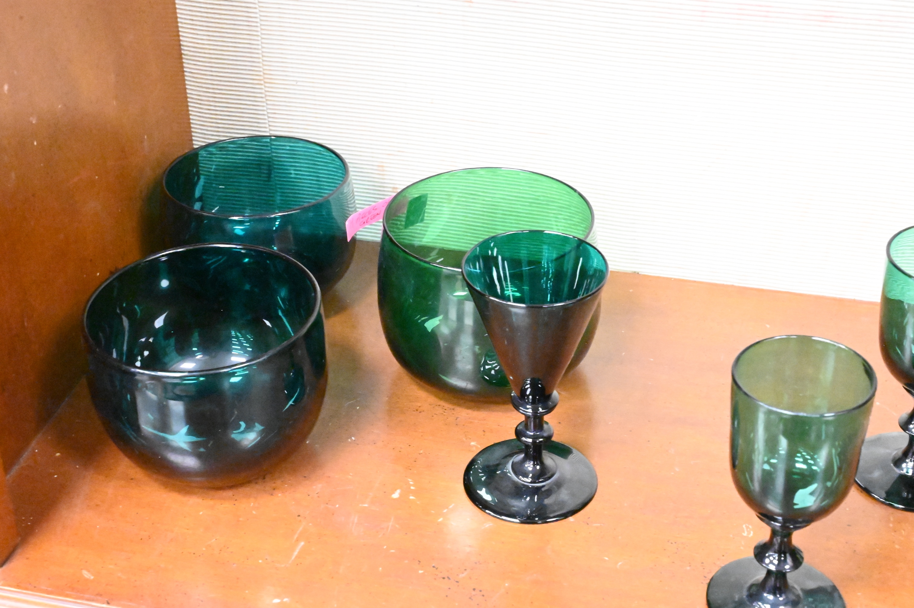 Lot 493: 14 Piece Collection of Early Emerald Green Glass
