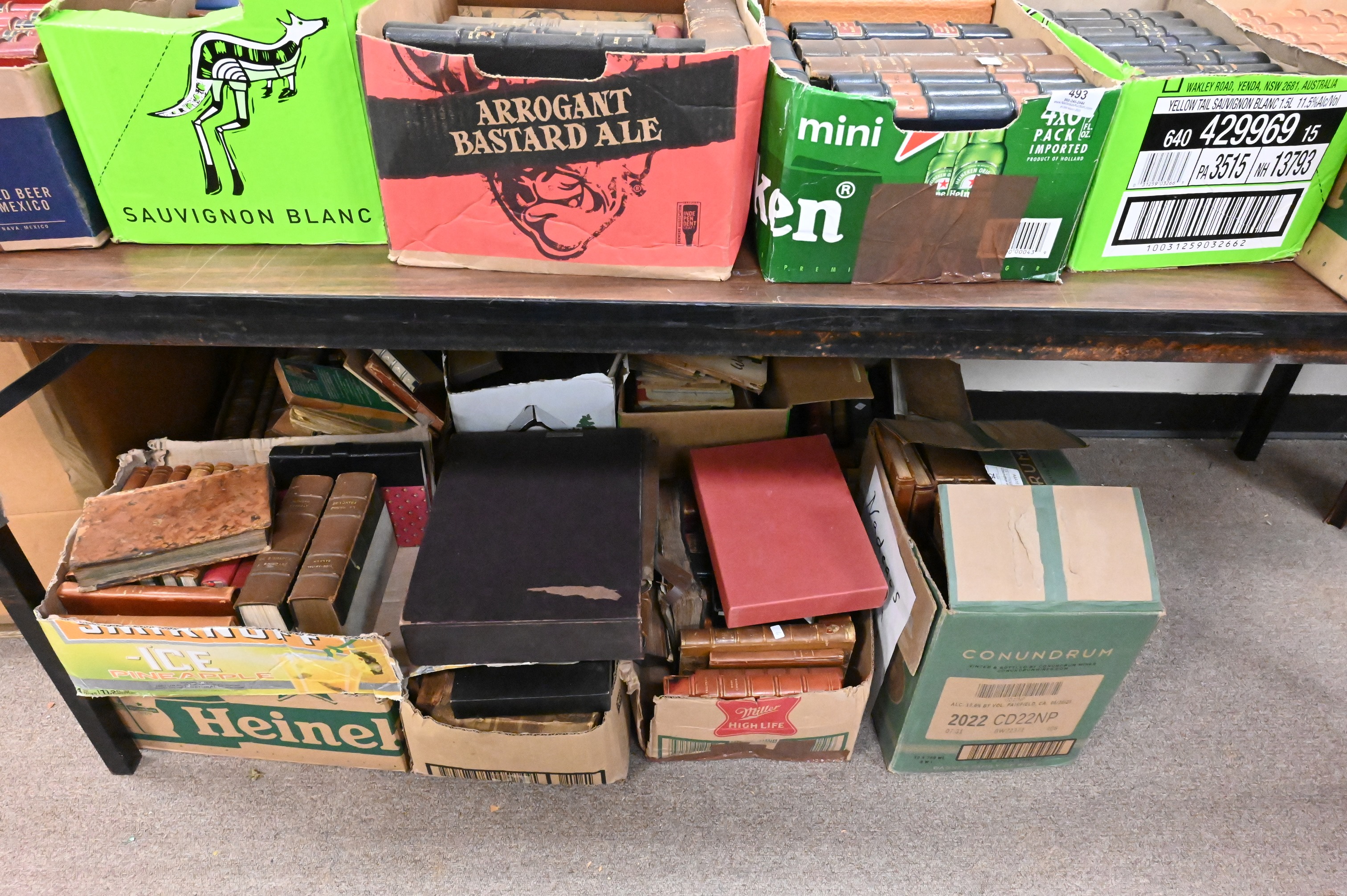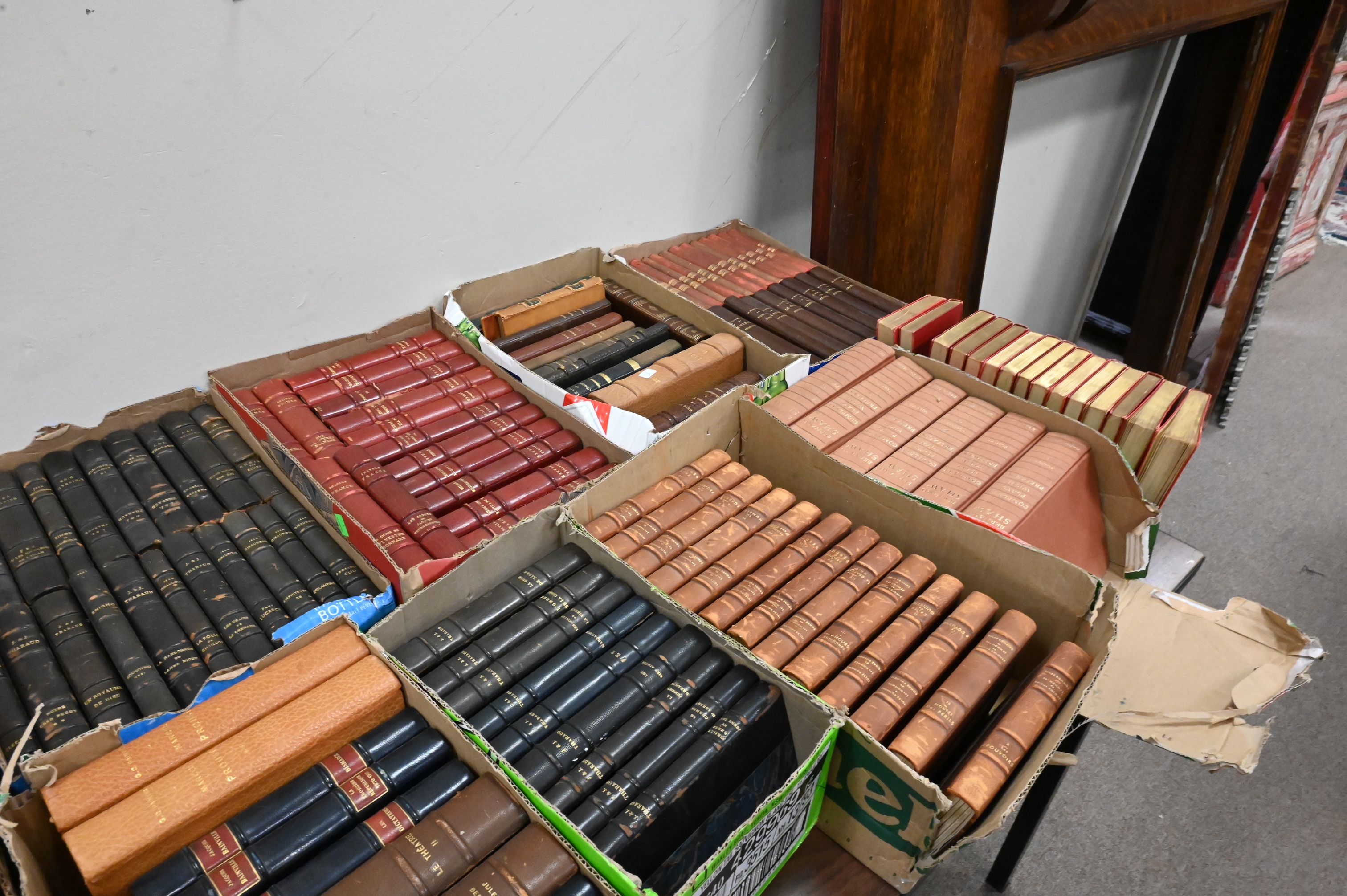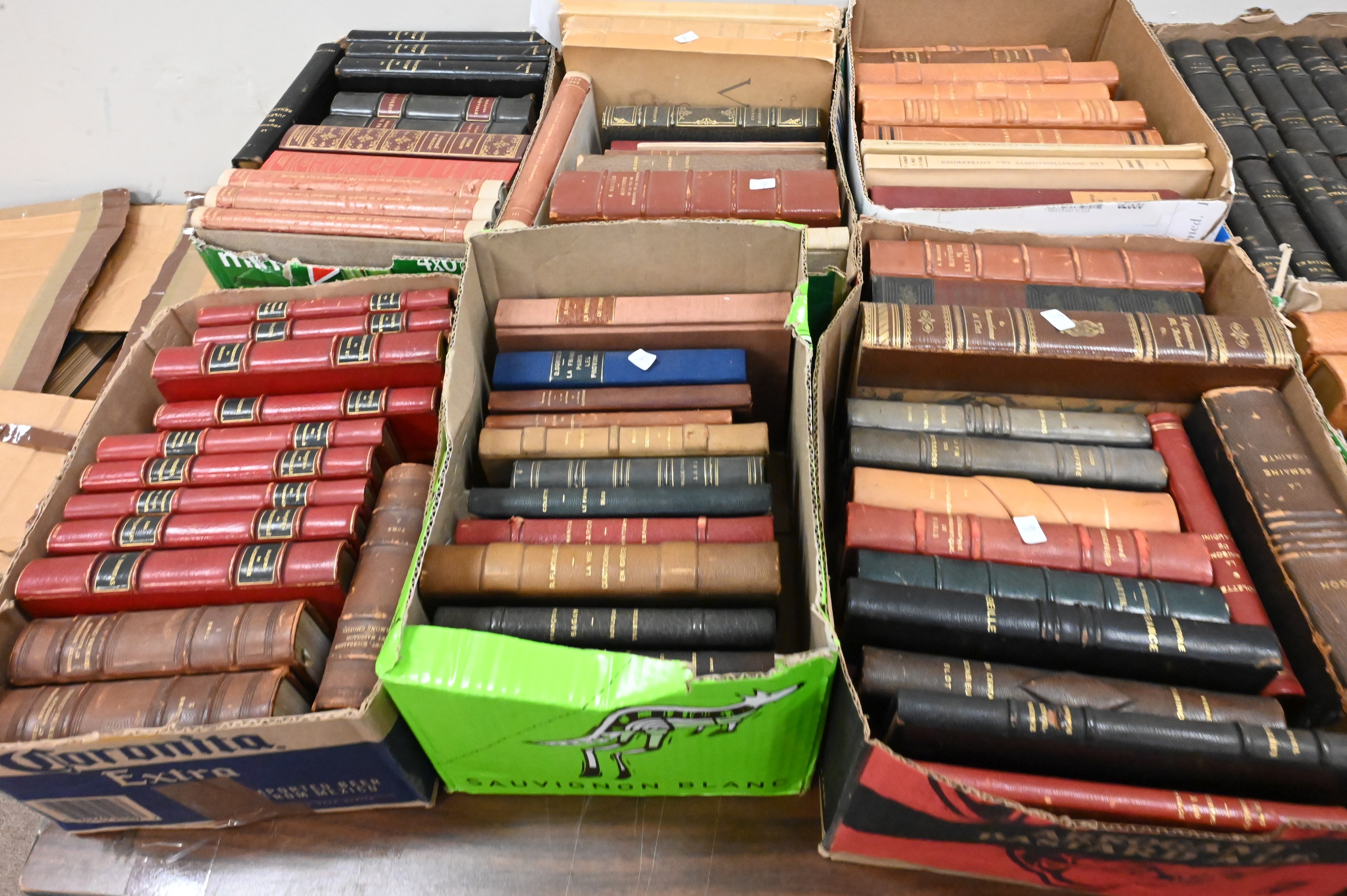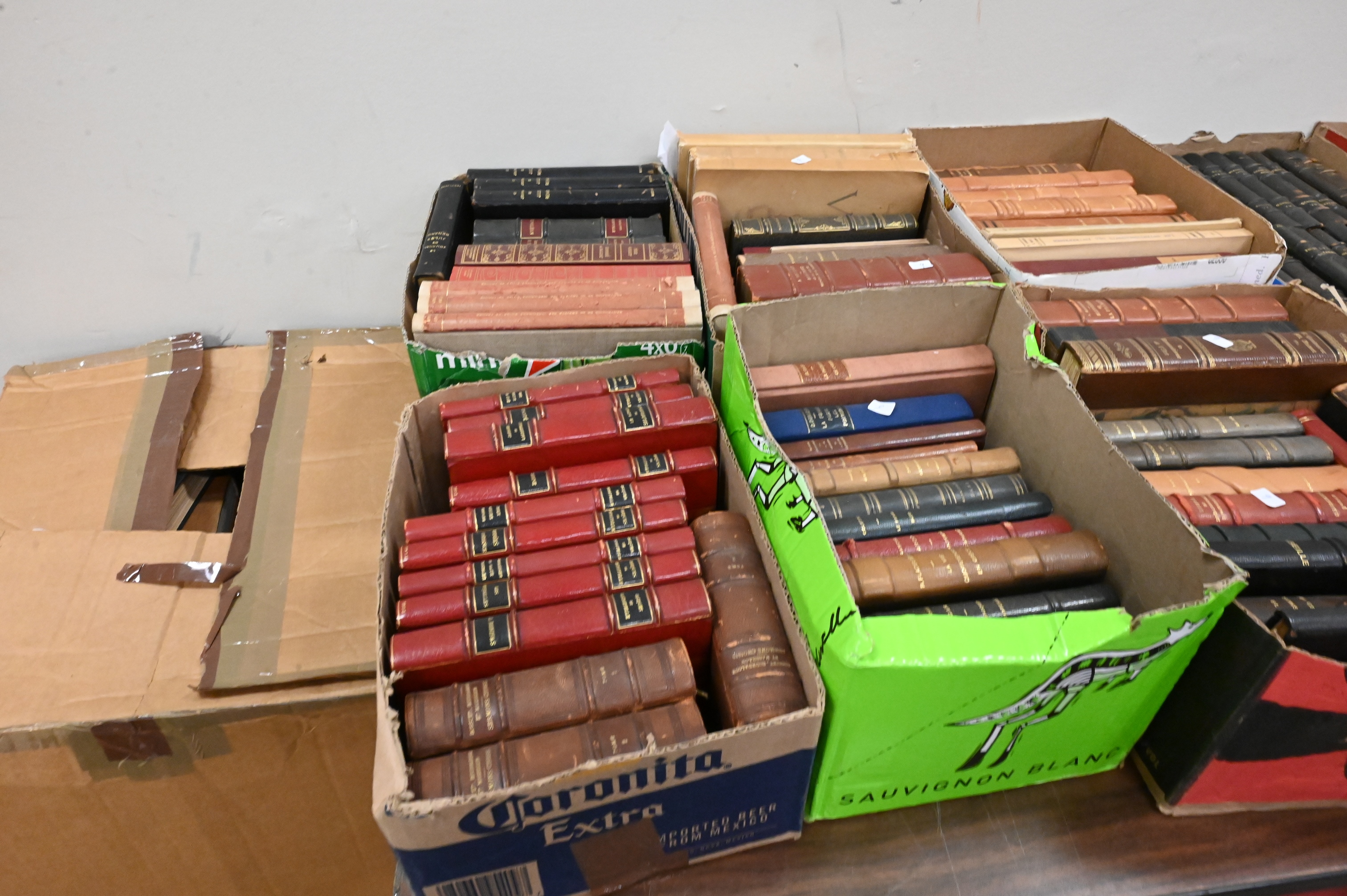 Lot 493: Approximately 25 Boxes of Mostly Leather Bound Books