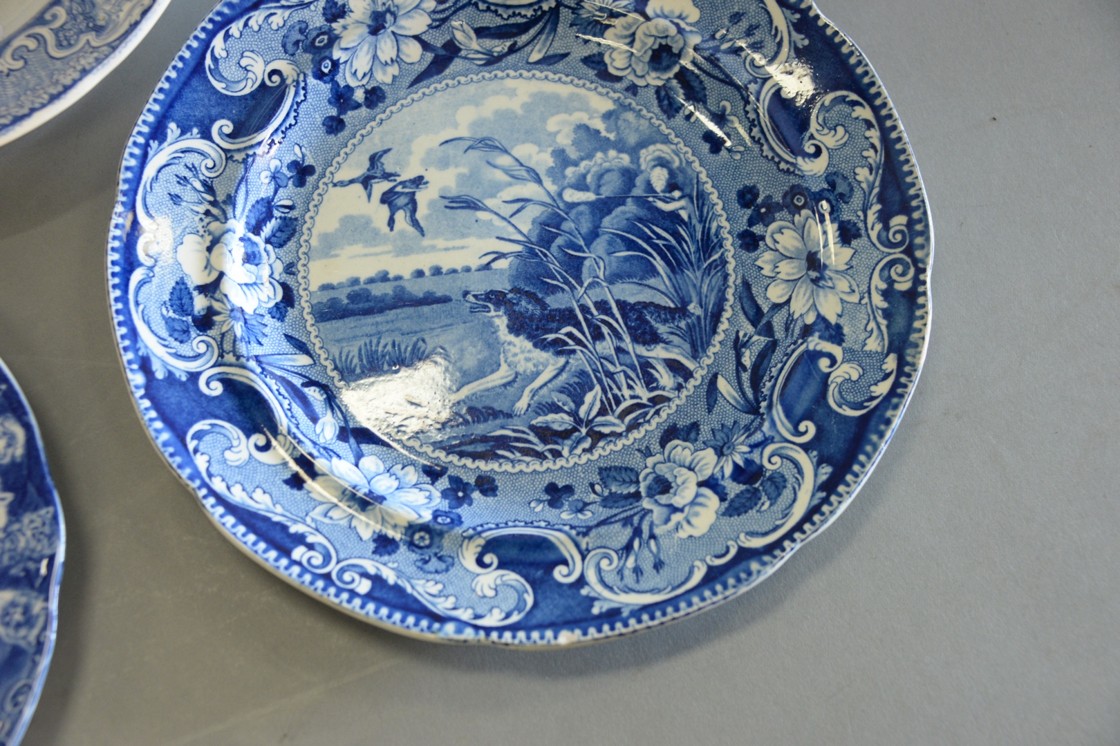Lot 493: Group of Four Transferware Plates to include three Staffordshire, pieces each marked on the underside, along with one brown plate wi…