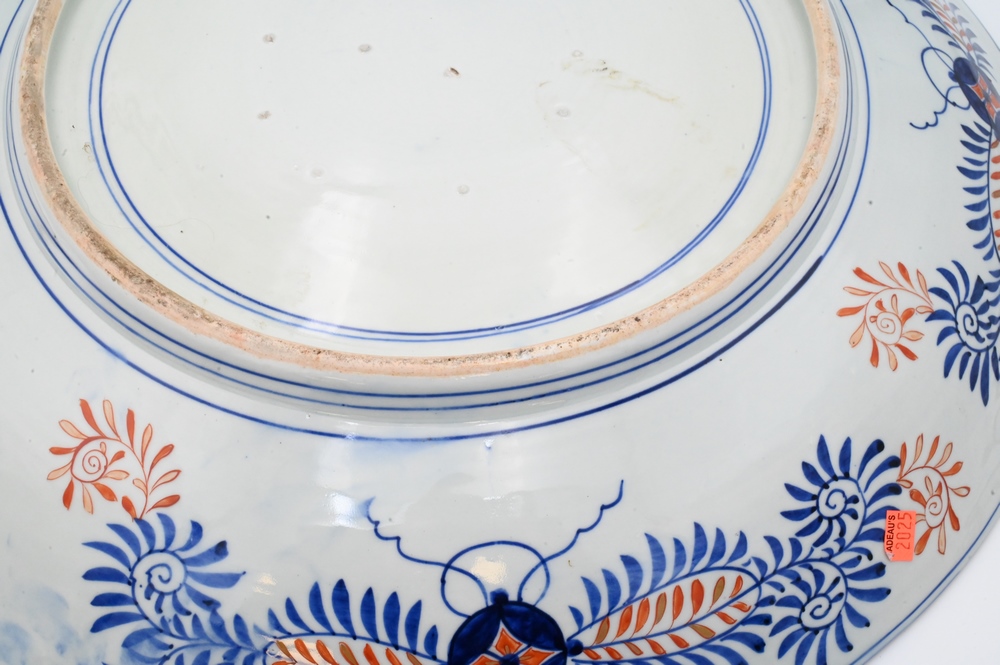 Lot 493: Large Chinese Porcelain Charger, having painted figures in a courtyard with scrolling pine trees; diameter 24 1/2 inches. Provenance: Waterfront Estate, Stamford, Connecticut.
