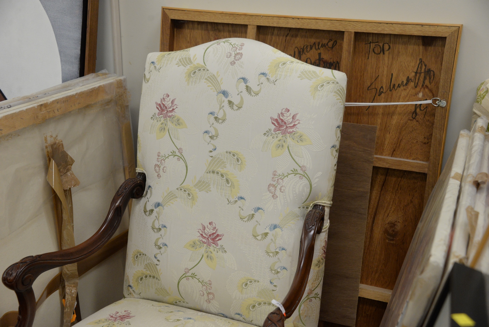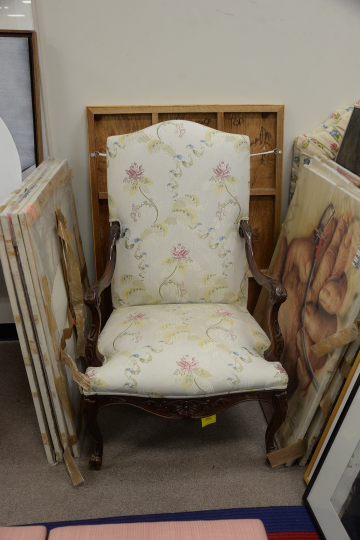 Two Continental Style Occasional Chairs, height 46 1/2 and 49 inches.