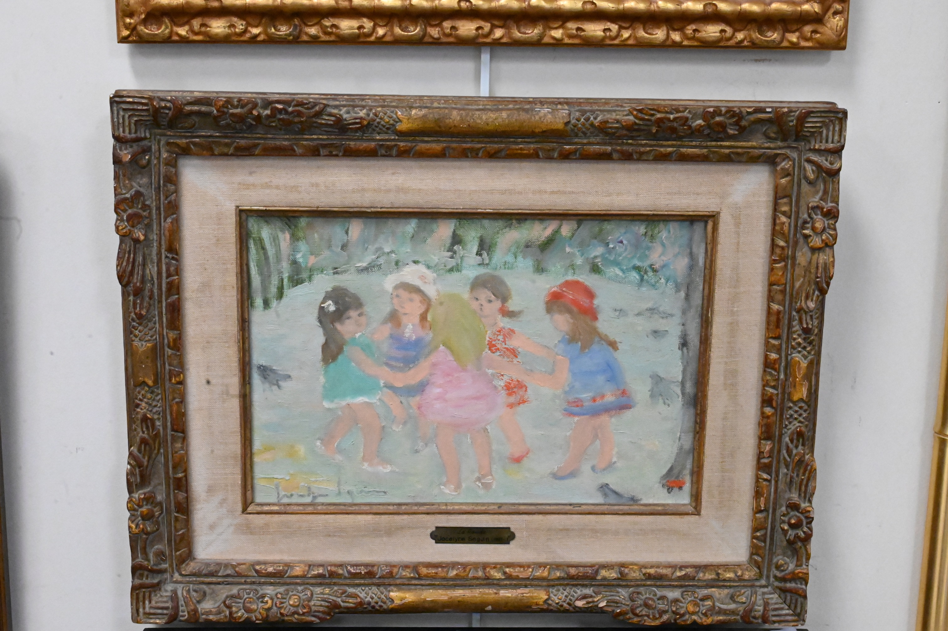 Jocelyne Seguin (France 1921-1999), “La Ronde”, oil on canvas, signed lower left, having Wally Gallery lable on verso, 9″ x 13″; along with a watercolor on paper, Duomo in Milan, signed illegibly lower right Sichert, 52, 10″ x 13 1/2″.