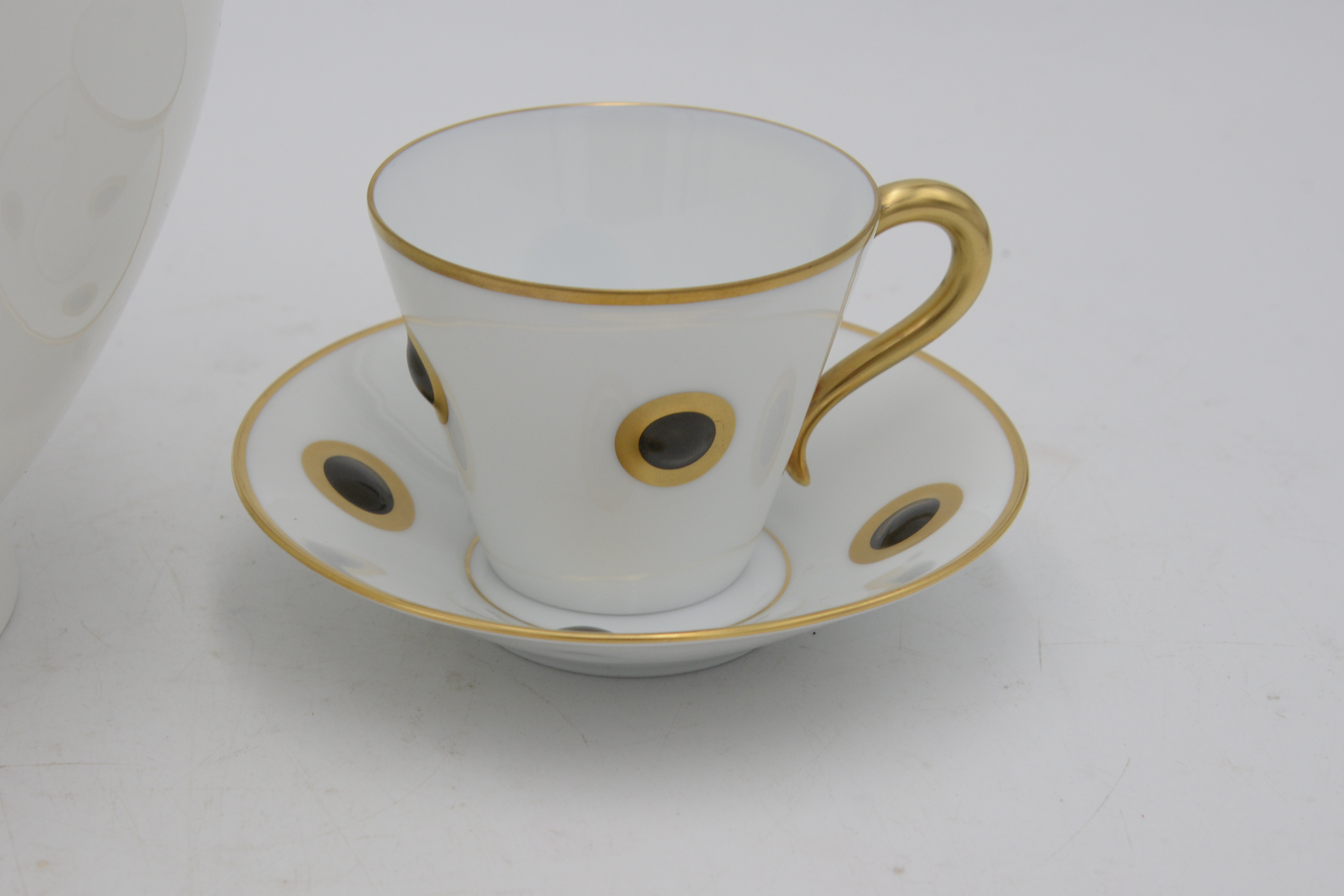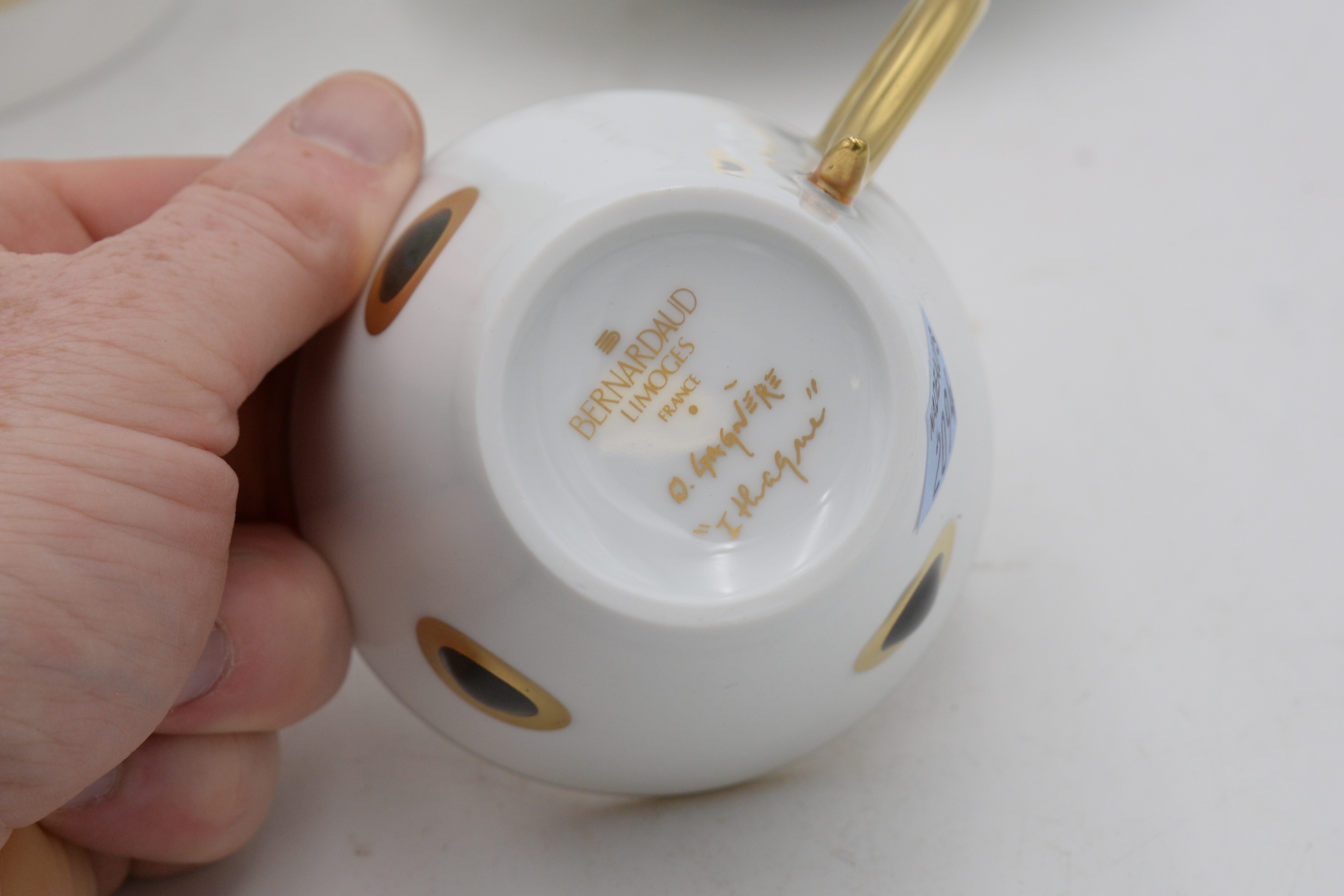 25 Piece Bernardaud Limoges France “Ithaque” Cups and Saucer Set to Include, 12 saucers, 12 teacups, large vase