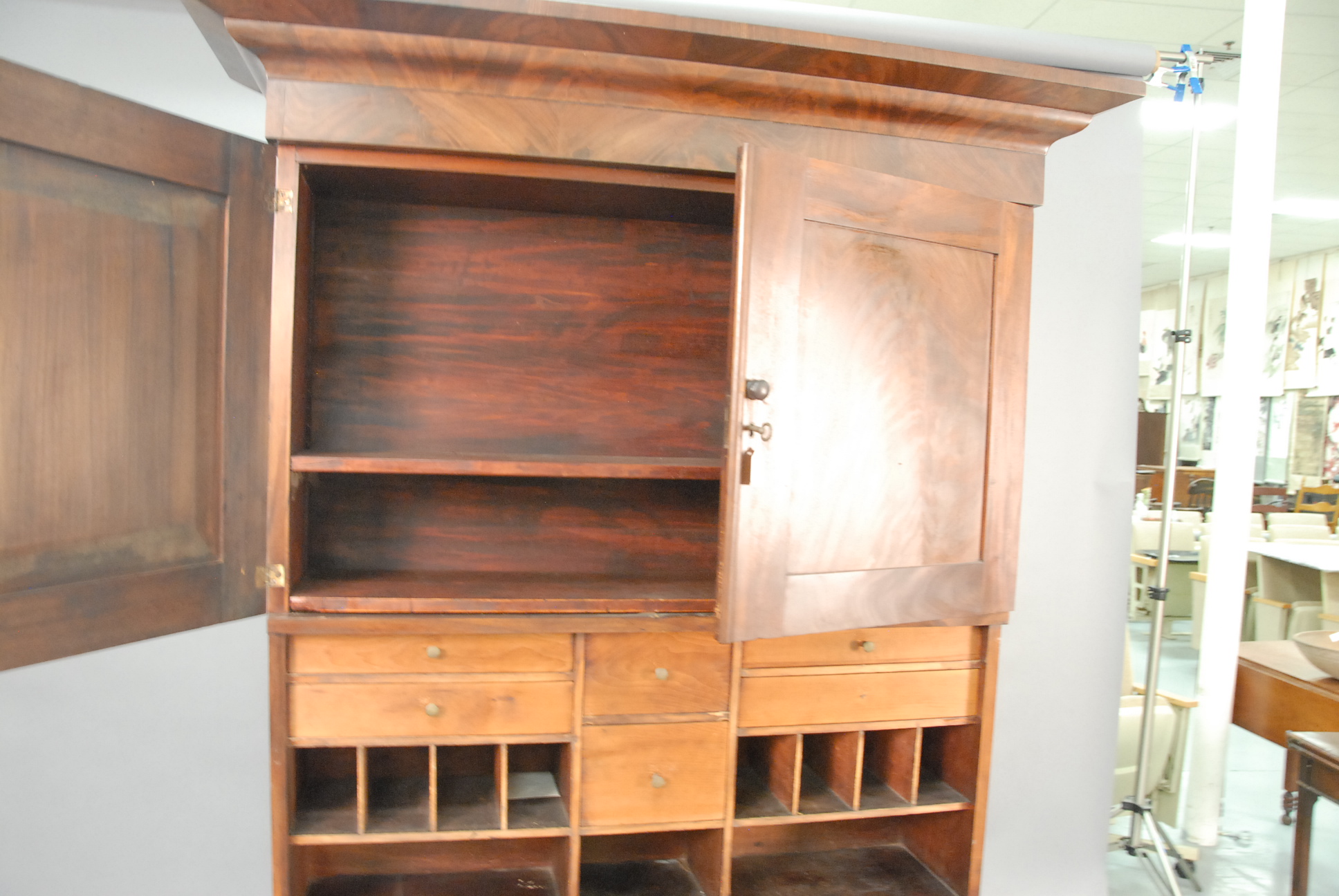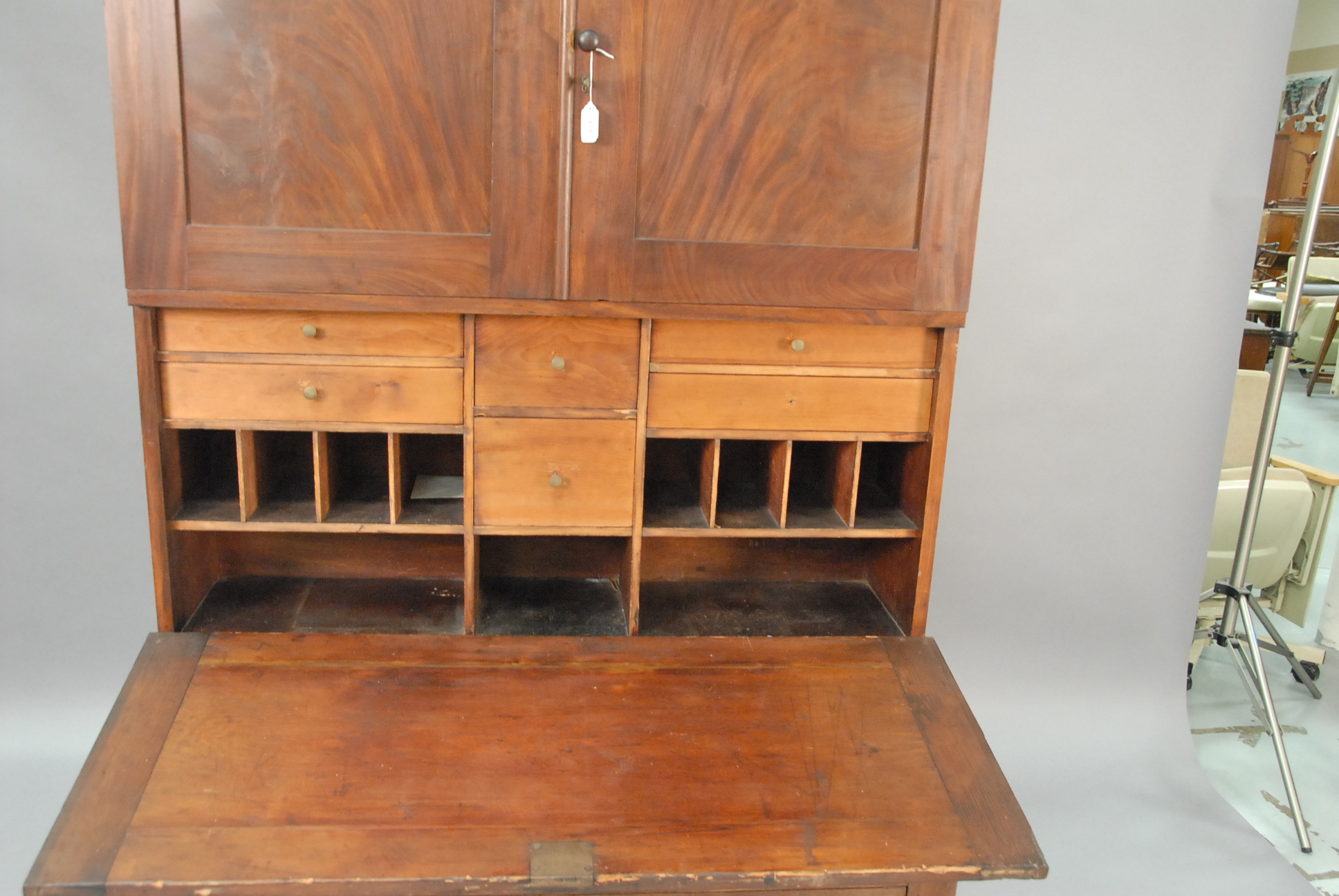 Empire mahogany secretary desk in two parts.