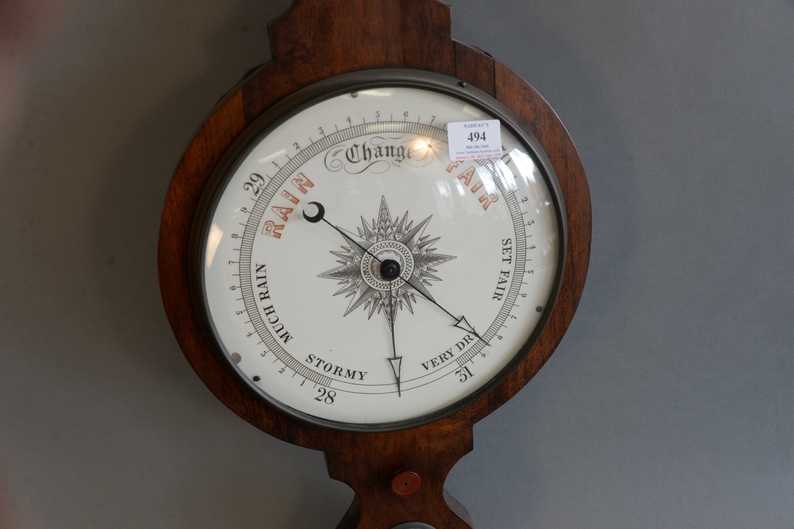 Lot 494: Mahogany Barometer with porcelain dial