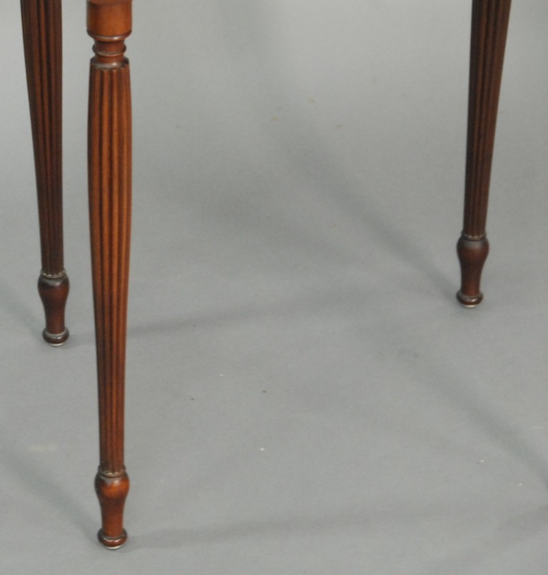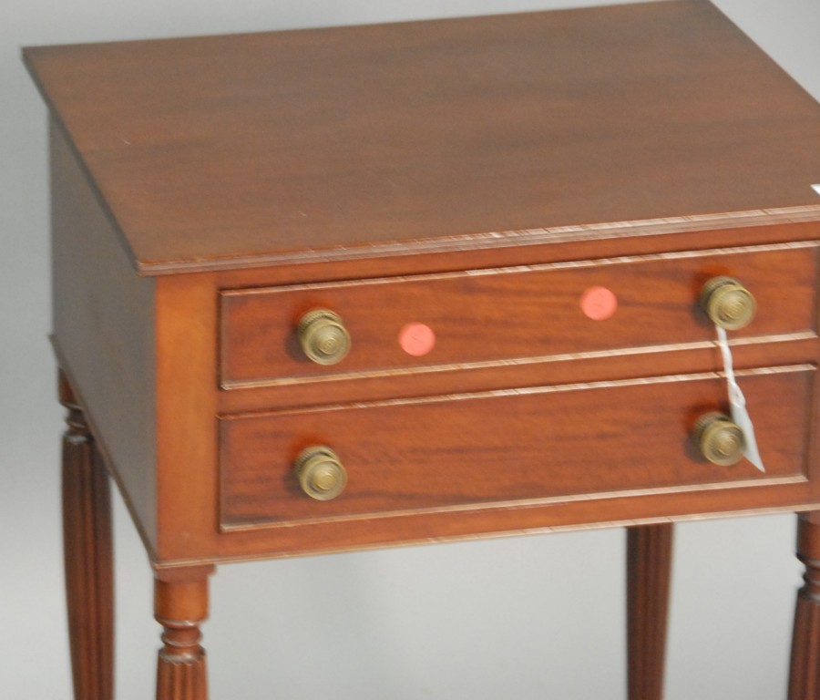 Margolis mahogany Sheraton style two drawer stand on round fluted legs, signed Margolis with hand written label 1922. height 28in. width 18in.