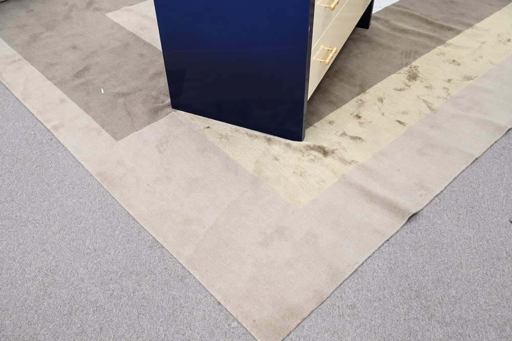 Lot 494: Stark Custom Silk Blend Room Size Carpet, having brown ground, 9′ 1″ x 17′.