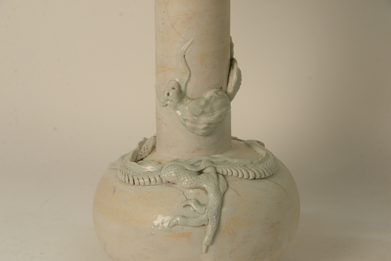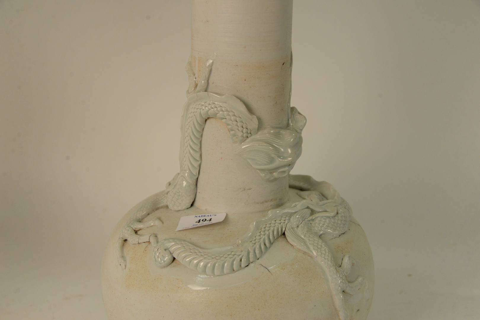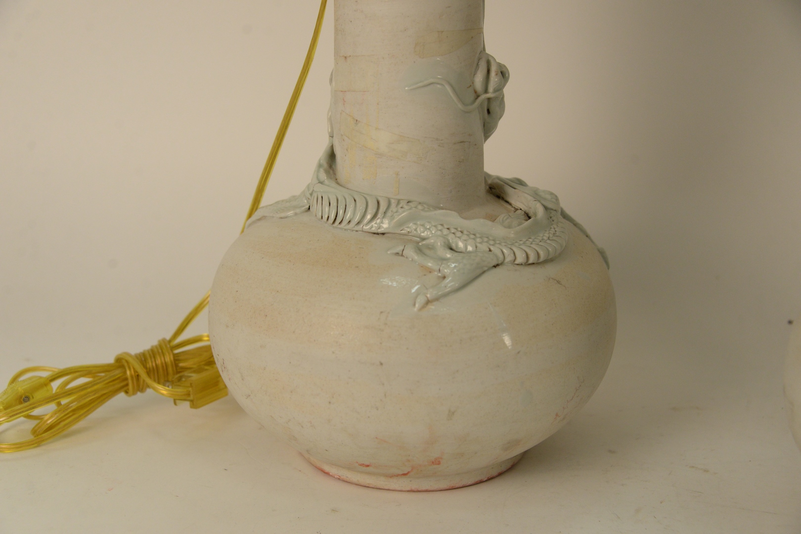 Lot 494: Three Chinese Table Lamps, to include pair of Chinese dragon vases, having moulded, white glazed dragons with three claws along wit…