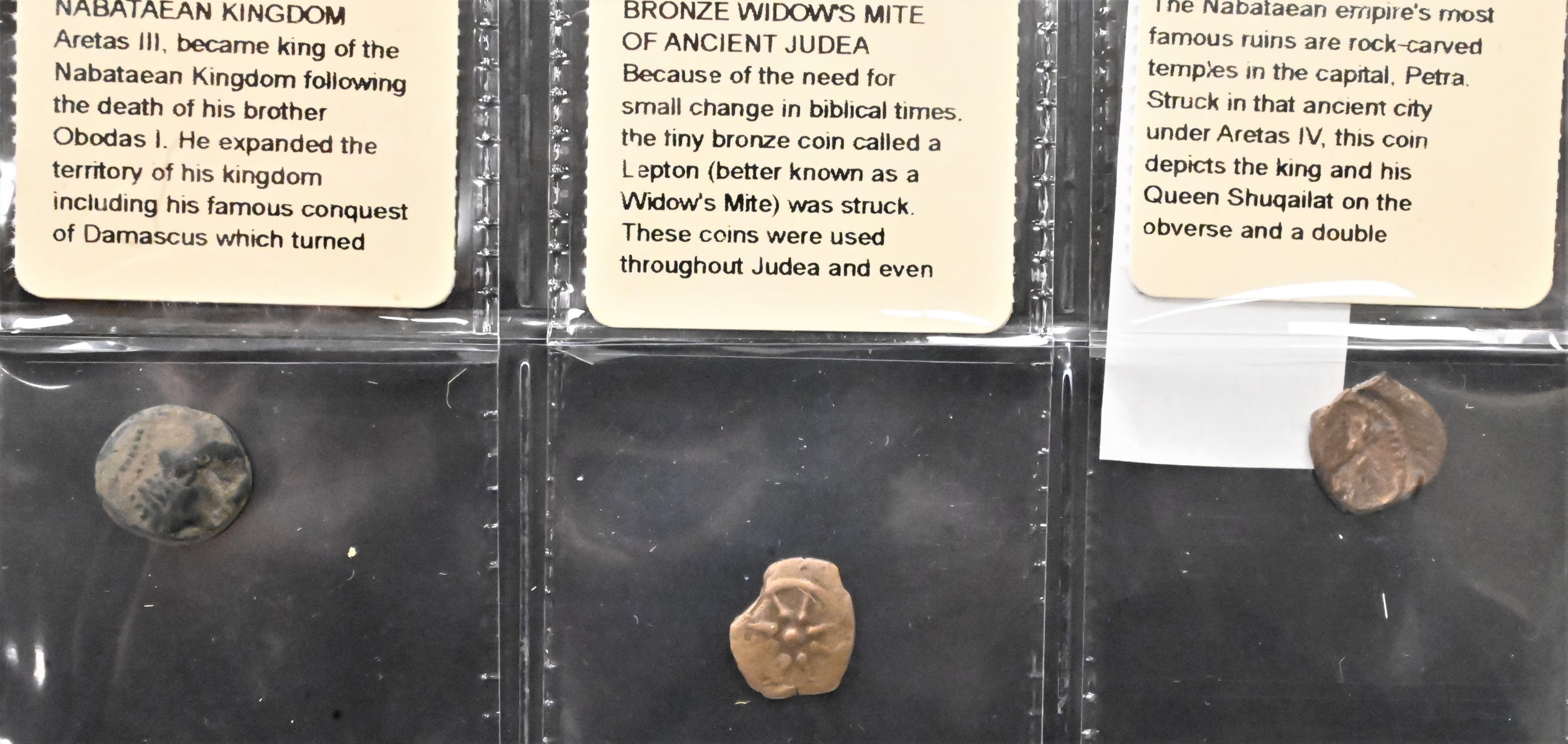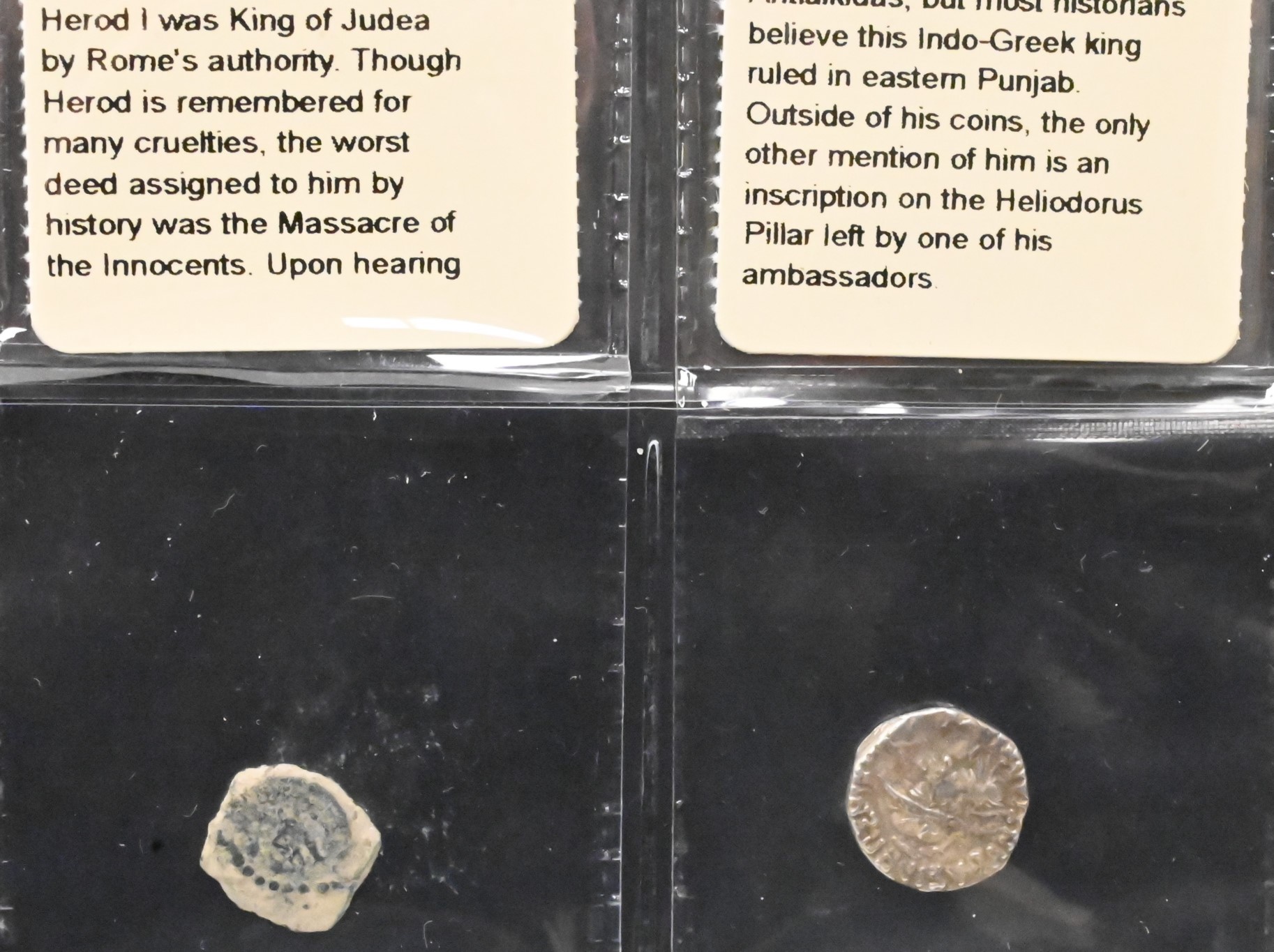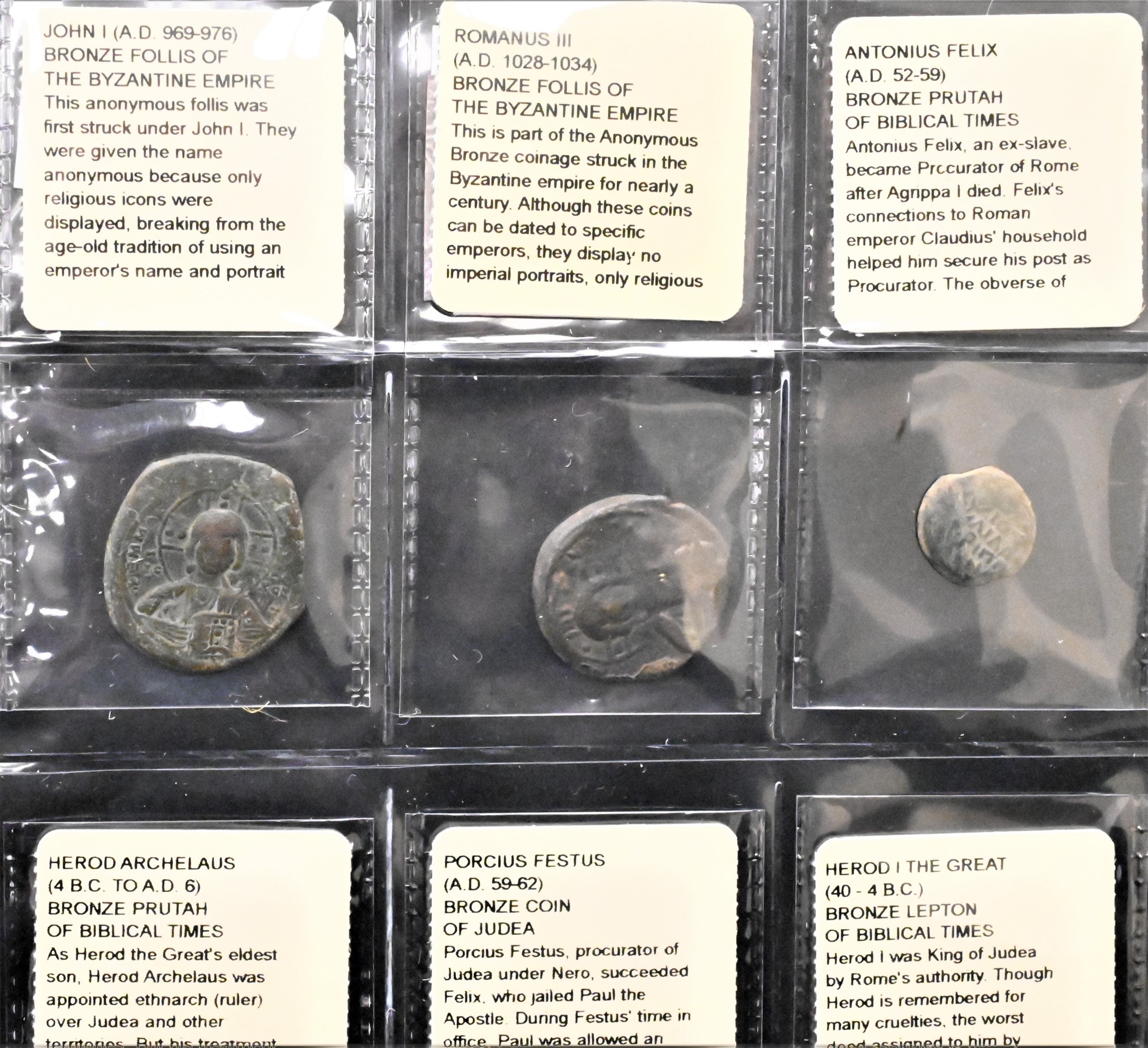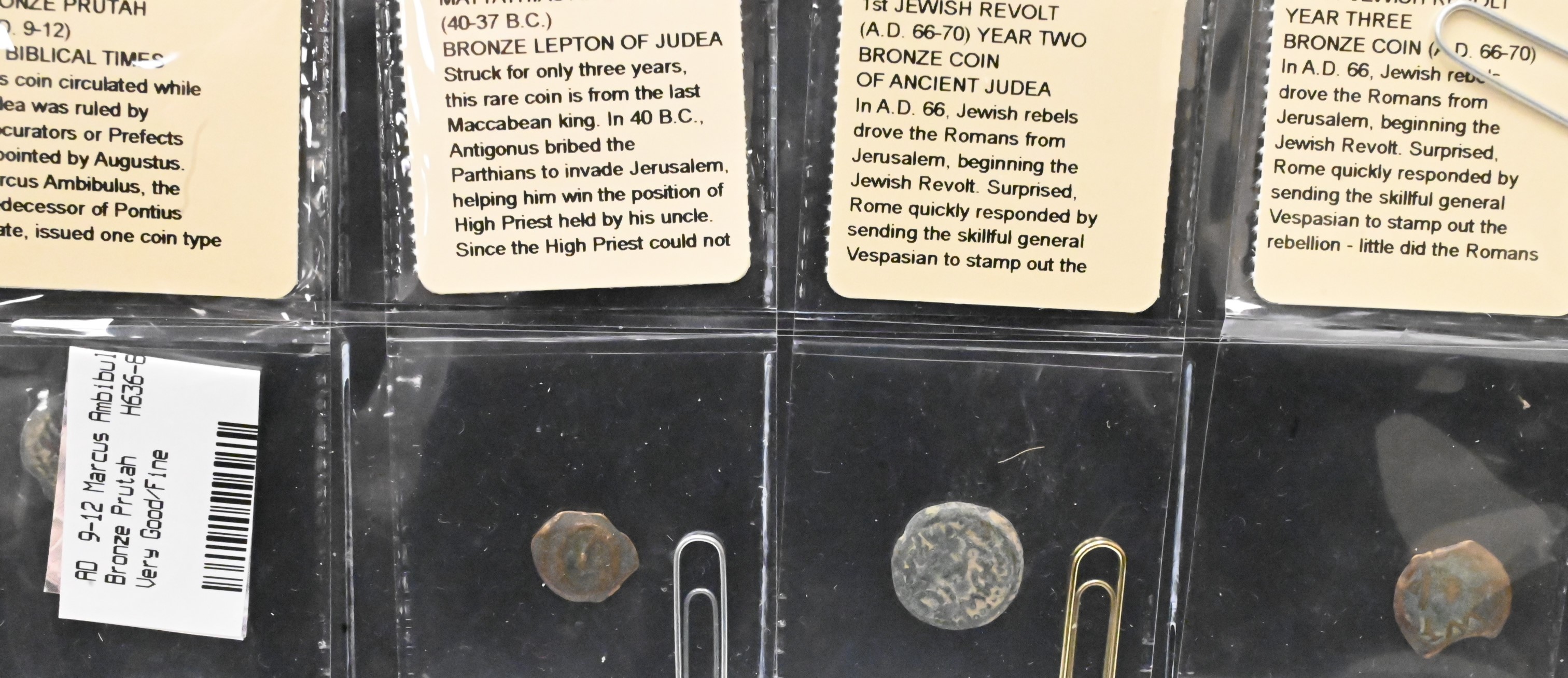 Approximately 70 Ancient Coins and Coins of the Bible, to include some silver, bronze along with copper.
