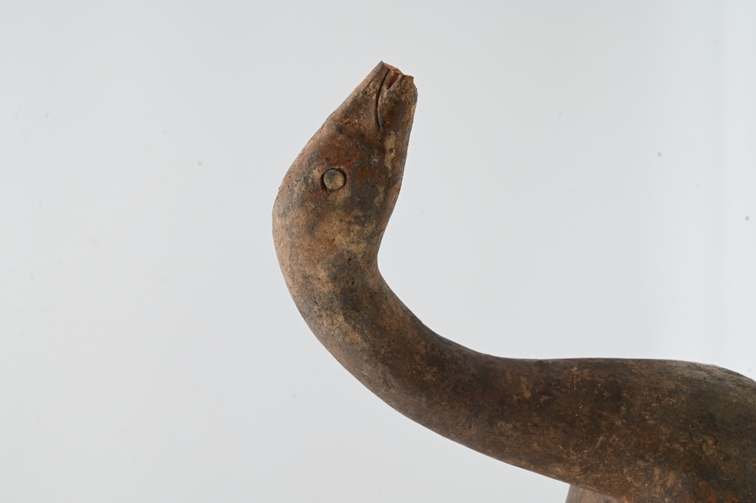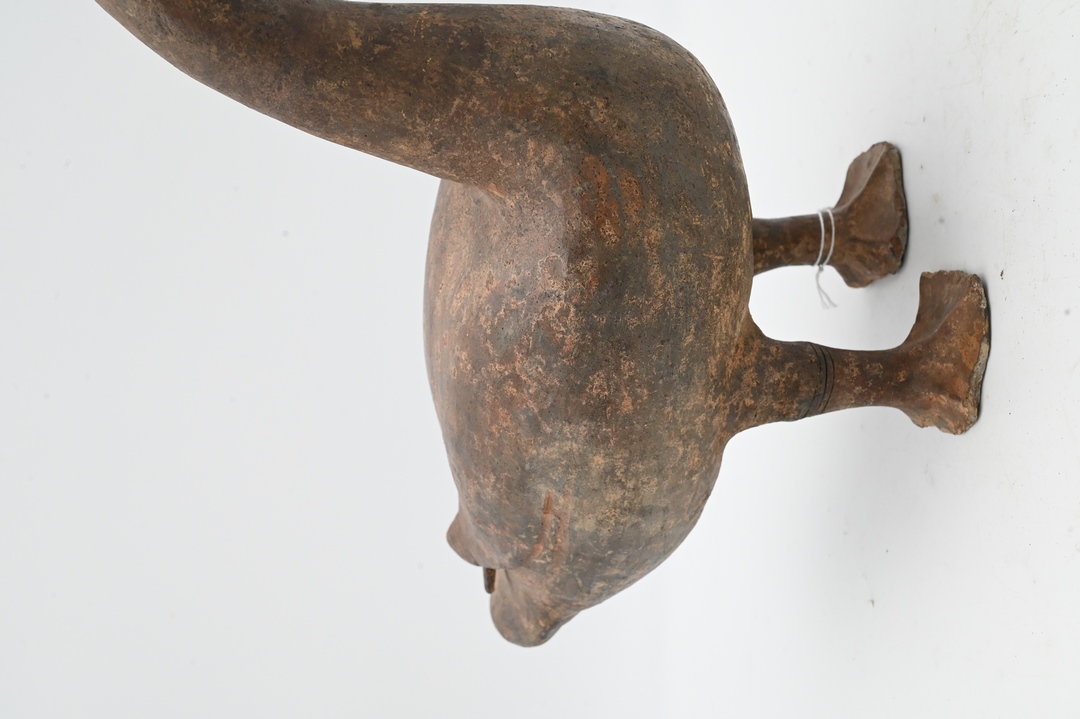 Chinese Pottery Figure, standing duck, missing beak, height 13 inches. Provenance: Estate of Peter Tillou, Litchfield, Connecticut.