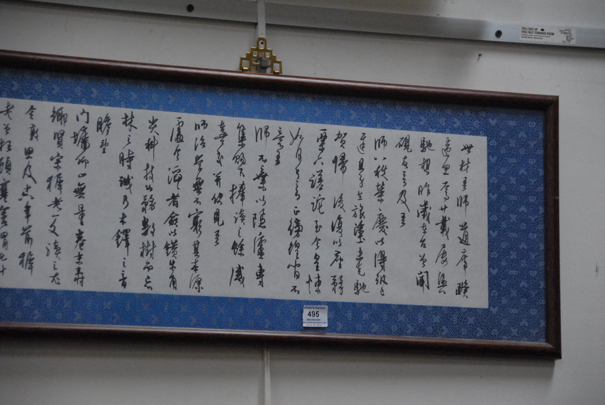 Lot 495: Framed Calligraphy on paper, horizontal format. One seal mark, China, 20th century. 12 3/4 x 62