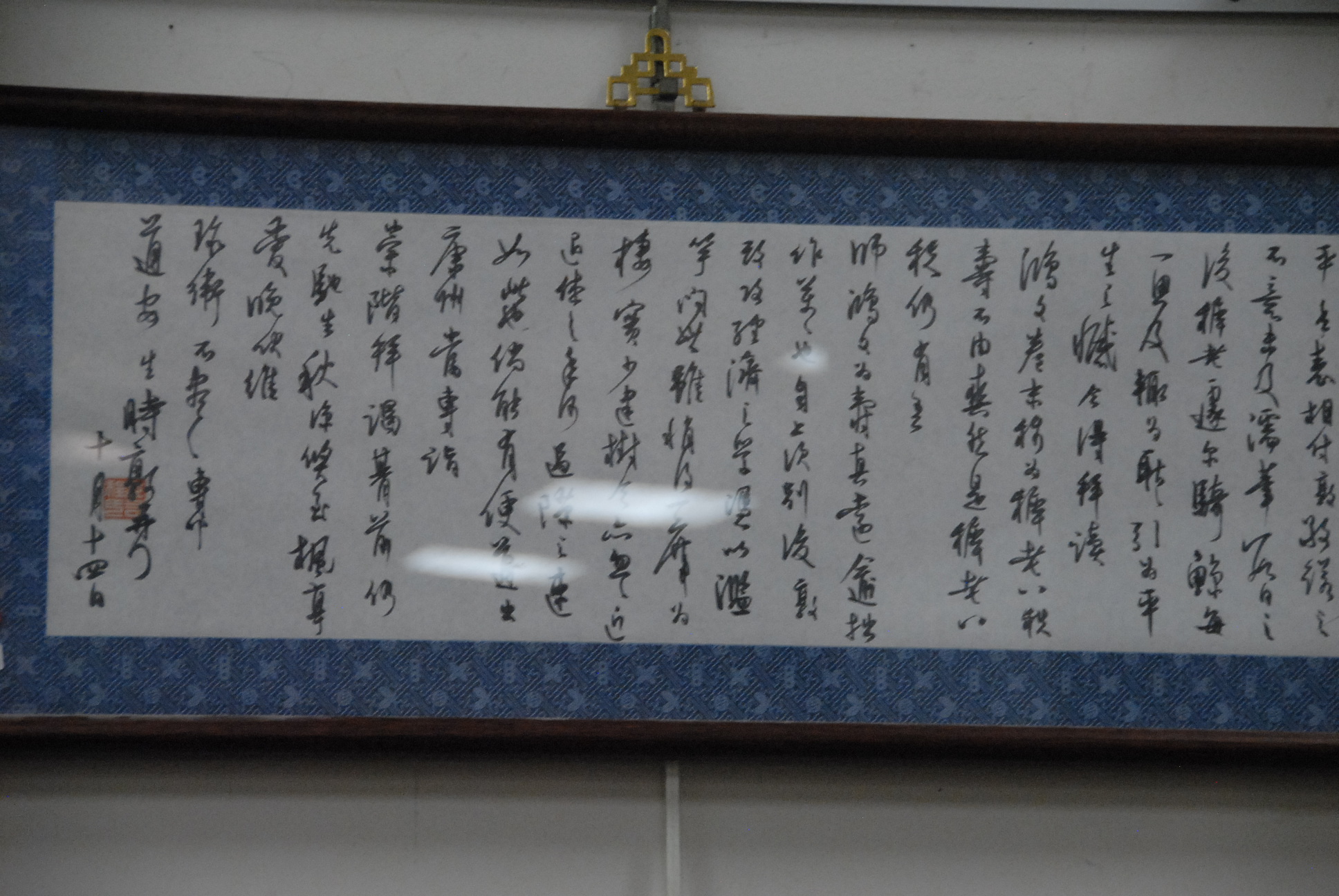 Framed Calligraphy on paper, horizontal format. One seal mark, China, 20th century. 12 3/4 x 62