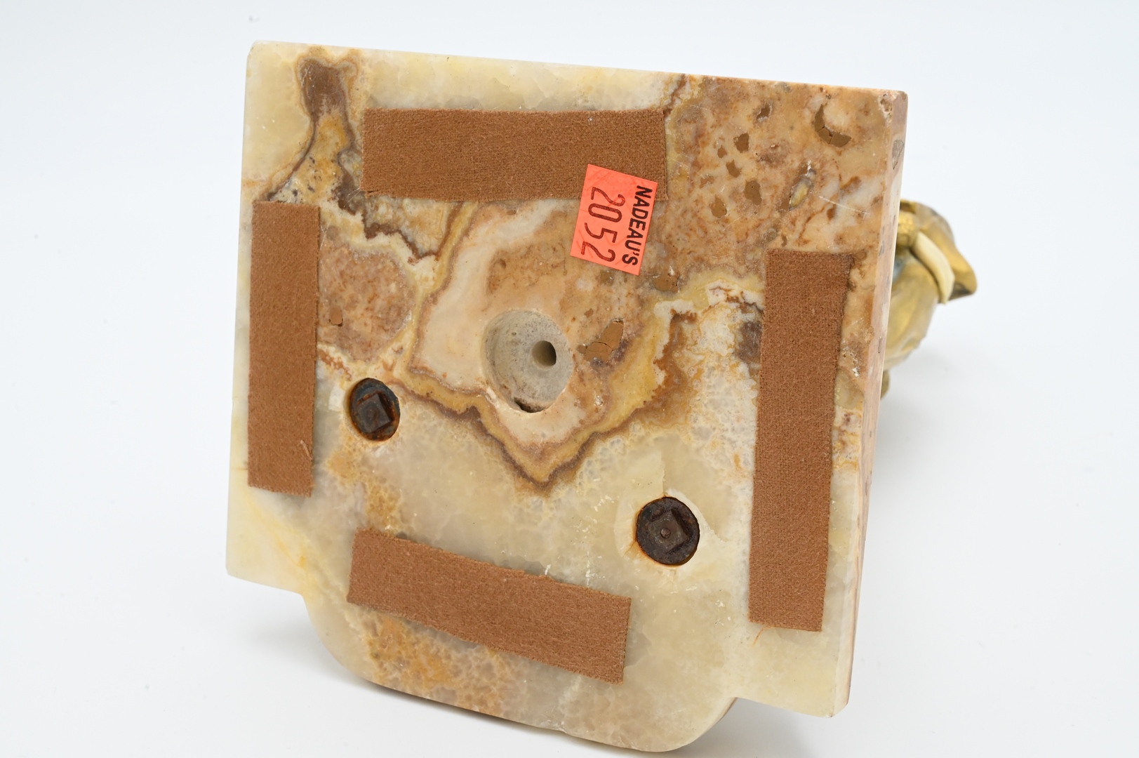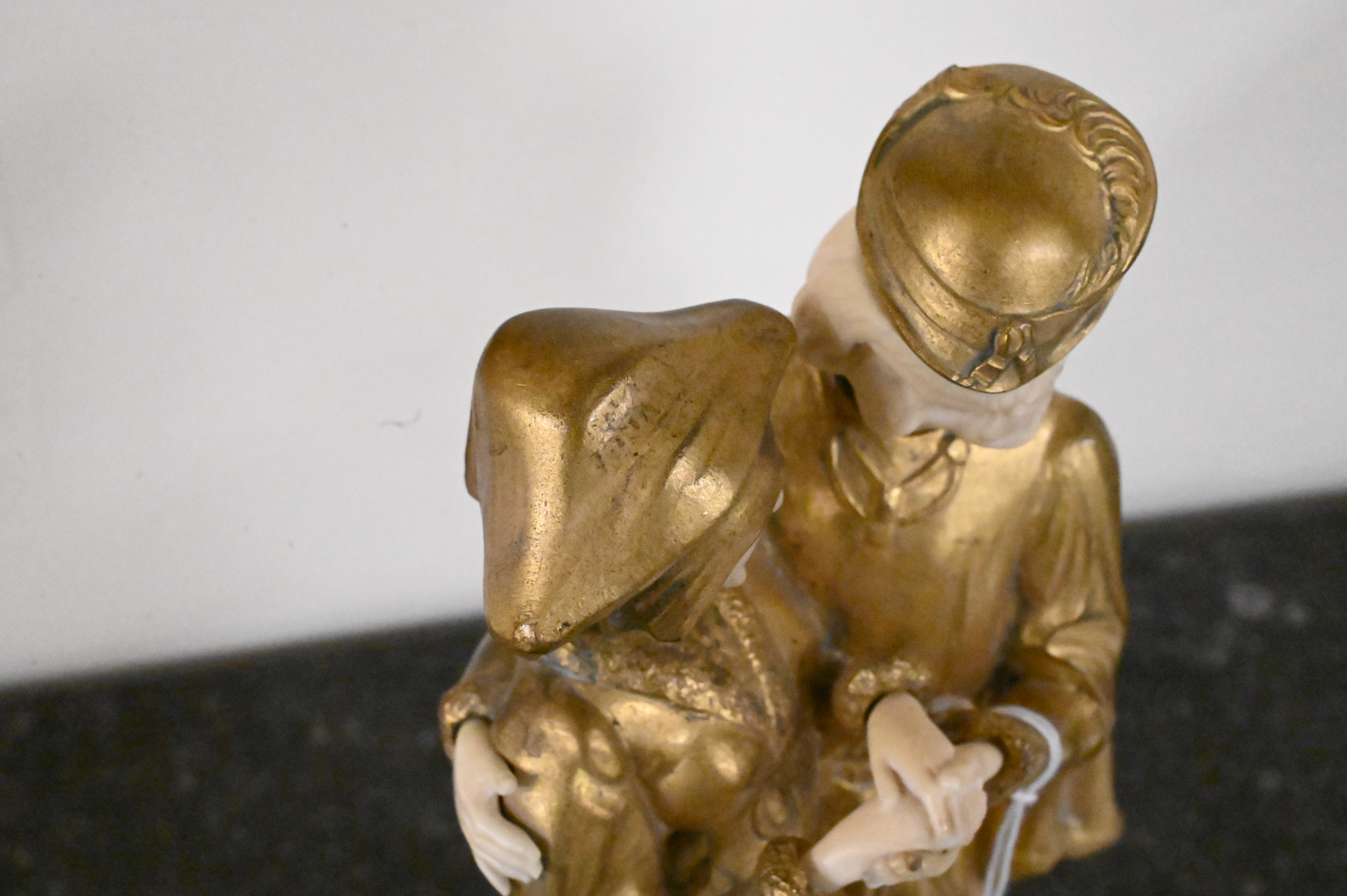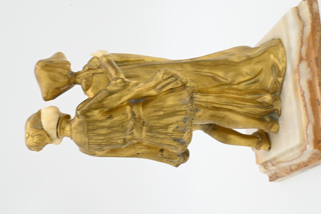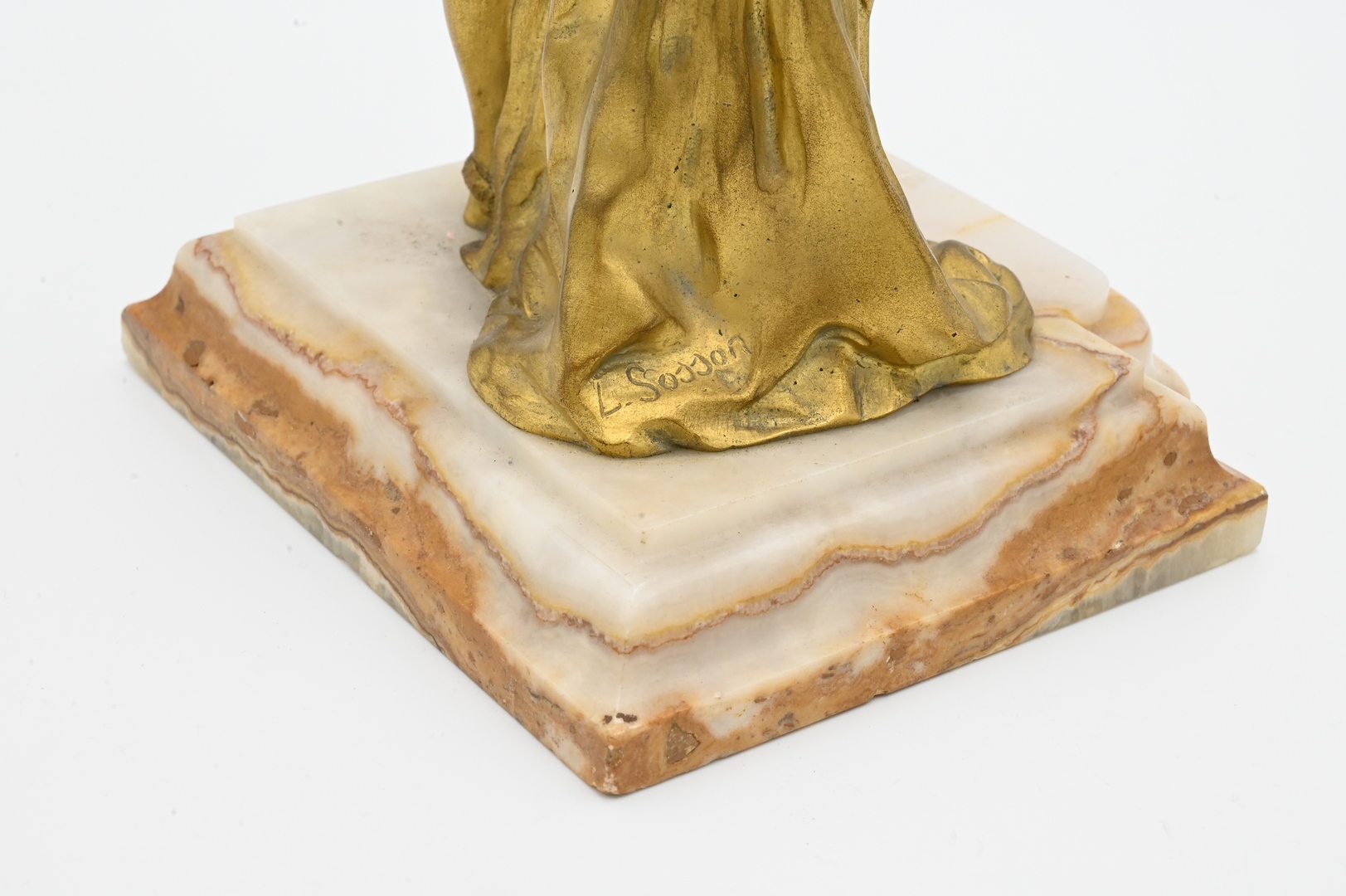 courtly lovers in late medieval costume, gilt bronze on onyx base, signed on back of dress L. Sosson
