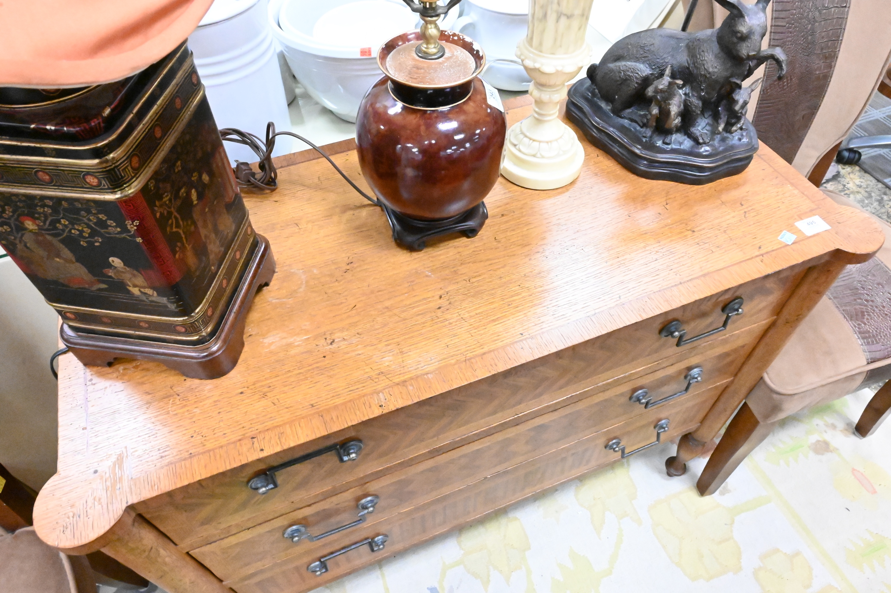 Lot 495: Milling Road Oak Inlaid Three Drawer Chest