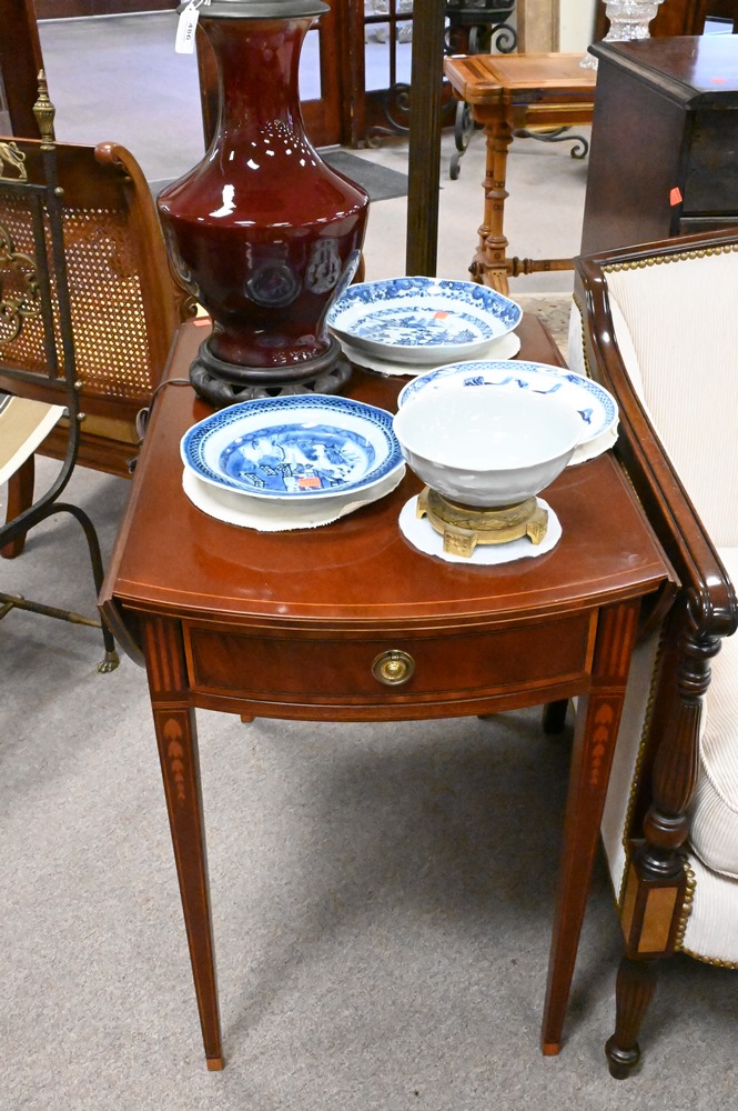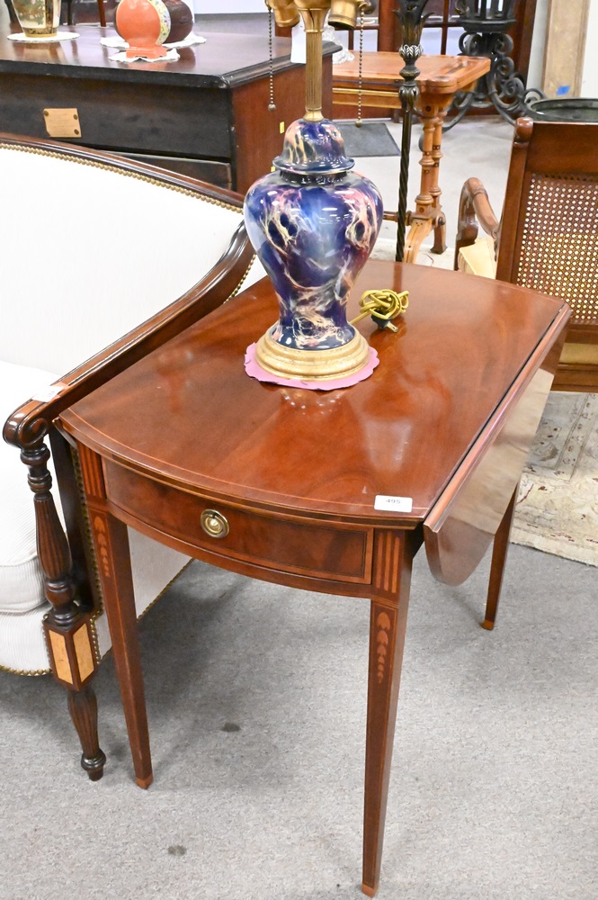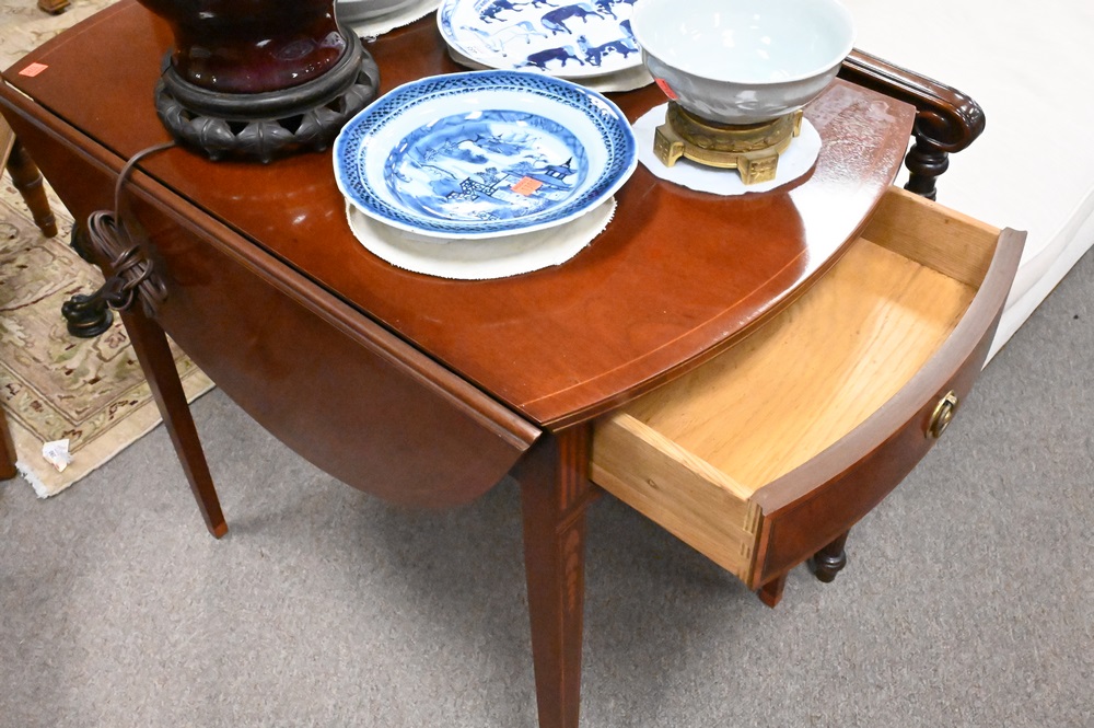 Pair of Baker Federal Style Mahogany Pembroke Tables, having bellflower inlays, height 28 inches, closed width 20 inches, depth 30 inches.