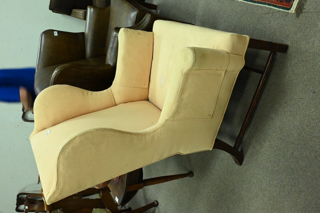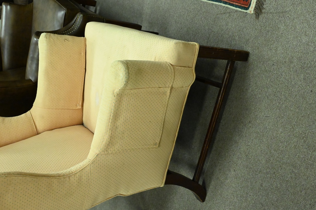 Lot 496: Chippendale Mahogany Upholstered Wing Chair
