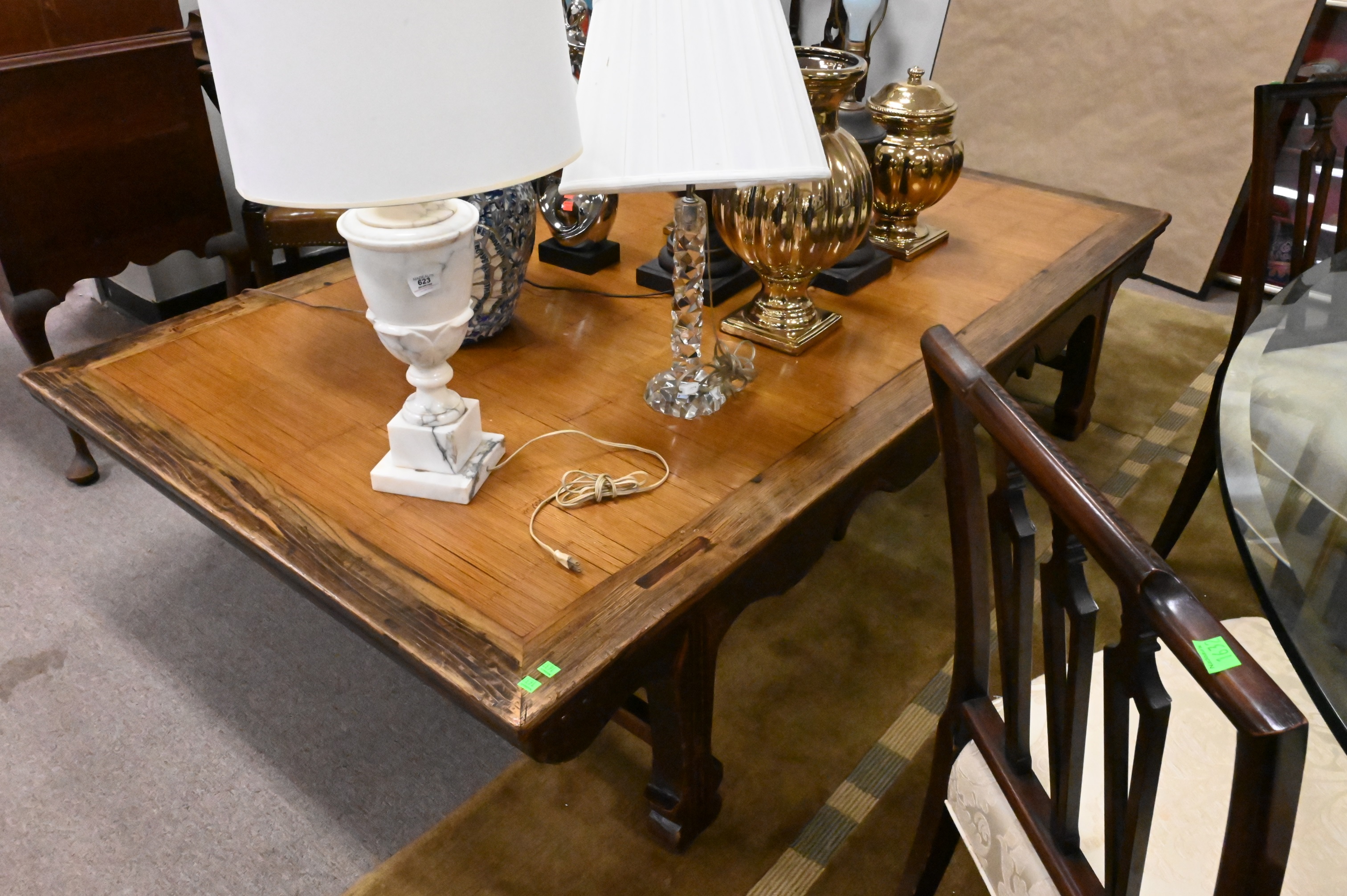 Molded Composite Capital, now mounted as a table, having oval plate glass top with beveled edge, base molded as a Corinthian column capital, height 29 1/2 inches, top 59 1/2″ x 80″. Provenance Property from a private New York collection sold to benefit charitable foundations.