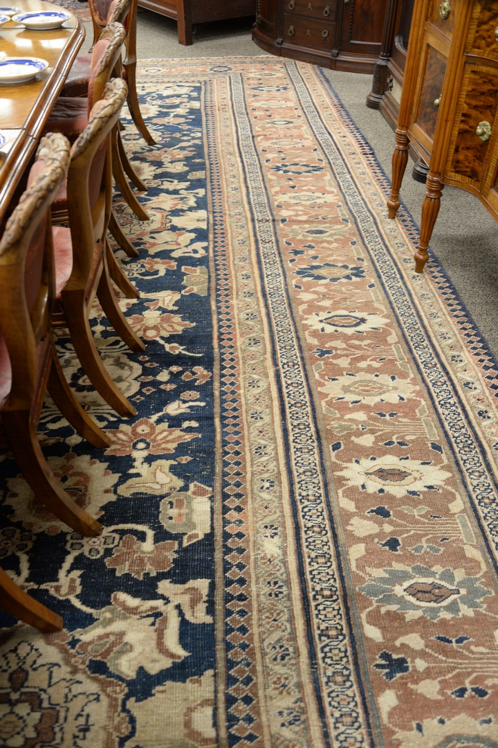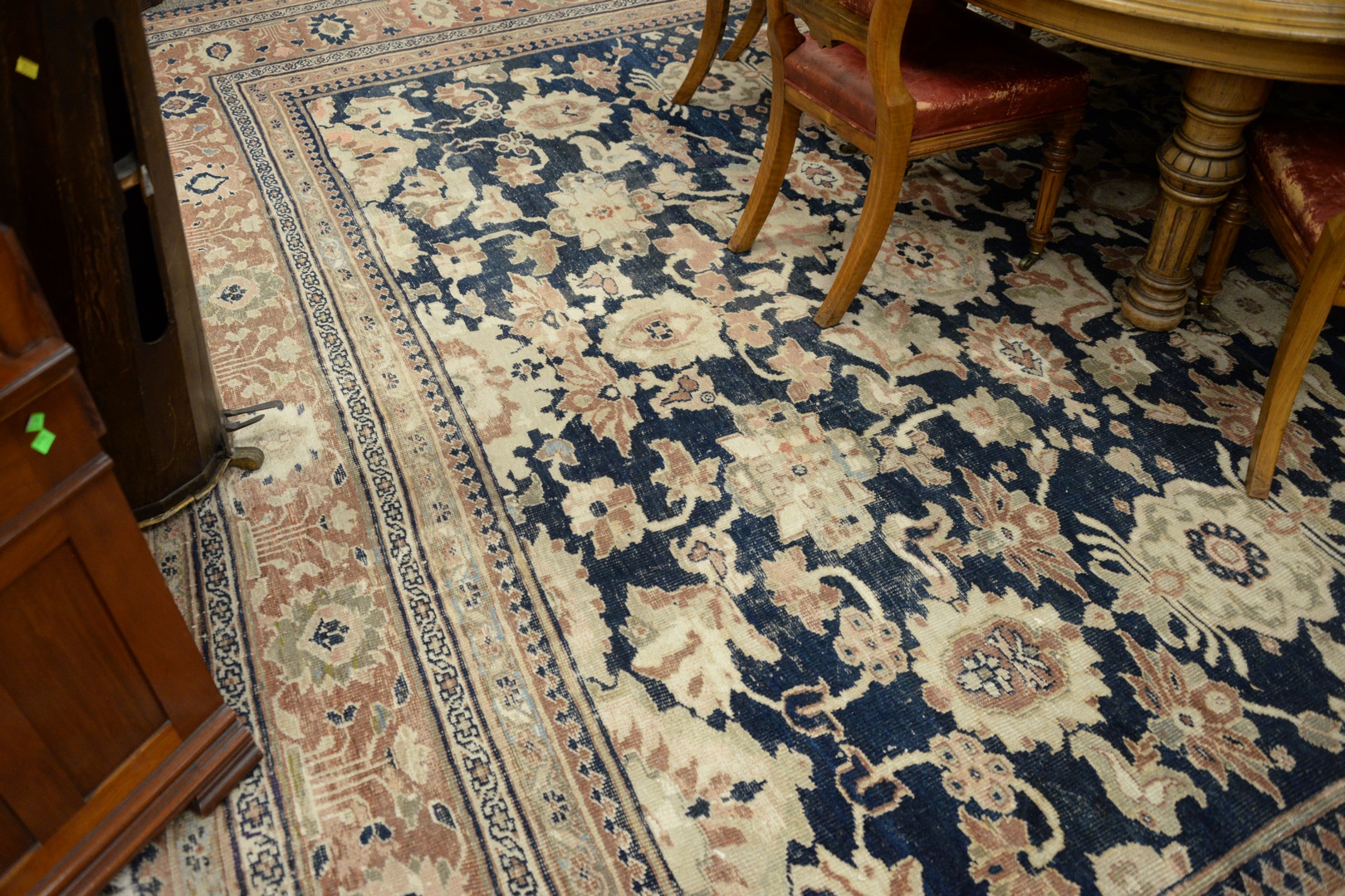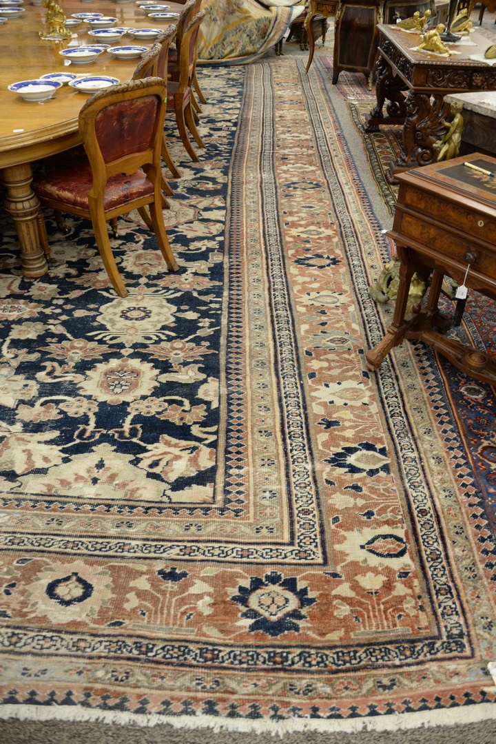 Lot 496: Oushak Oriental Carpet with wear, cut and patched 14’6 x 24’7 Provenance: Former home of Mel Gibson, Old Mill Rd, Greenwich, Con…