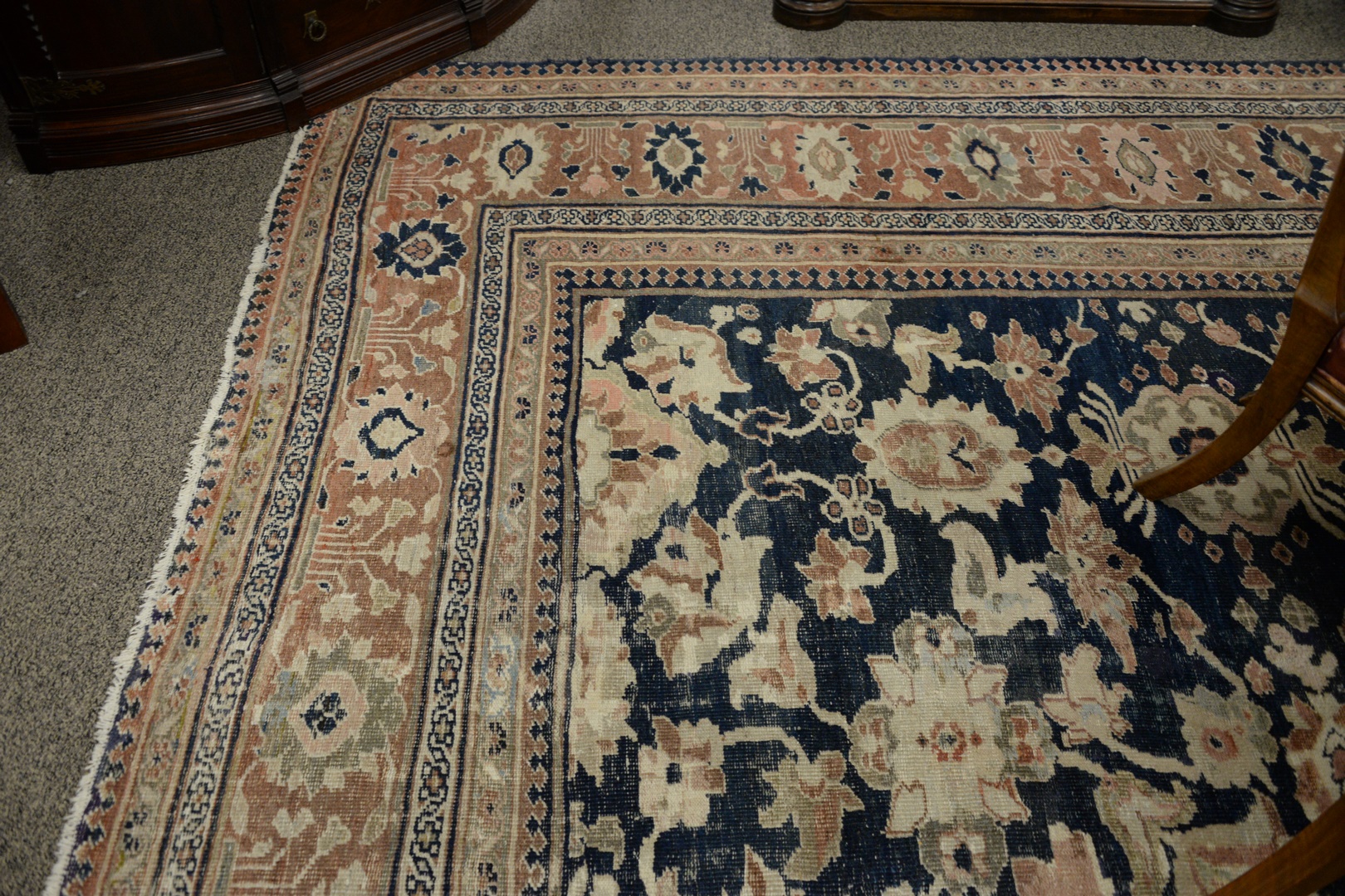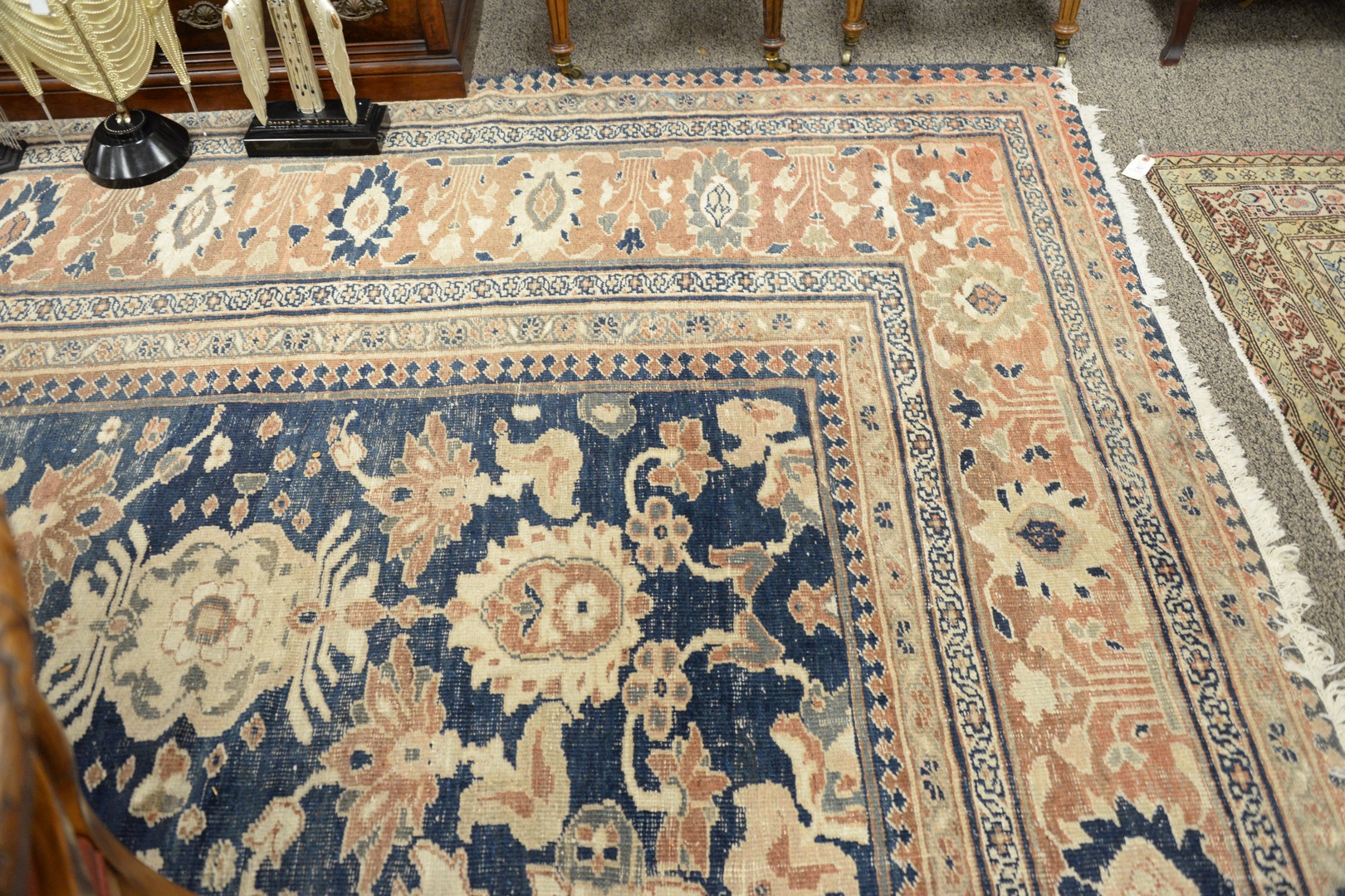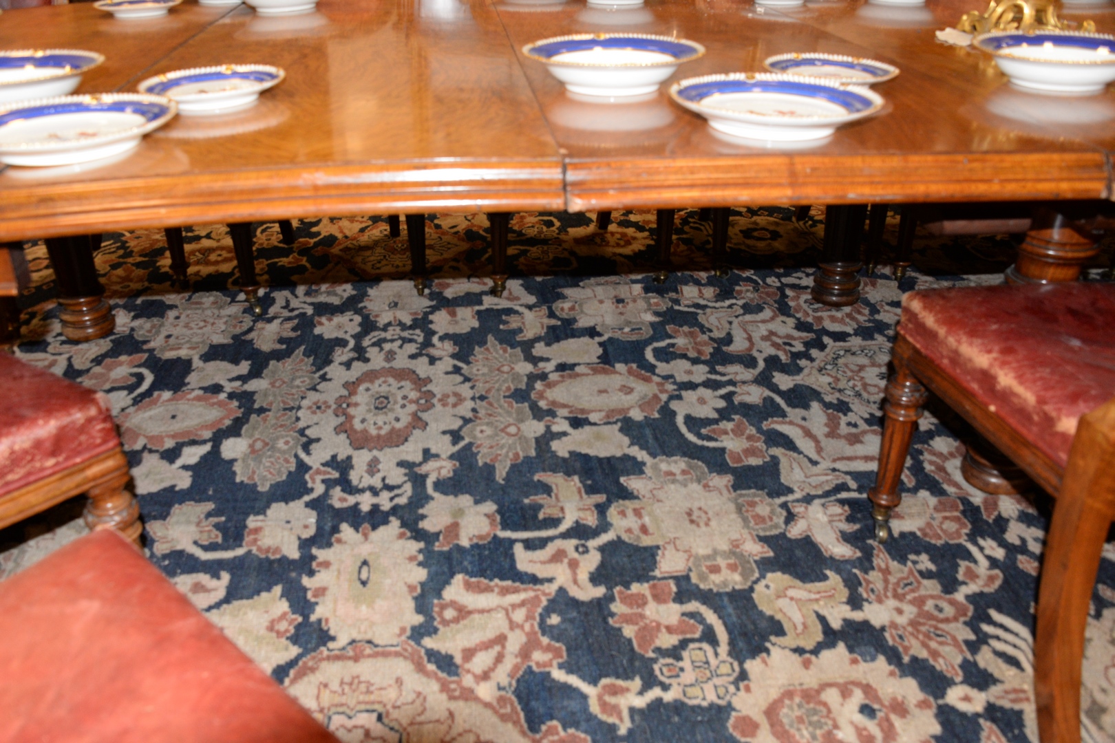 Lot 496: Oushak Oriental Carpet with wear, cut and patched 14’6 x 24’7 Provenance: Former home of Mel Gibson, Old Mill Rd, Greenwich, Con…