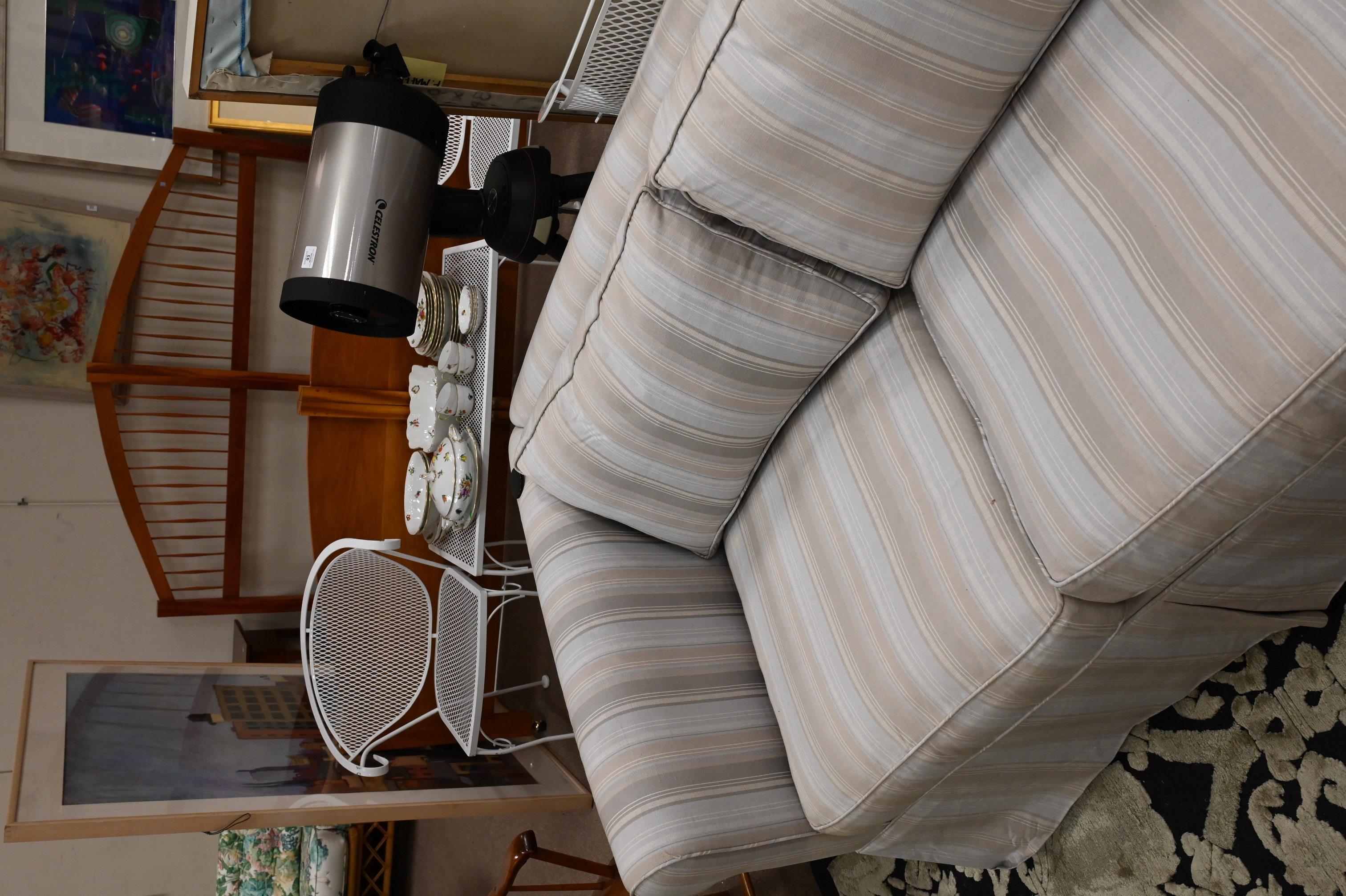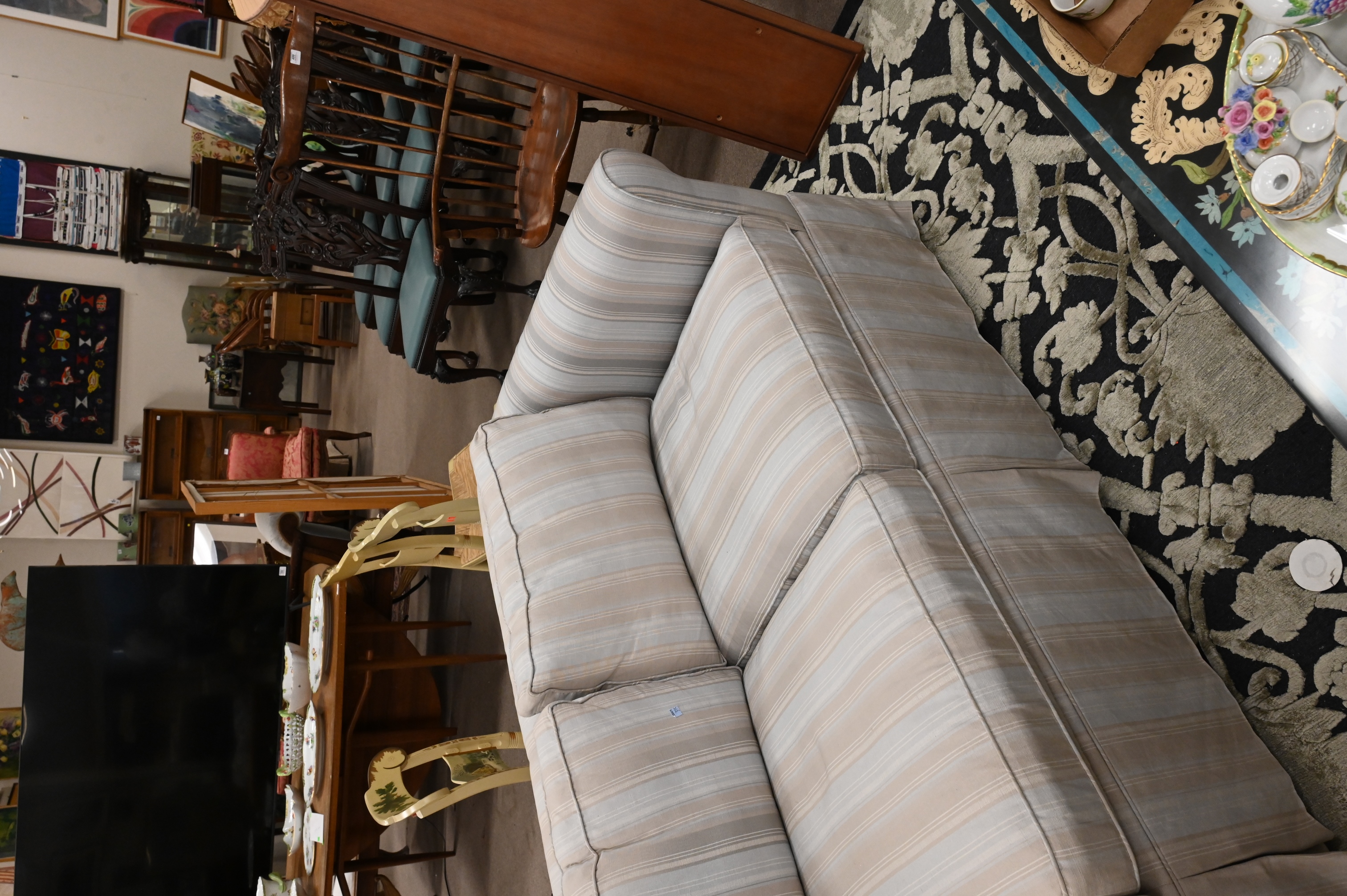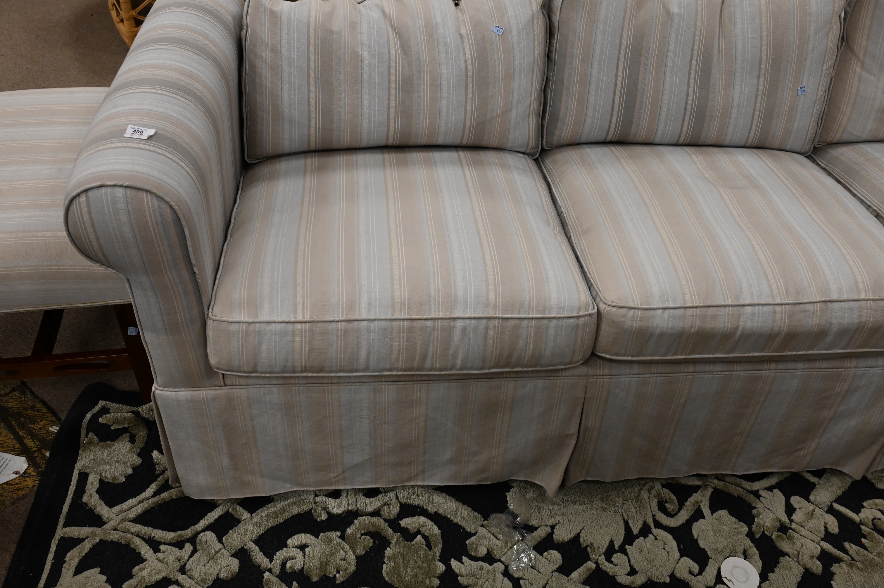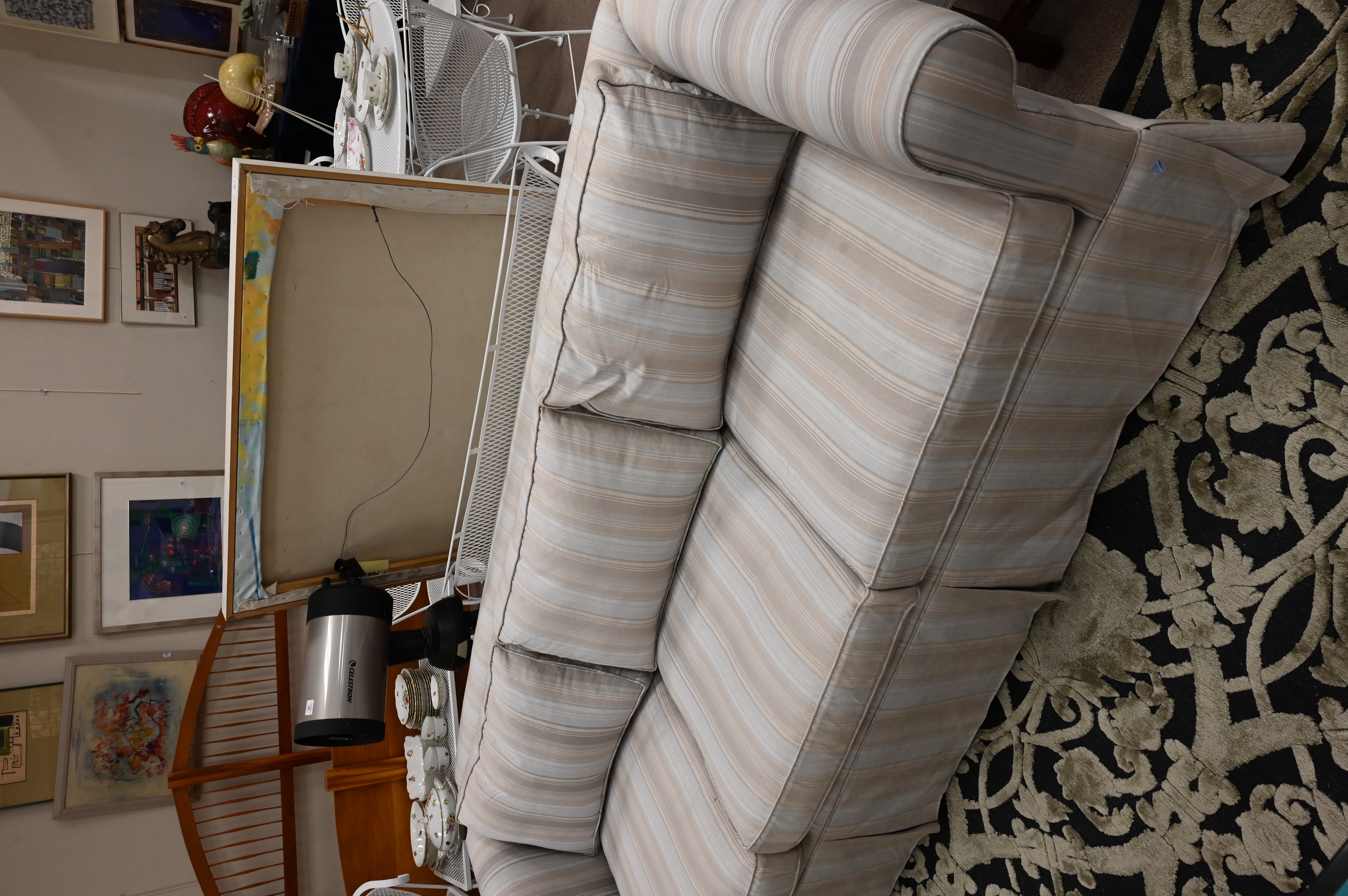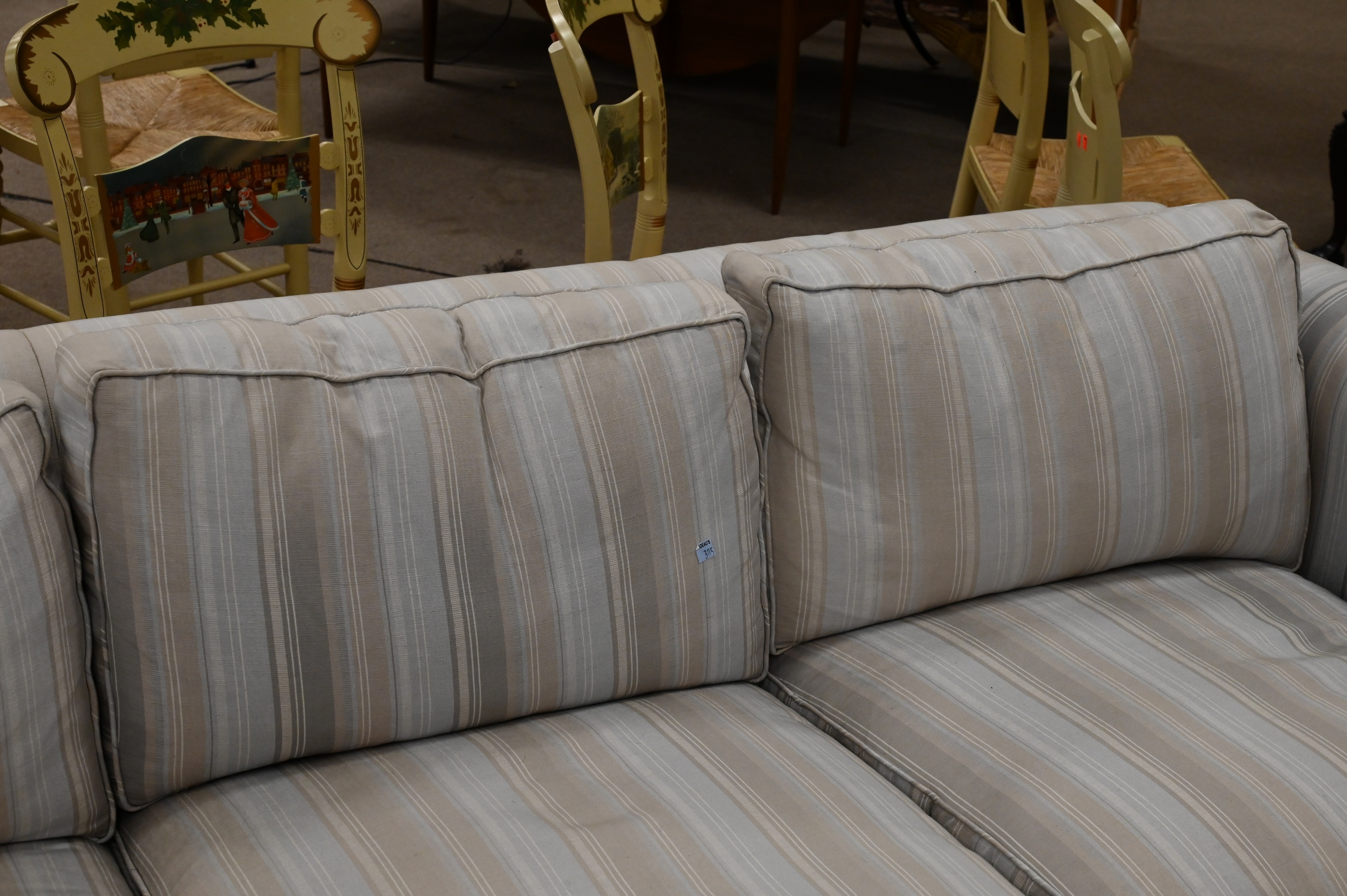 Lot 496: Pair of Avery Boardman Upholstered Sofas having Striped Upholstery
