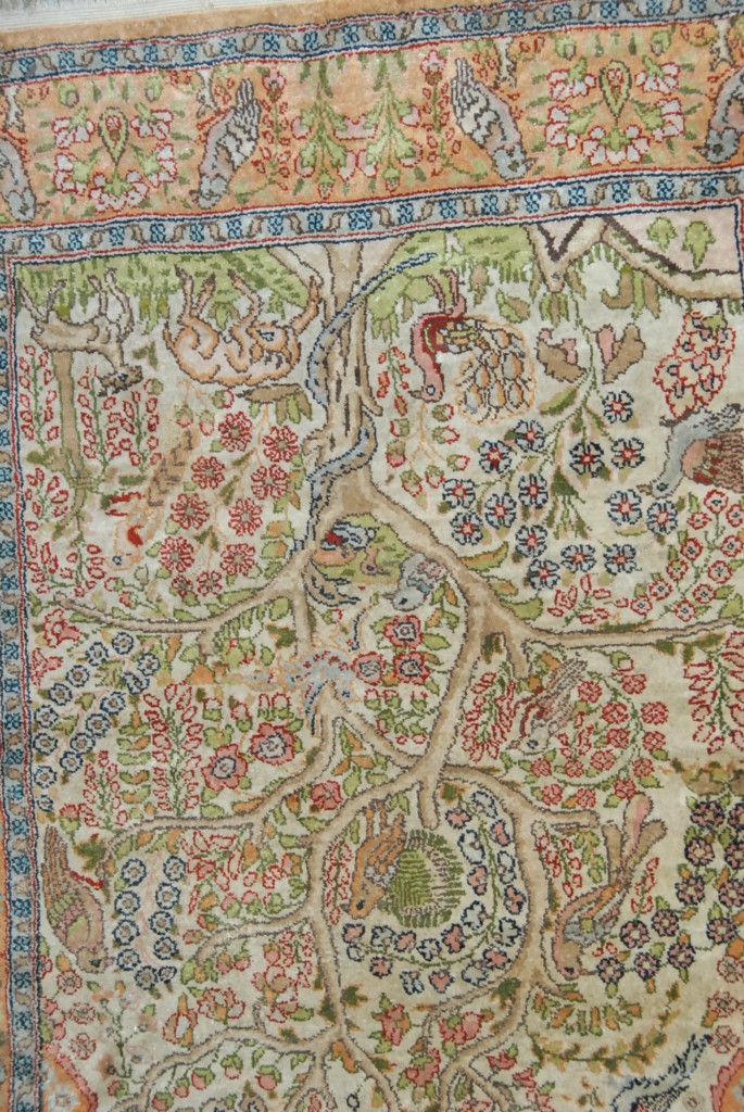 Silk Oriental throw rug, Tree of Life design. 2′ x 3′