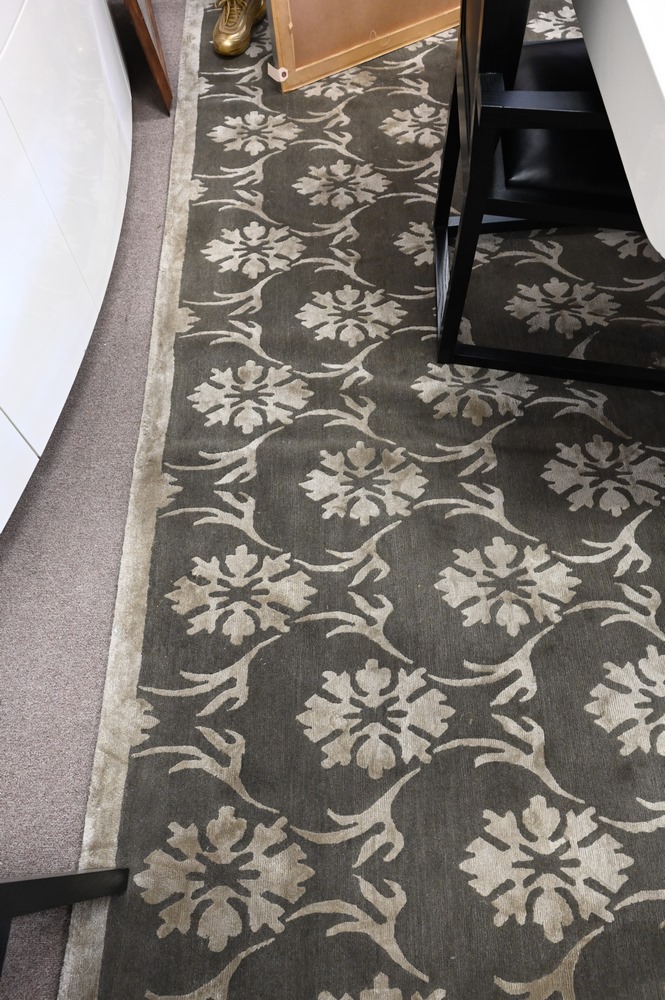 Lot 496: Stark Custom Room Size Carpet with tan and brown floral relief, 11′ 2″ x 15′ 4″.