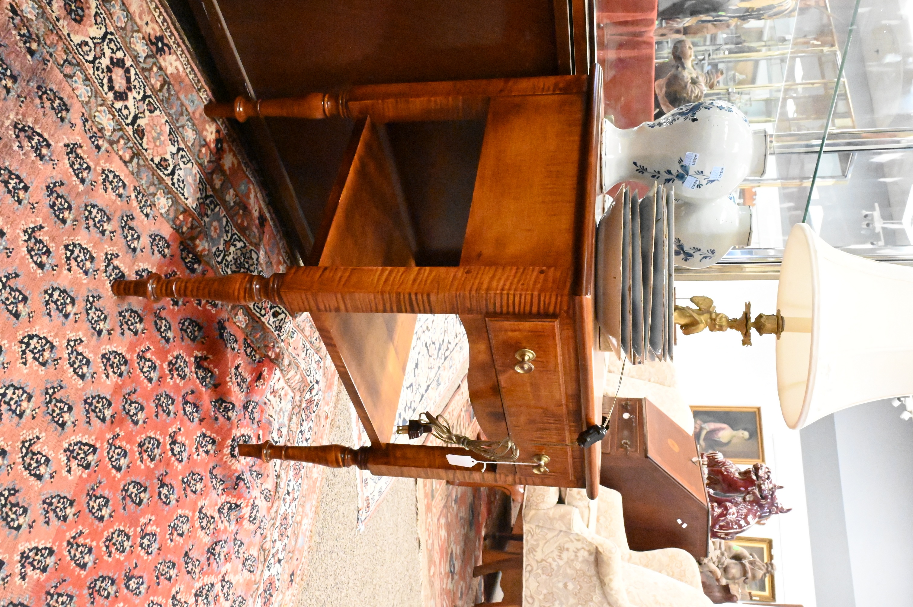 Lot 497: Adriance Custom Made Maple and Tiger Maple Two Door Cabinet on Bracket Base