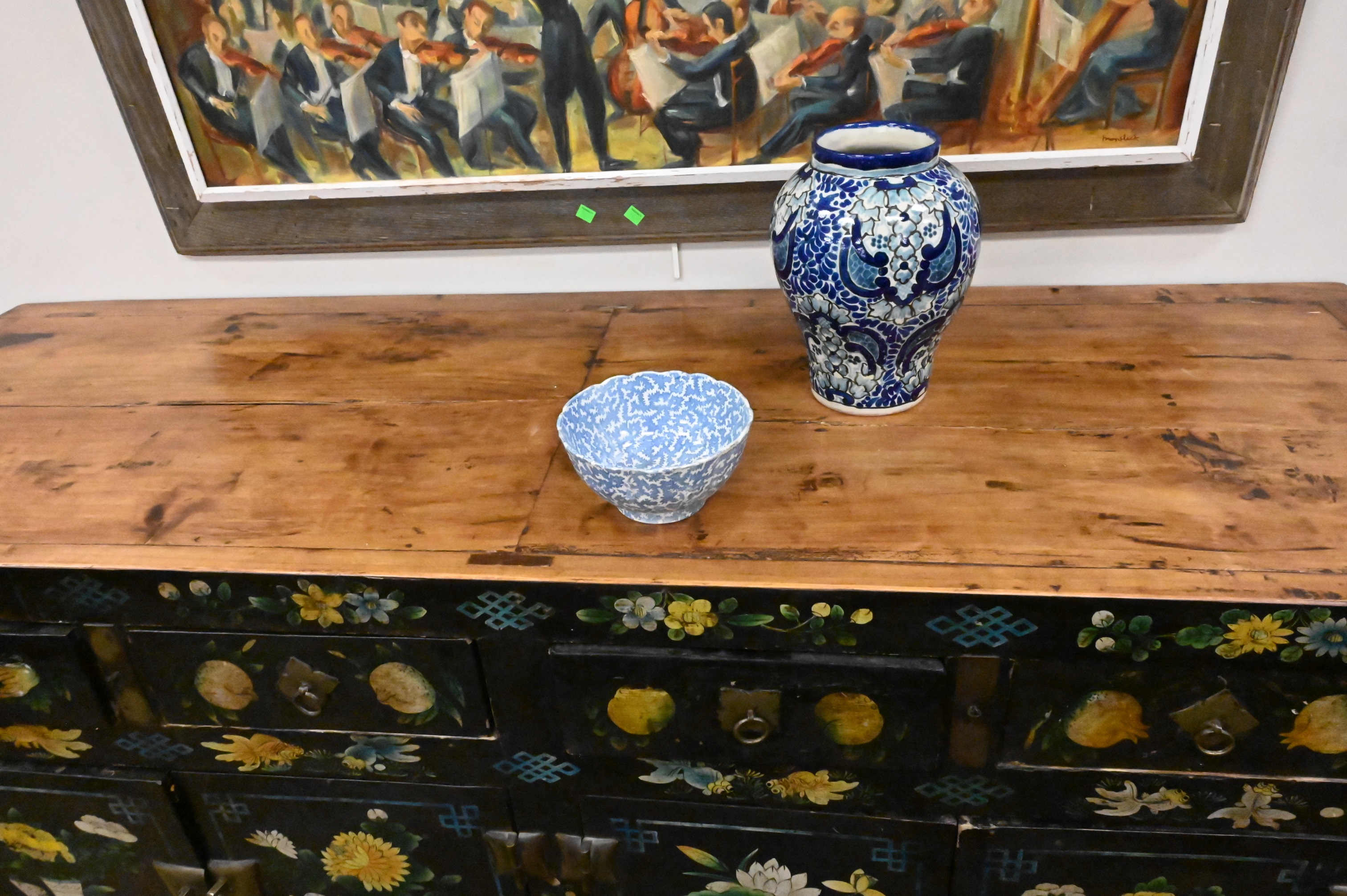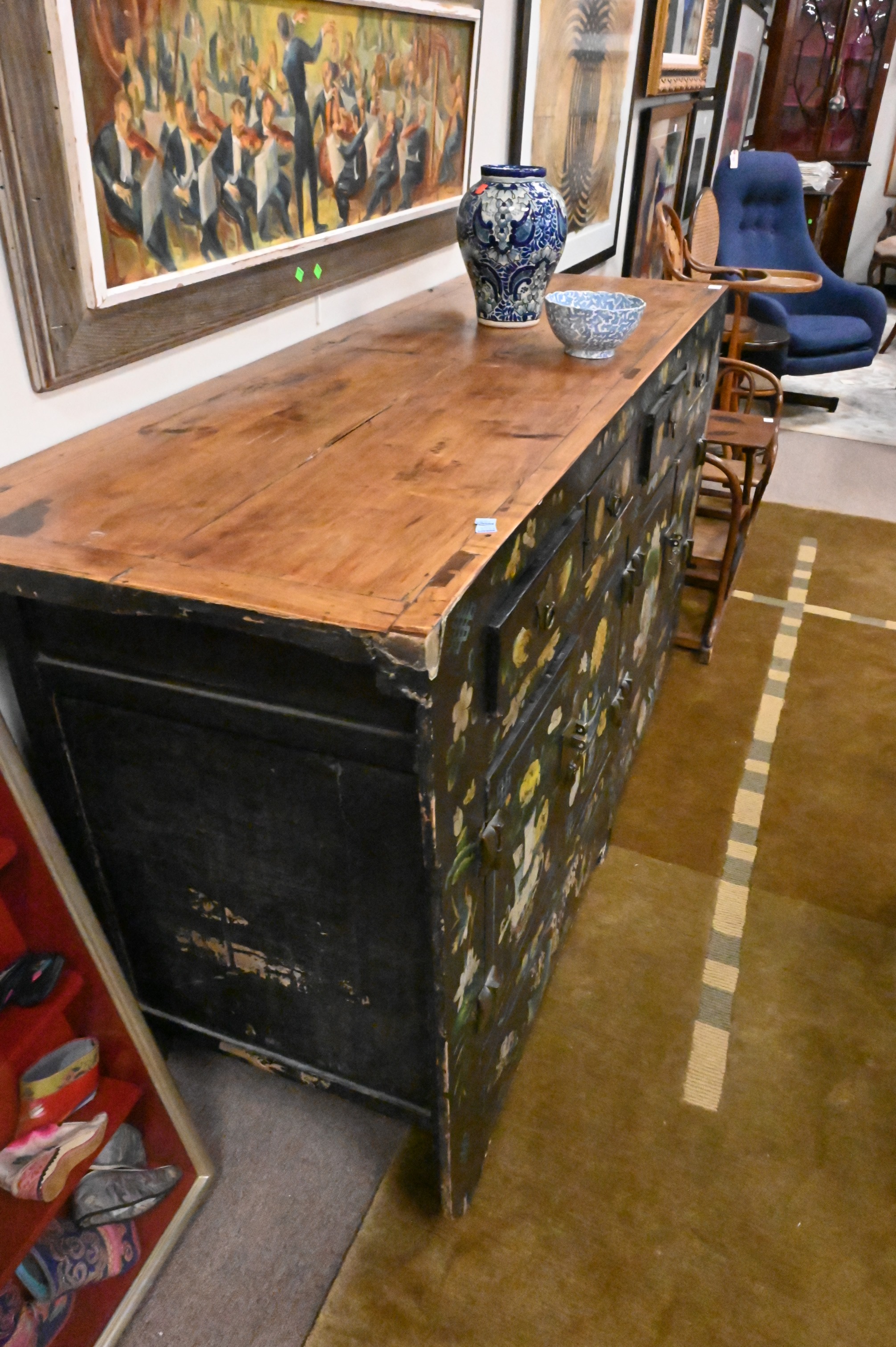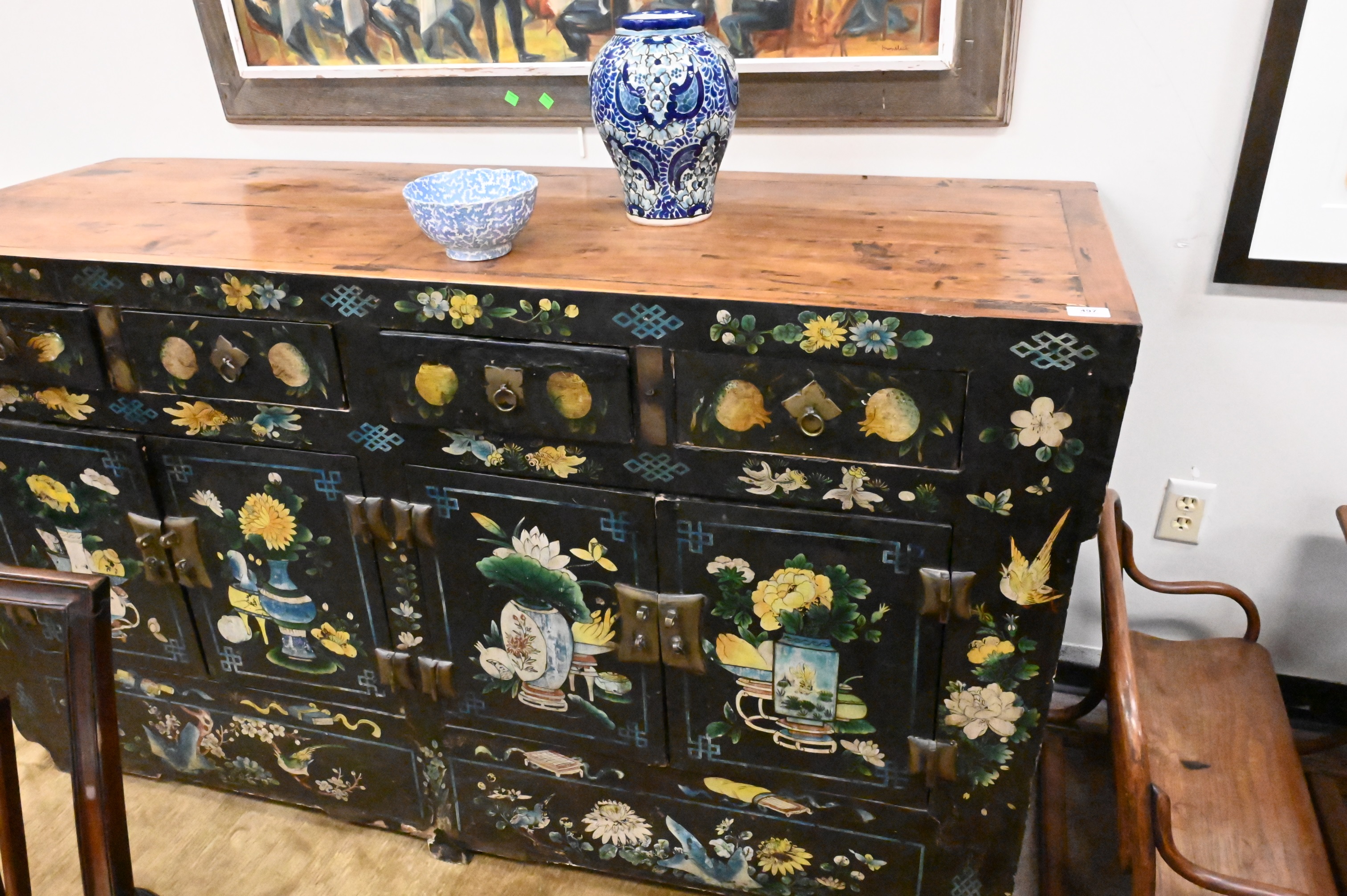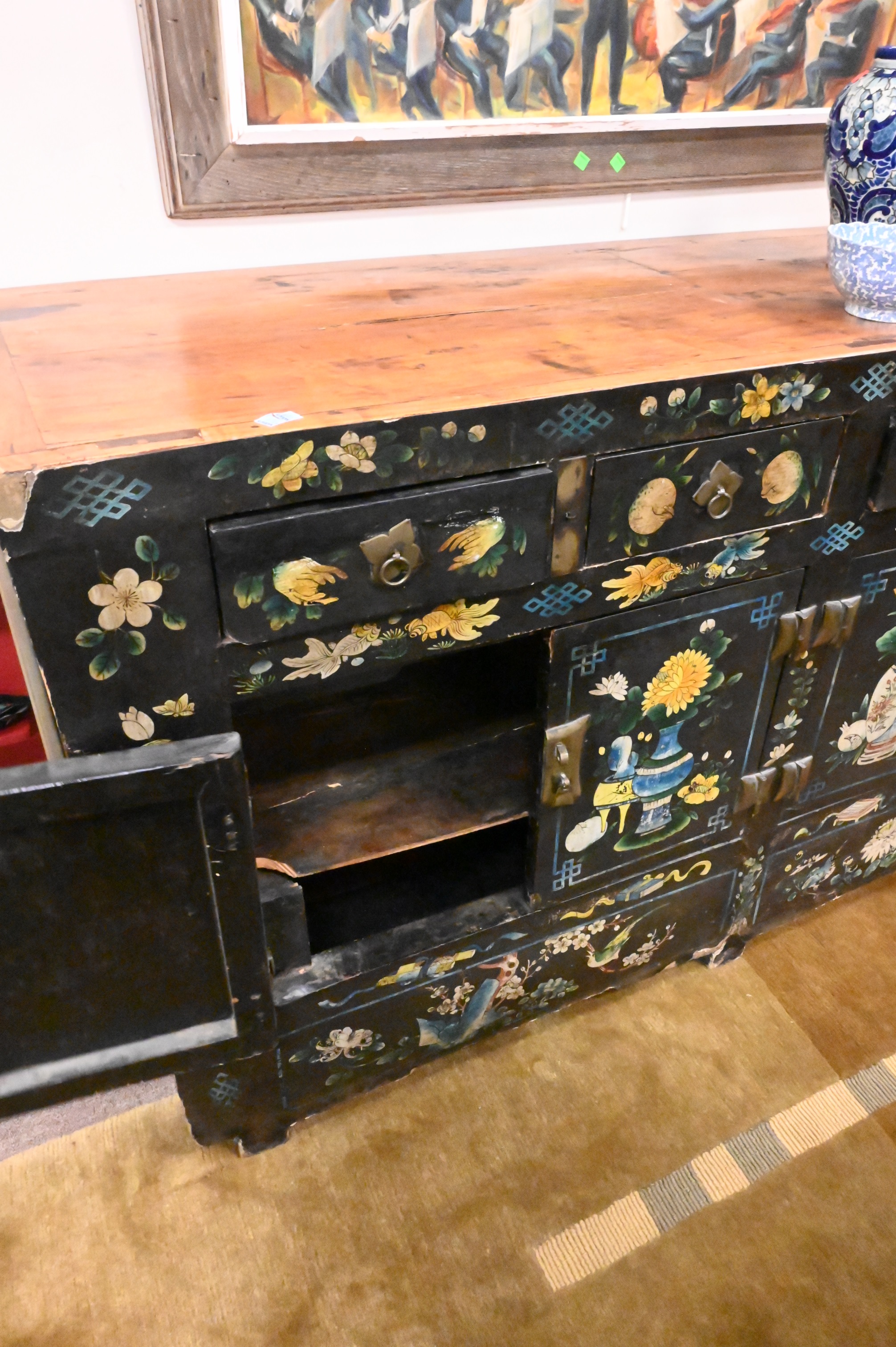 Chinese Cabinet, having doors and drawers, height 37 inches, top 23″ x 67″
