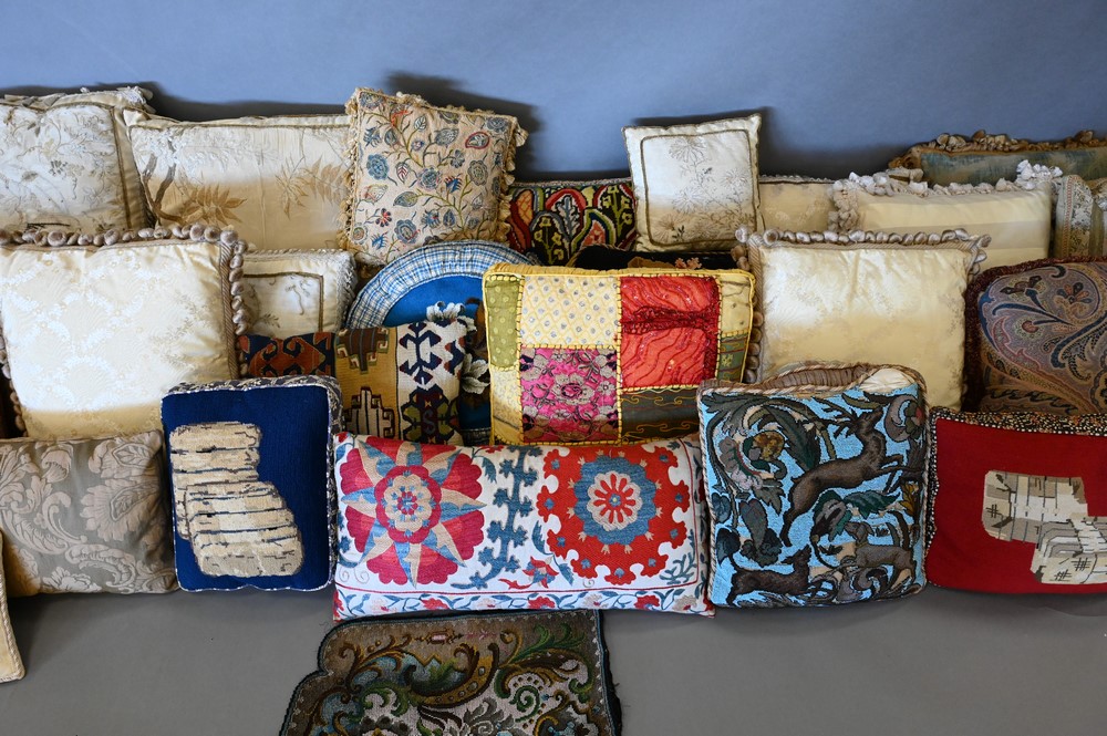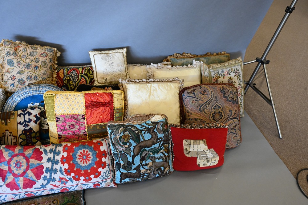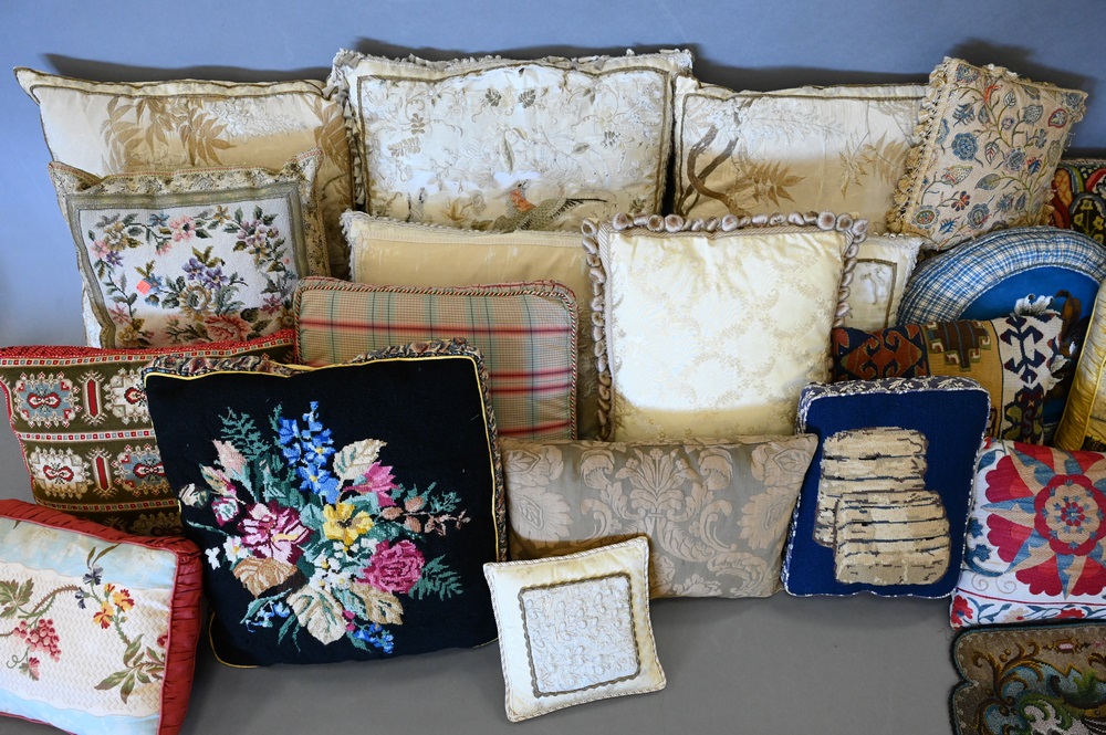 Large Lot of Miscellaneous Pillows, many having embroidery.
