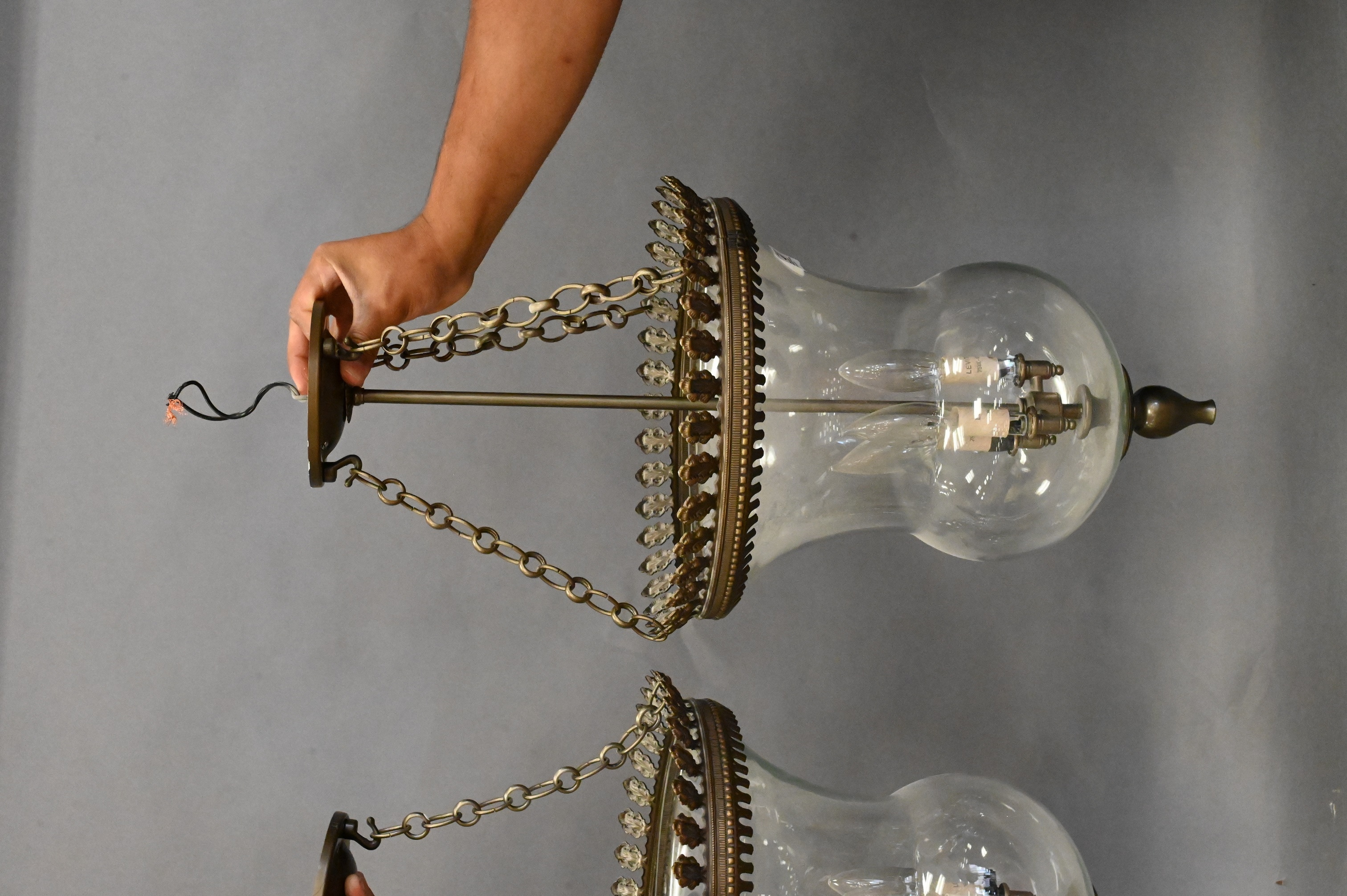 Pair of Regency Style Glass and Metal Hall Lanterns