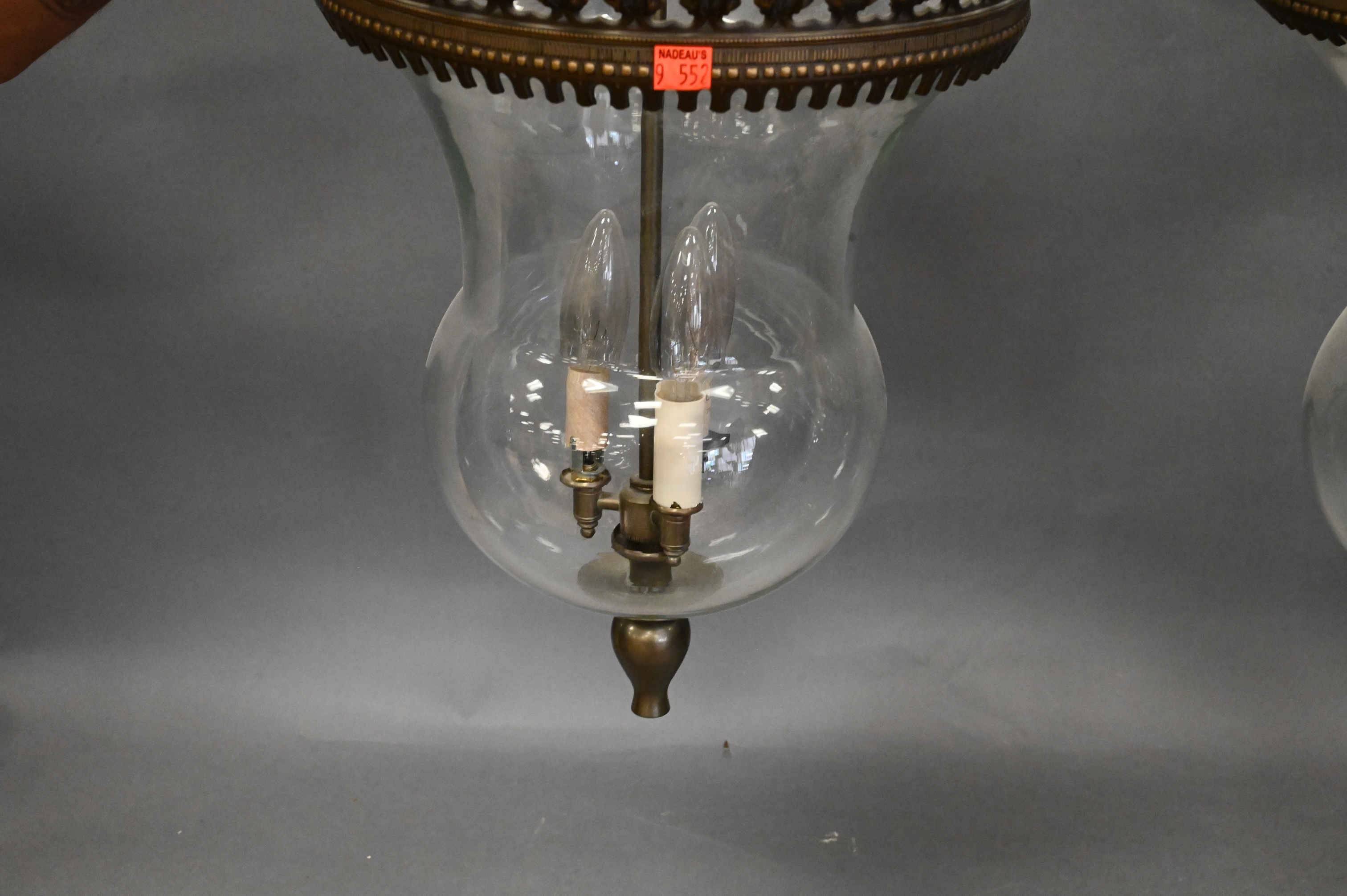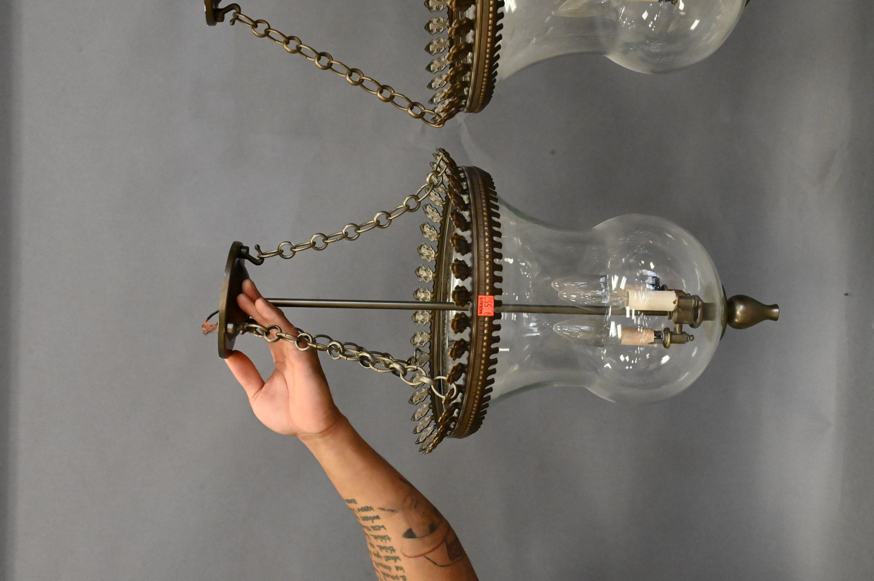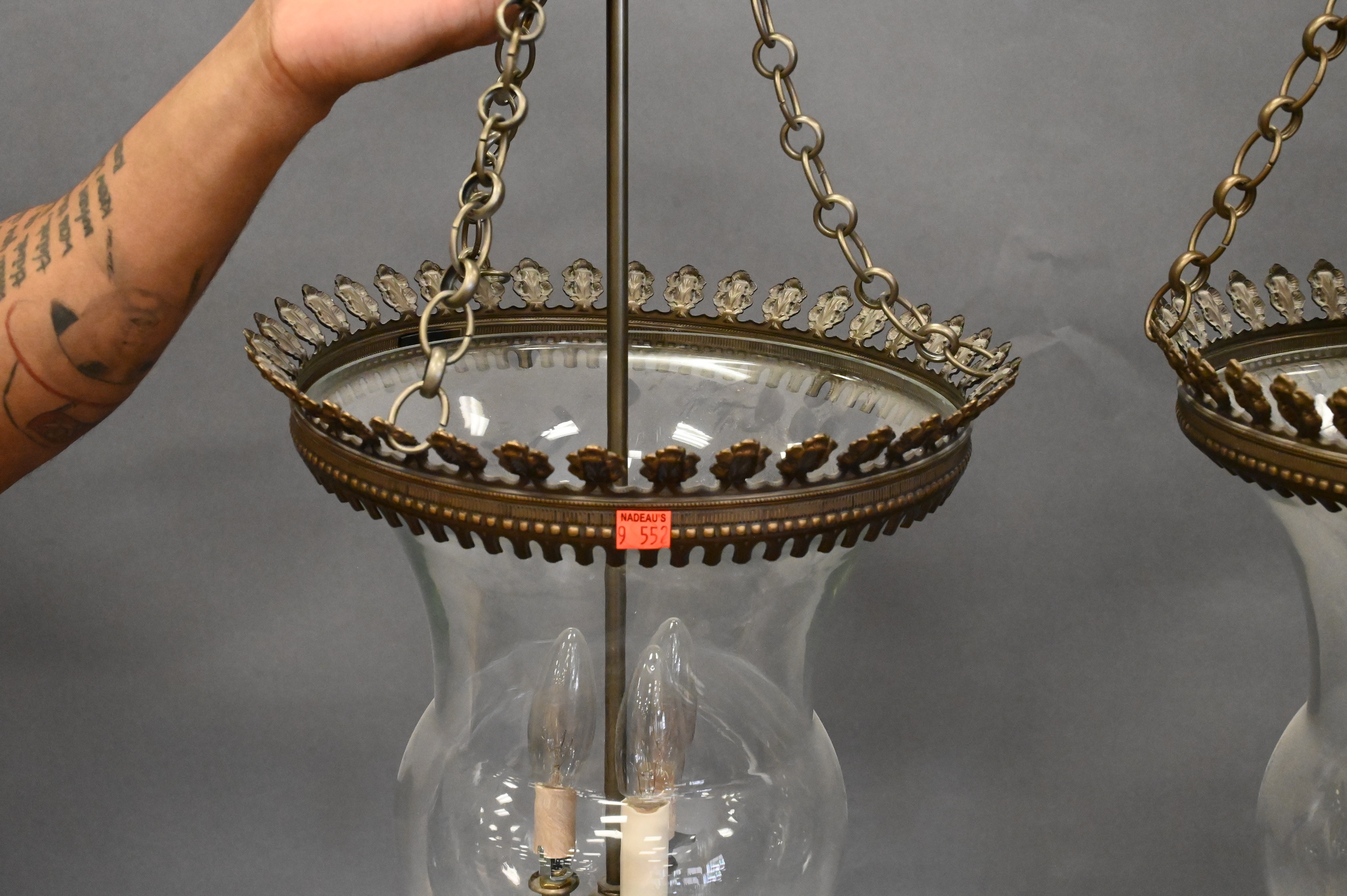 Lot 497: Pair of Regency Style Glass and Metal Hall Lanterns