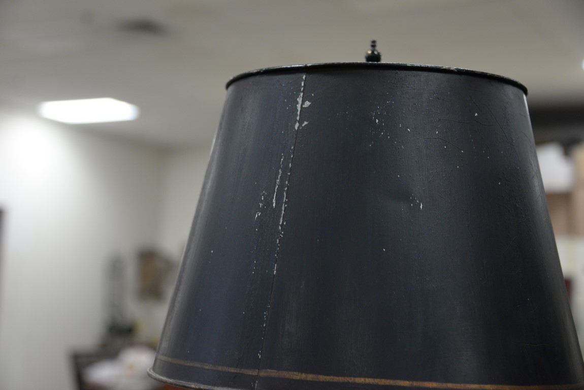Pair of tole lamps with tole shades. ht. 28 in.