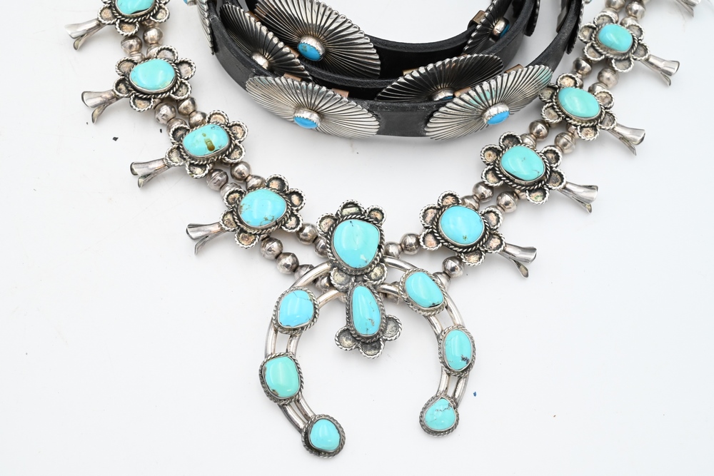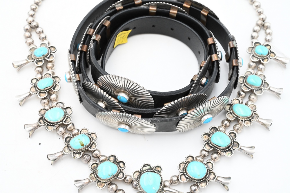 to include Dick Muller leather belt mounted with oval silver mounts with turquoise
