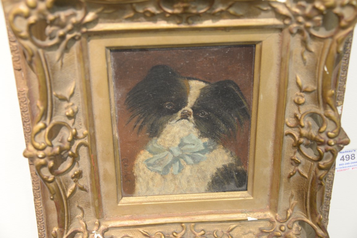 Lot 498: Carl Reichert 1836-1918 oil on board Japanese Chin with Blue Ribbon signed lower left: C. Reichert being sold with Rosehill Au…