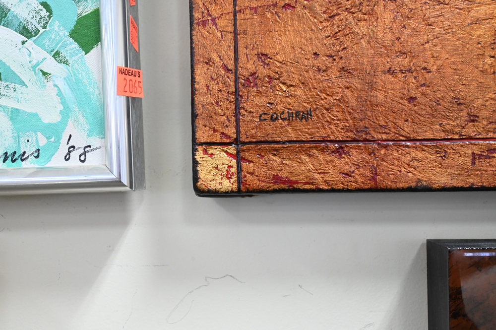Dorothy Cochran, oil on canvas, trees, titled on verso “Silver Sky” from Full Moon Series #8, dated 10/09, signed on verso Cochran, 32″ x 40″.