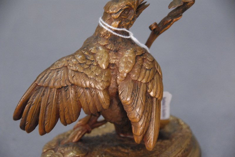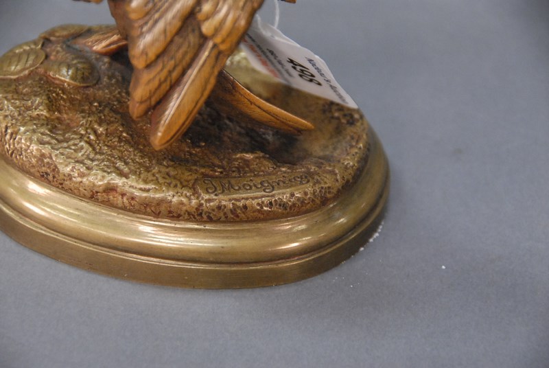 J. Moigniez bronze bird and bug on oval base. ht. 5 1/4in.