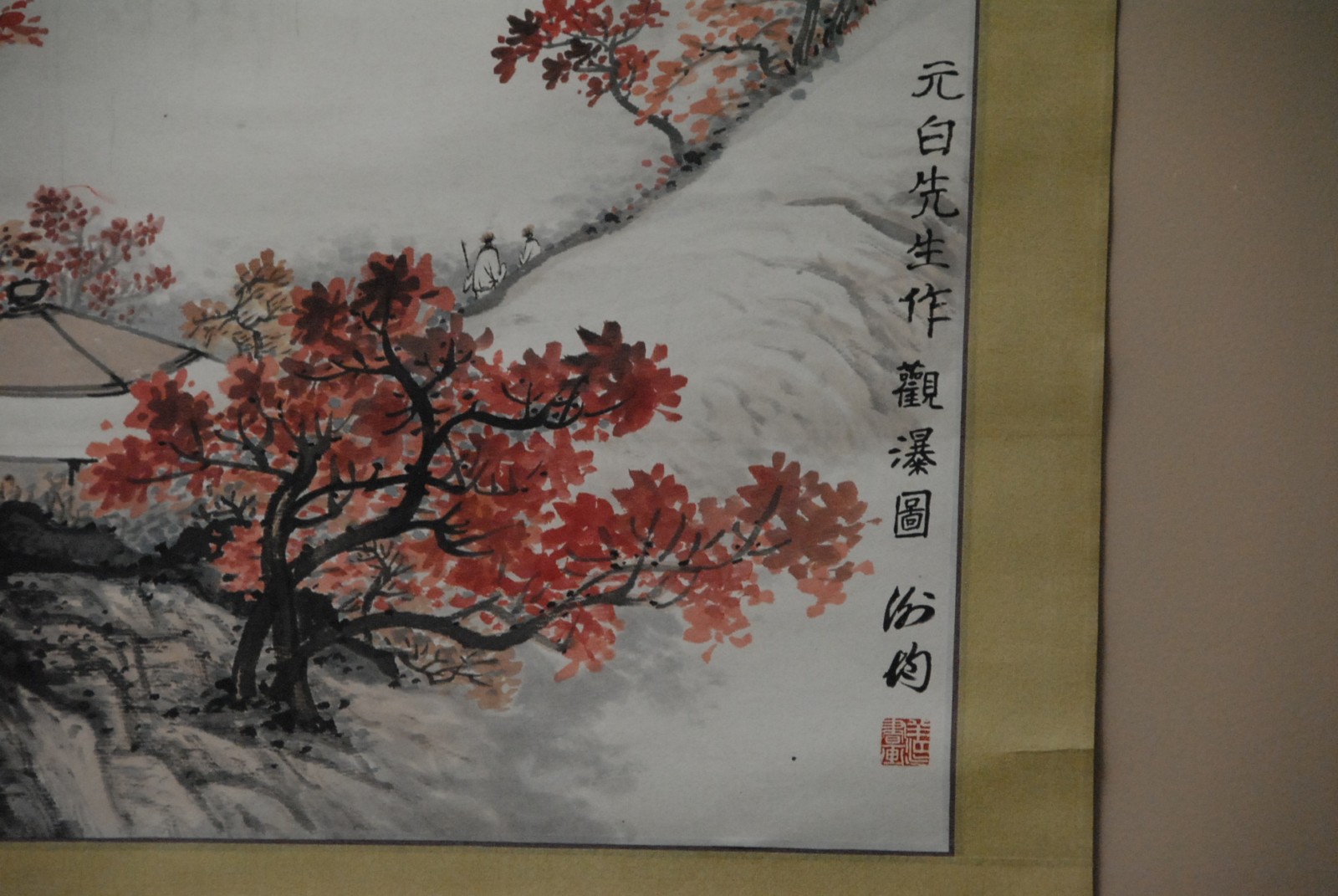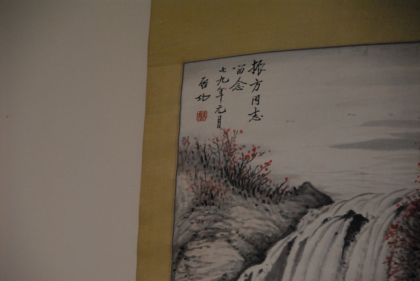Scroll of waterfall and trees.