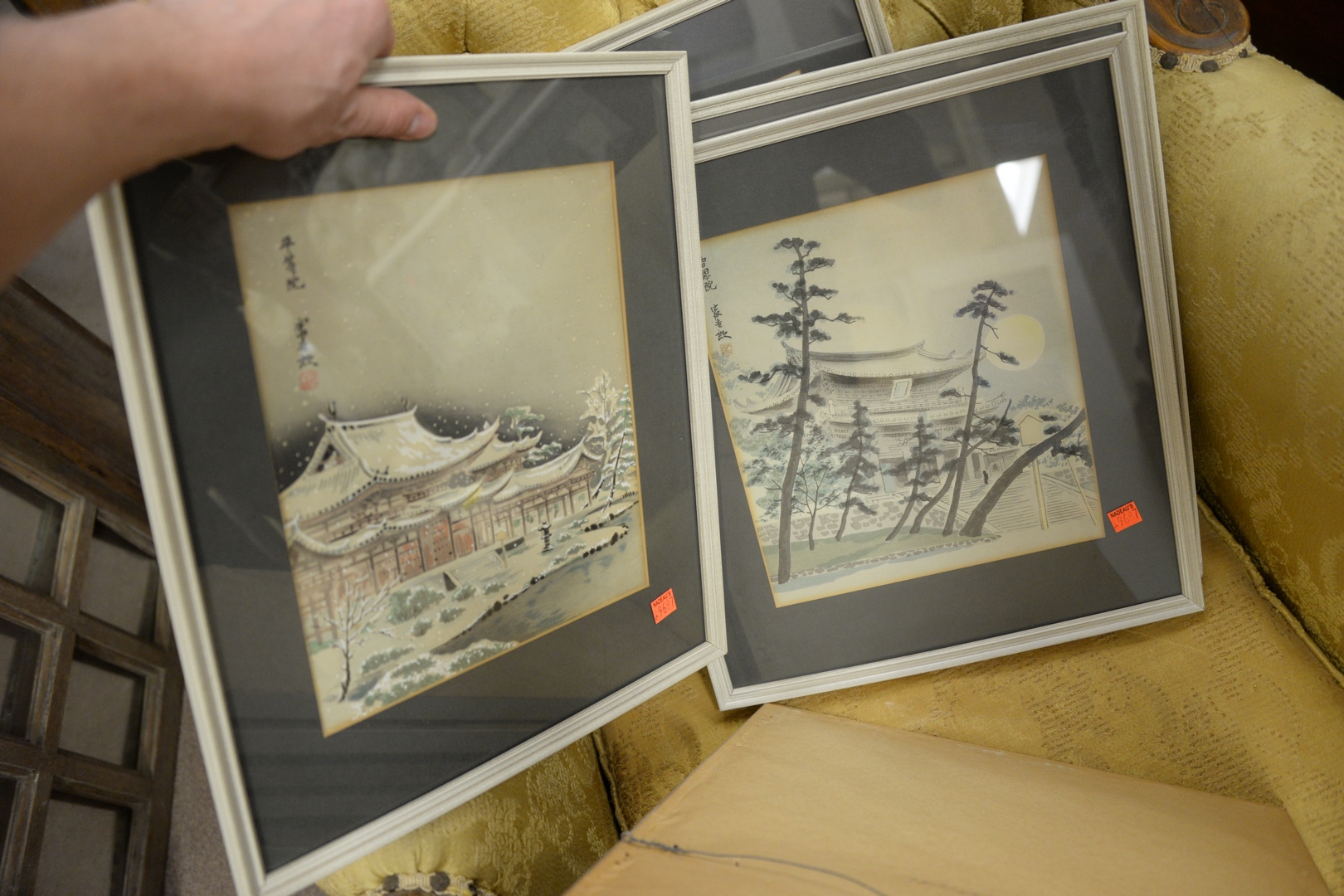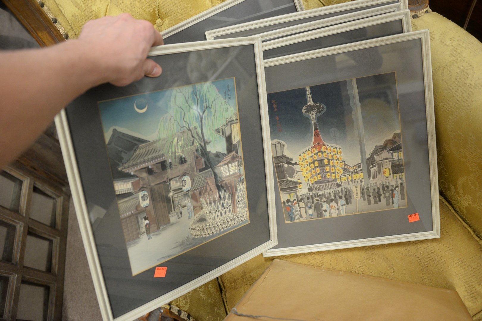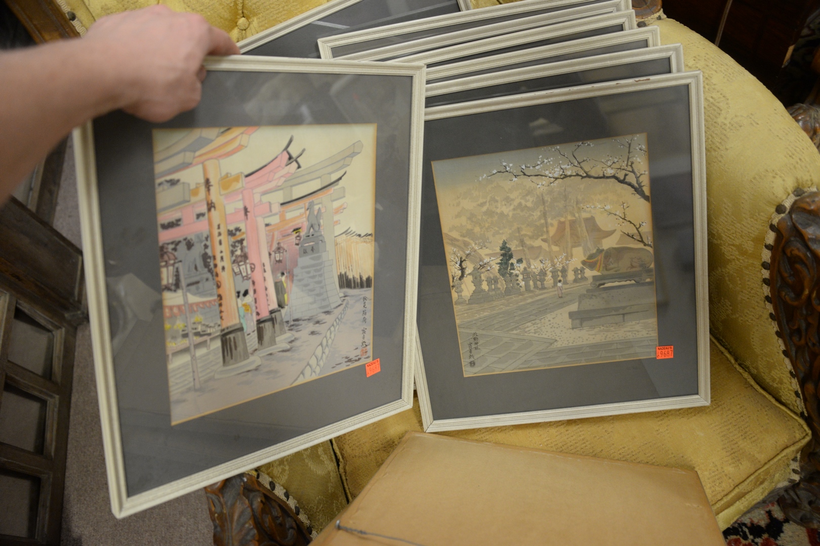 Lot 498: Set of 12 Kyoto Series Woodblocks, Tomikichiro Tokuriki Gion Festival, Willow tree shimbara, Fushimi Festival, Plum Blossoms at Kita…