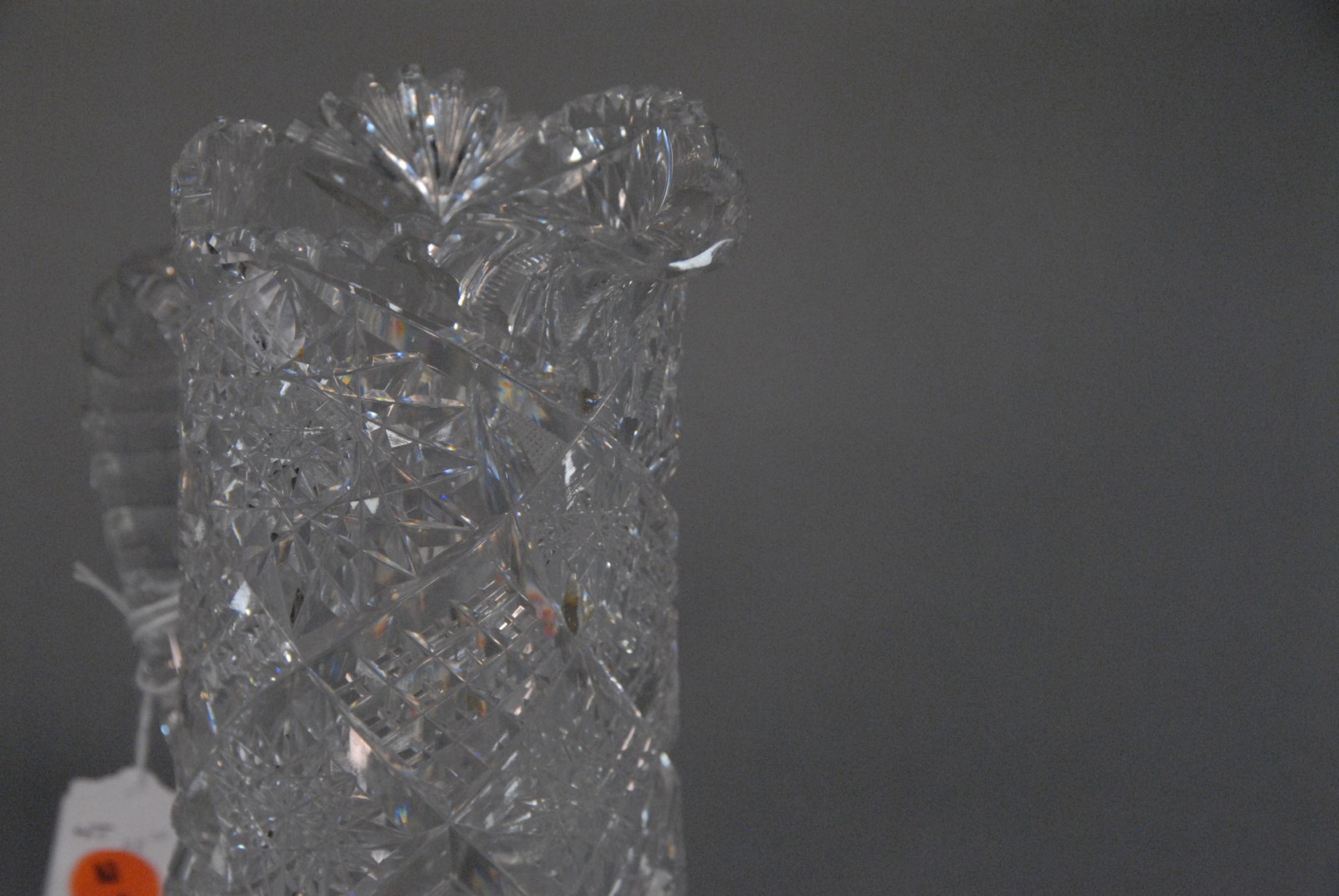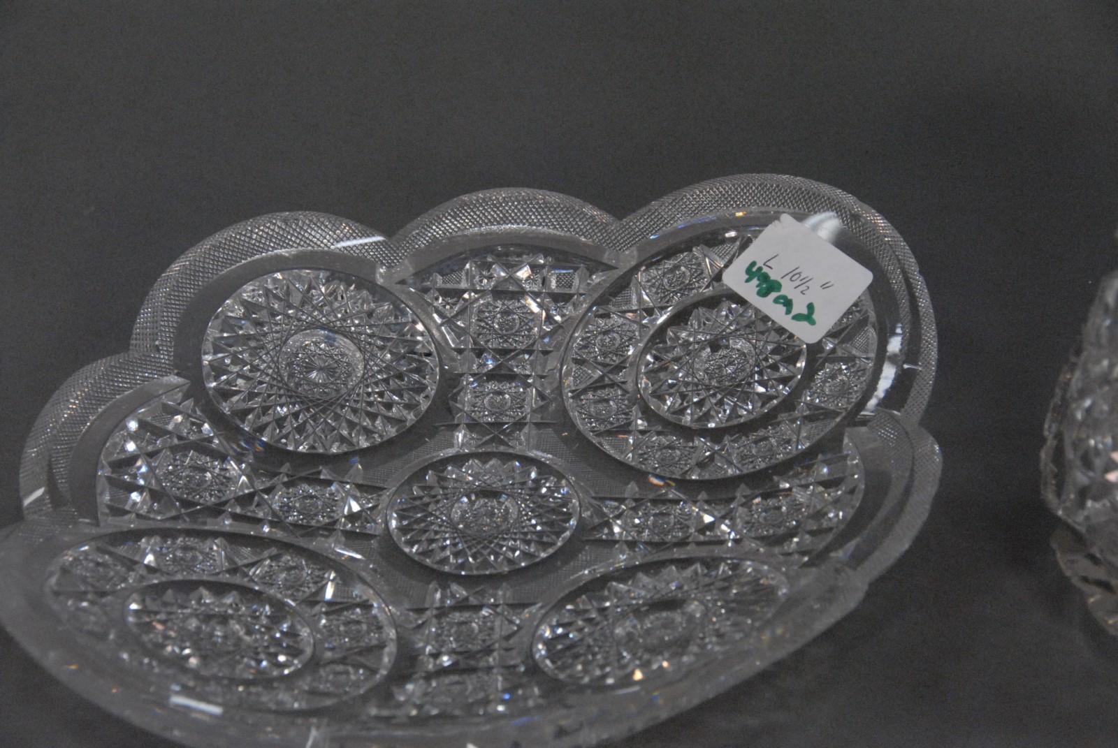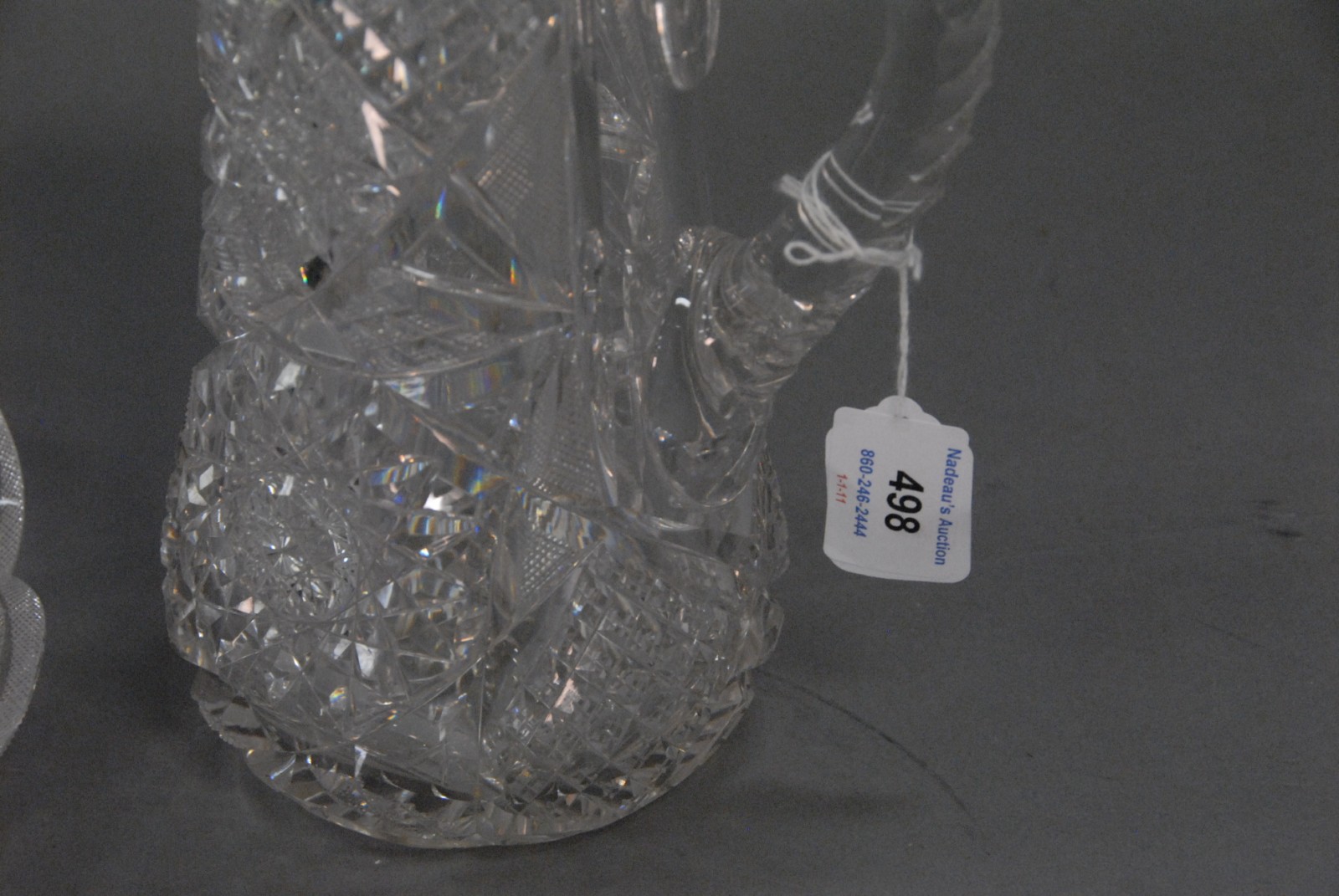 Two pieces American cut glass including ice cream plate small chip and pitcher.