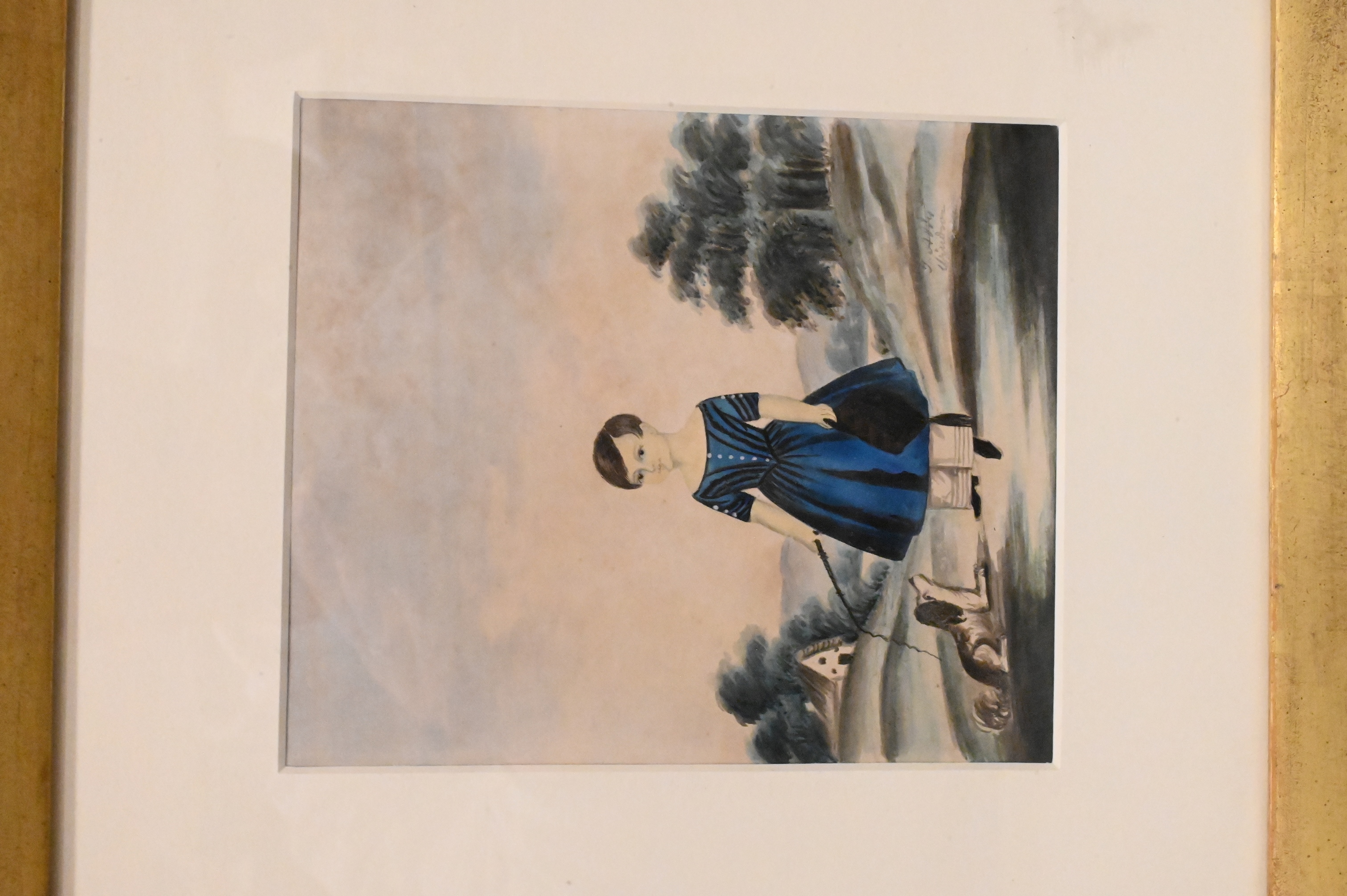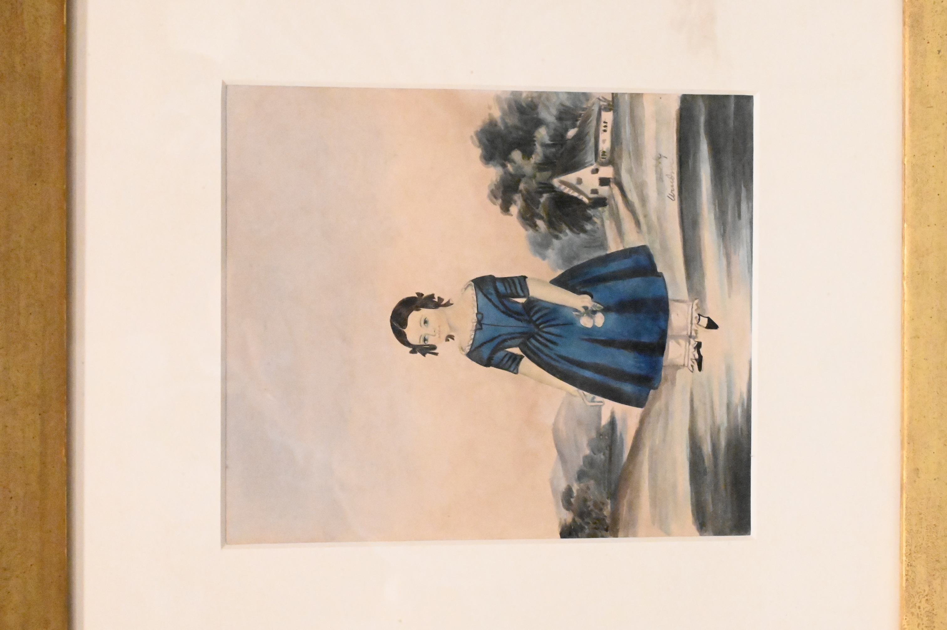 Children in blue dresses and landscape