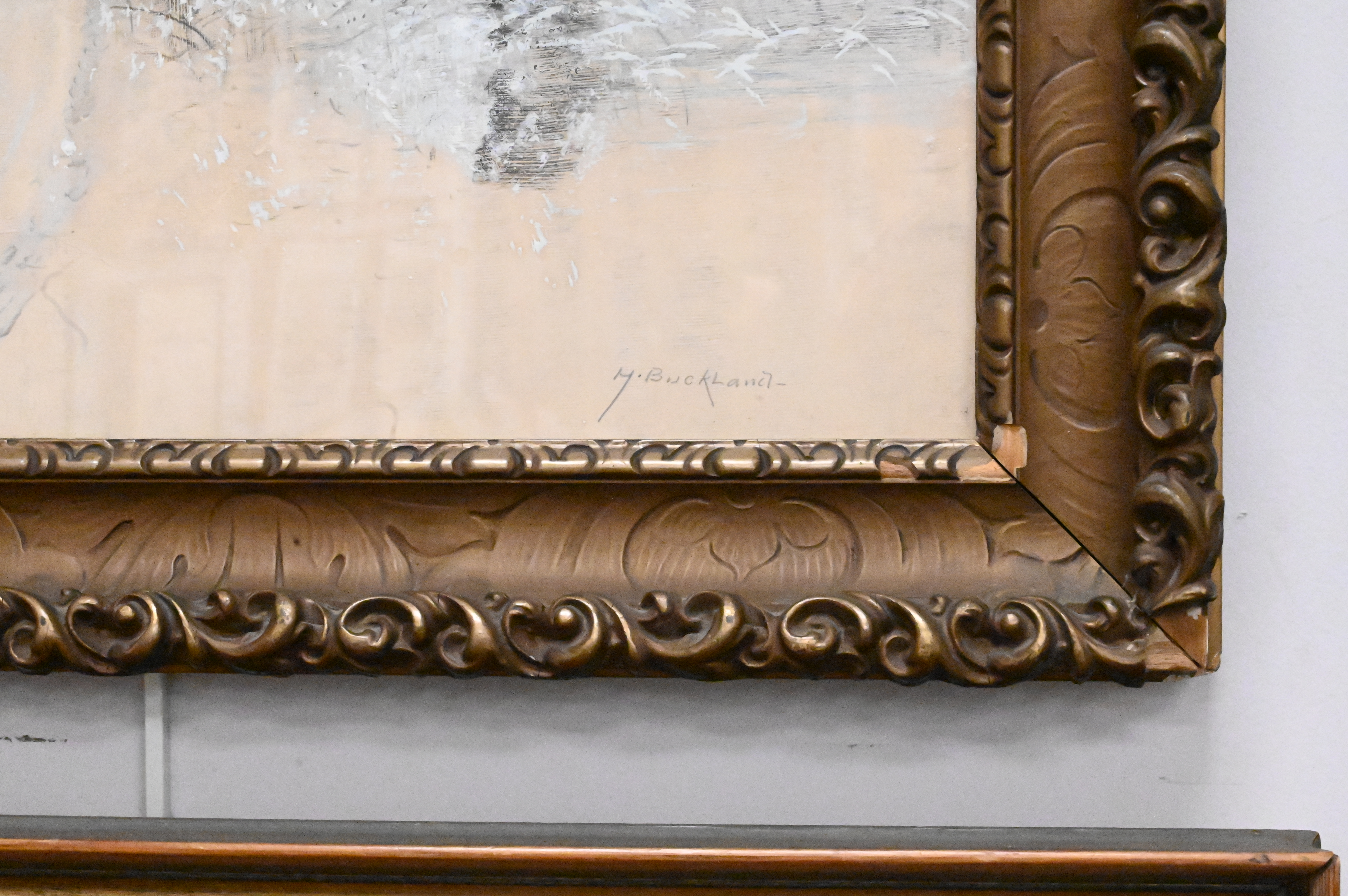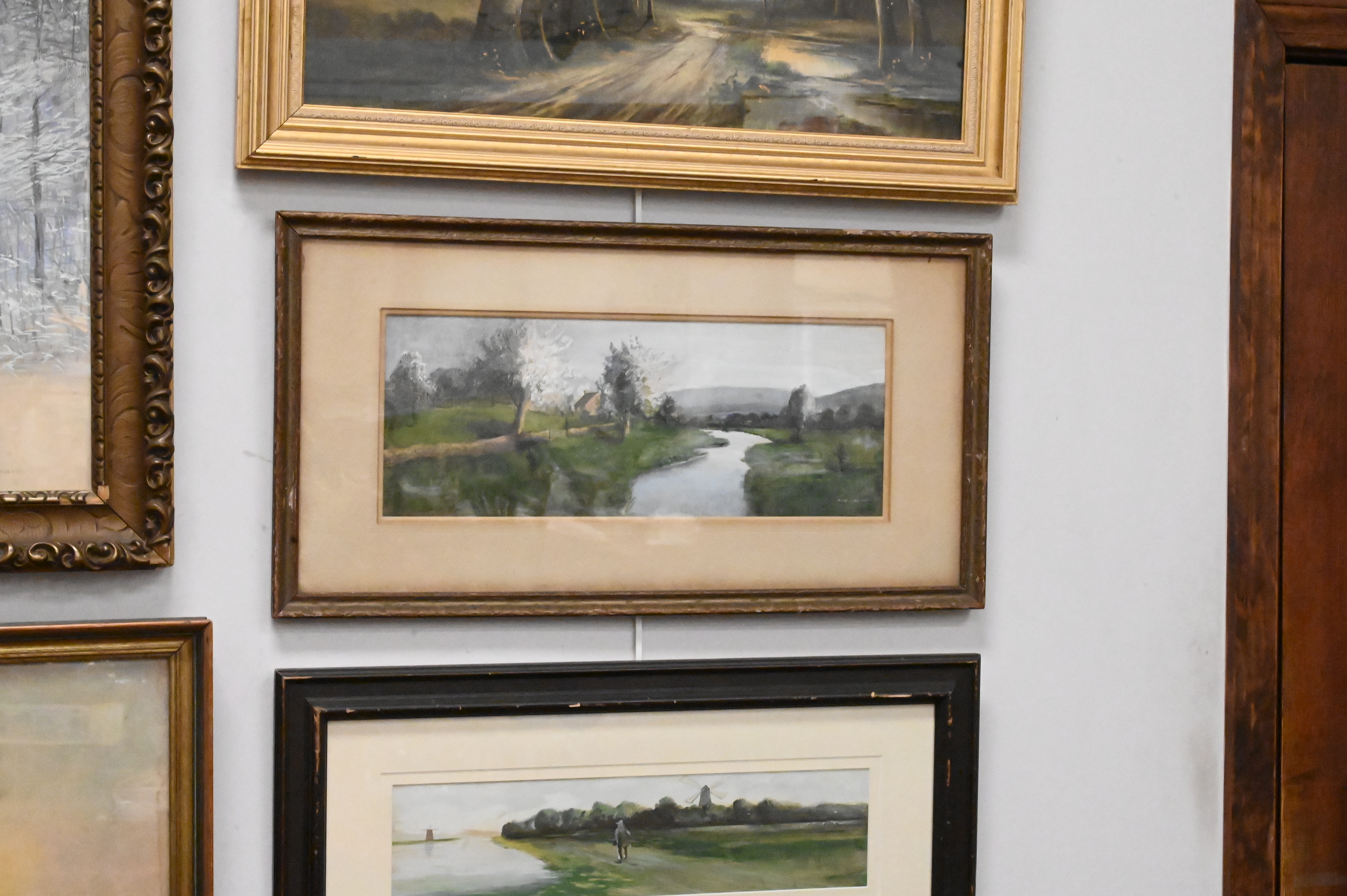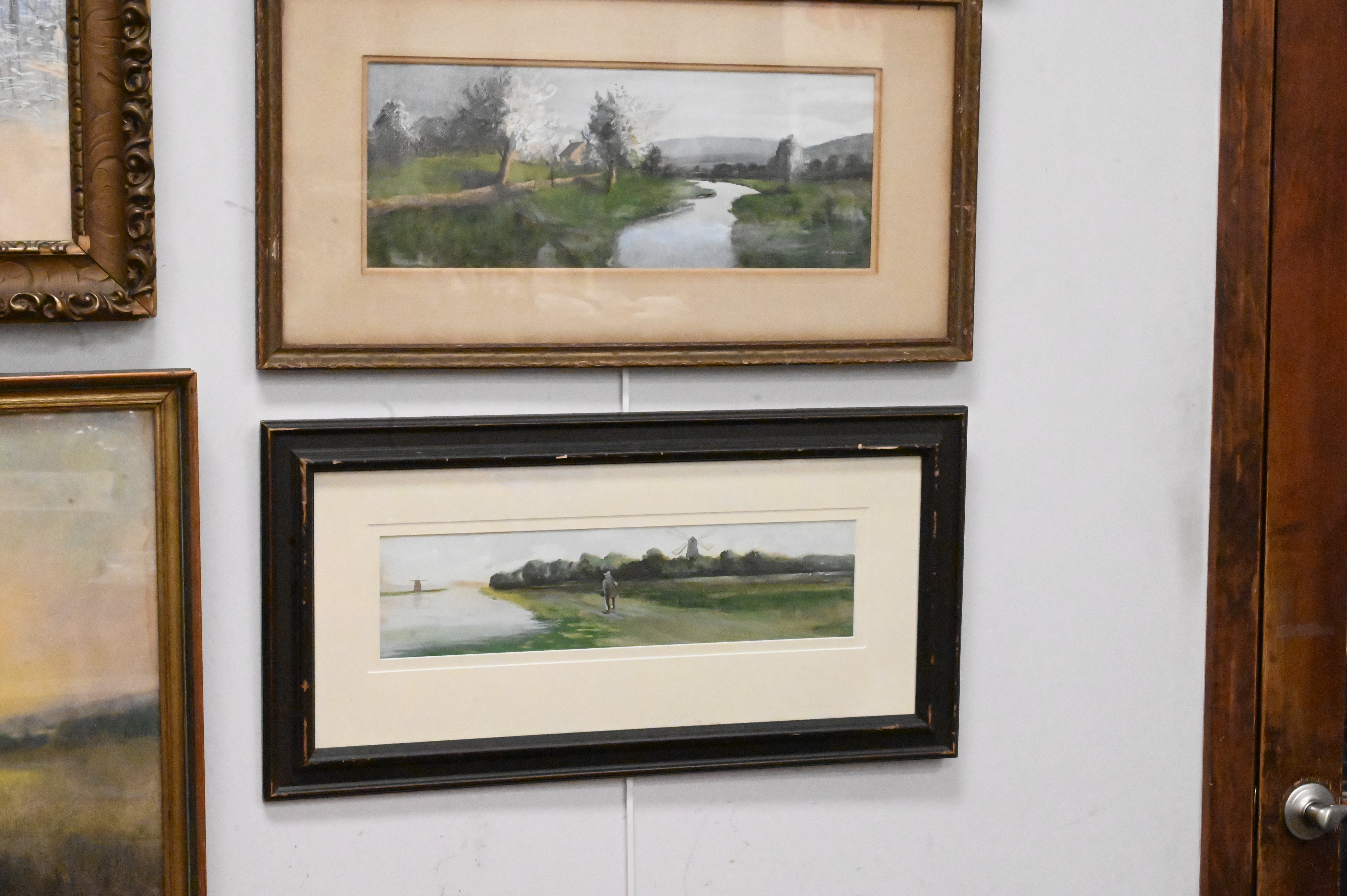 Eight H. Buckland Watercolors, six to include a vertical landscape, signed H. Buckland, largest 15 1/2″ x 27″; a landscape, farm scene, signed, 22″ x 28″; along with a signed snowscape, 27 1/2″ x 21″.