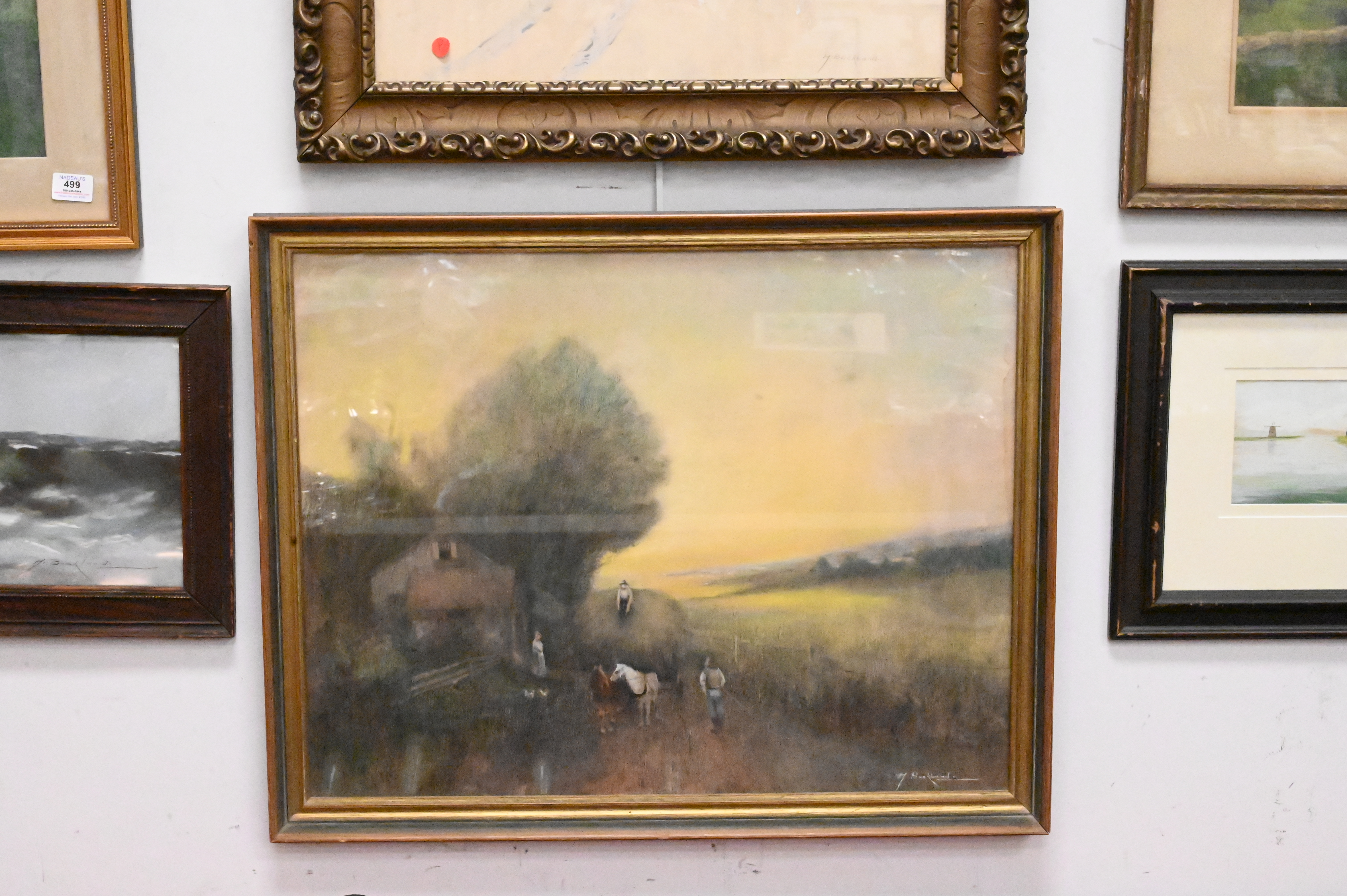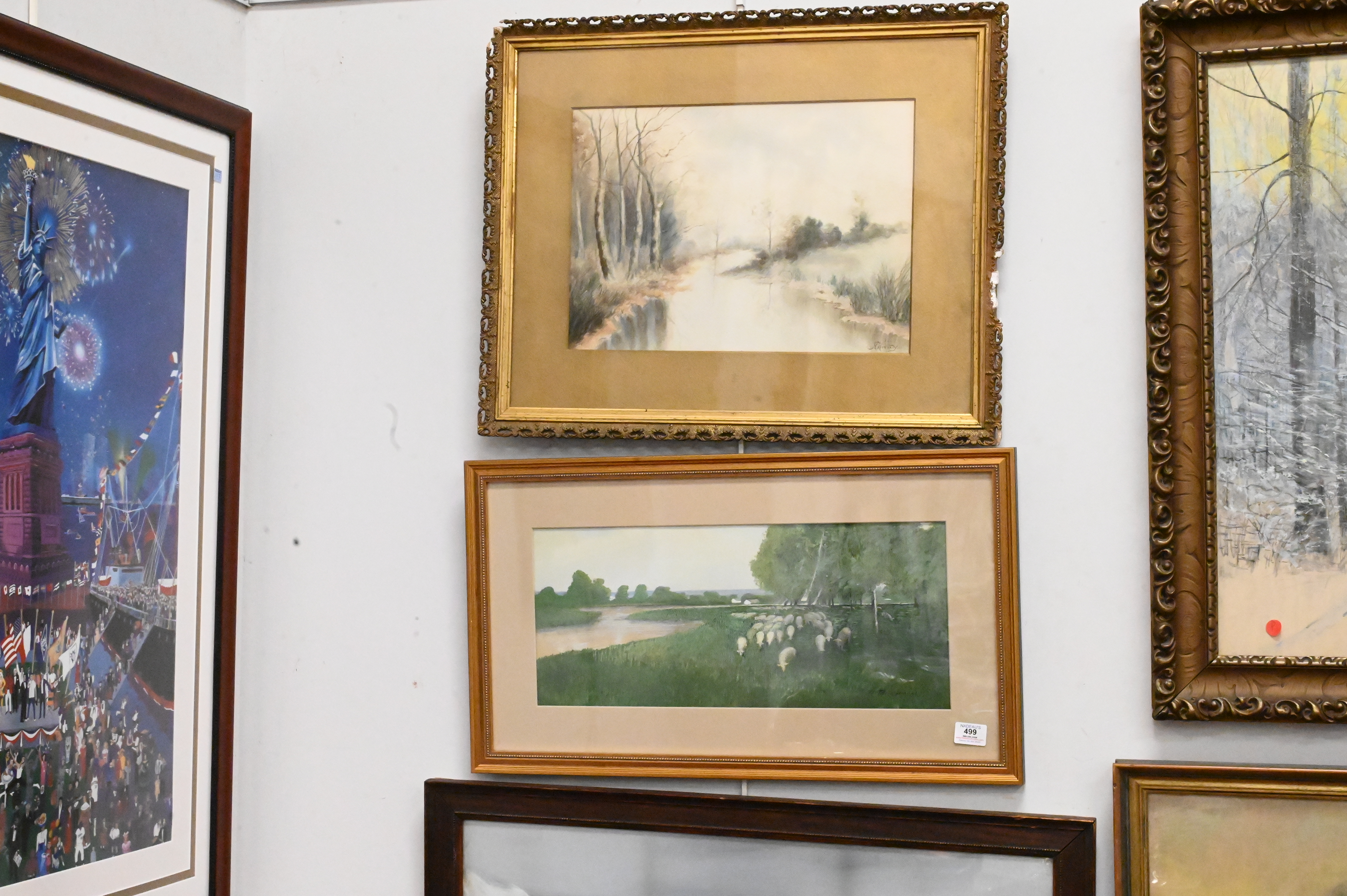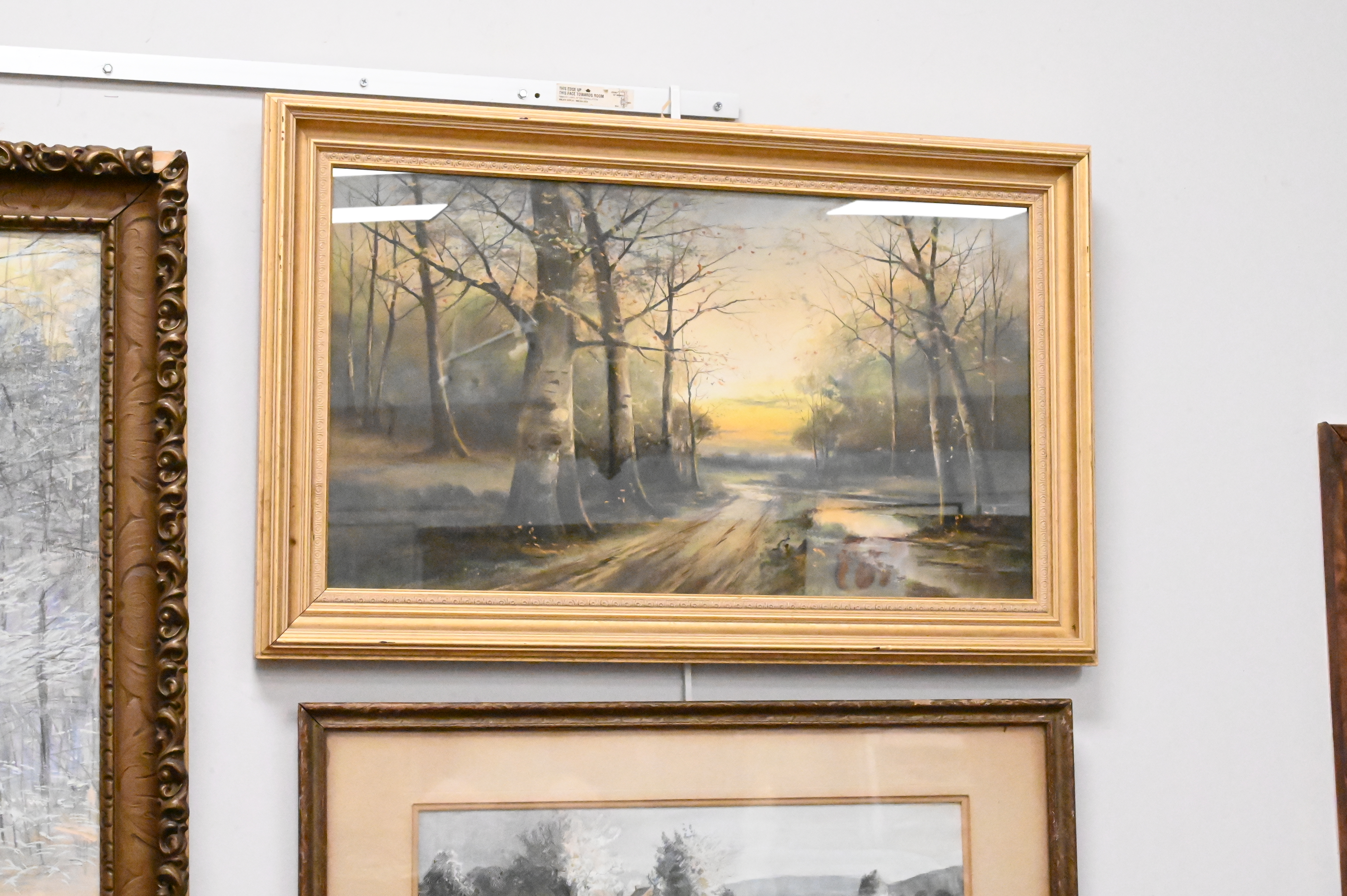 Eight H. Buckland Watercolors, six to include a vertical landscape, signed H. Buckland, largest 15 1/2″ x 27″; a landscape, farm scene, signed, 22″ x 28″; along with a signed snowscape, 27 1/2″ x 21″.