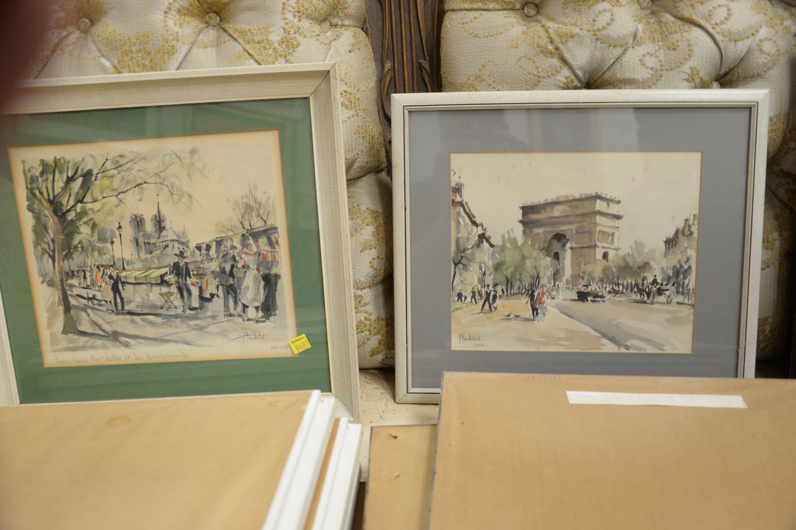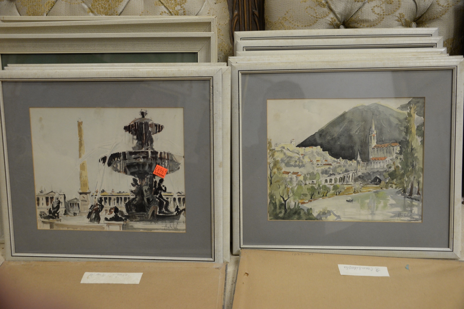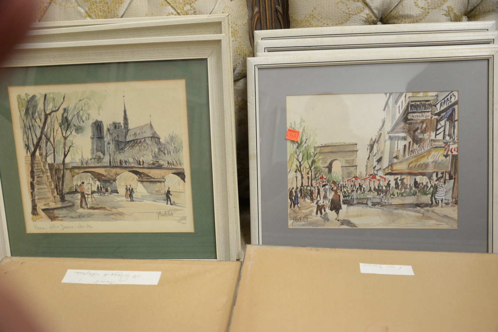 Set of Eighteen Franz Herbelot French Lithographs Paris street scenes 8-1/4 x 10-1/4 sight