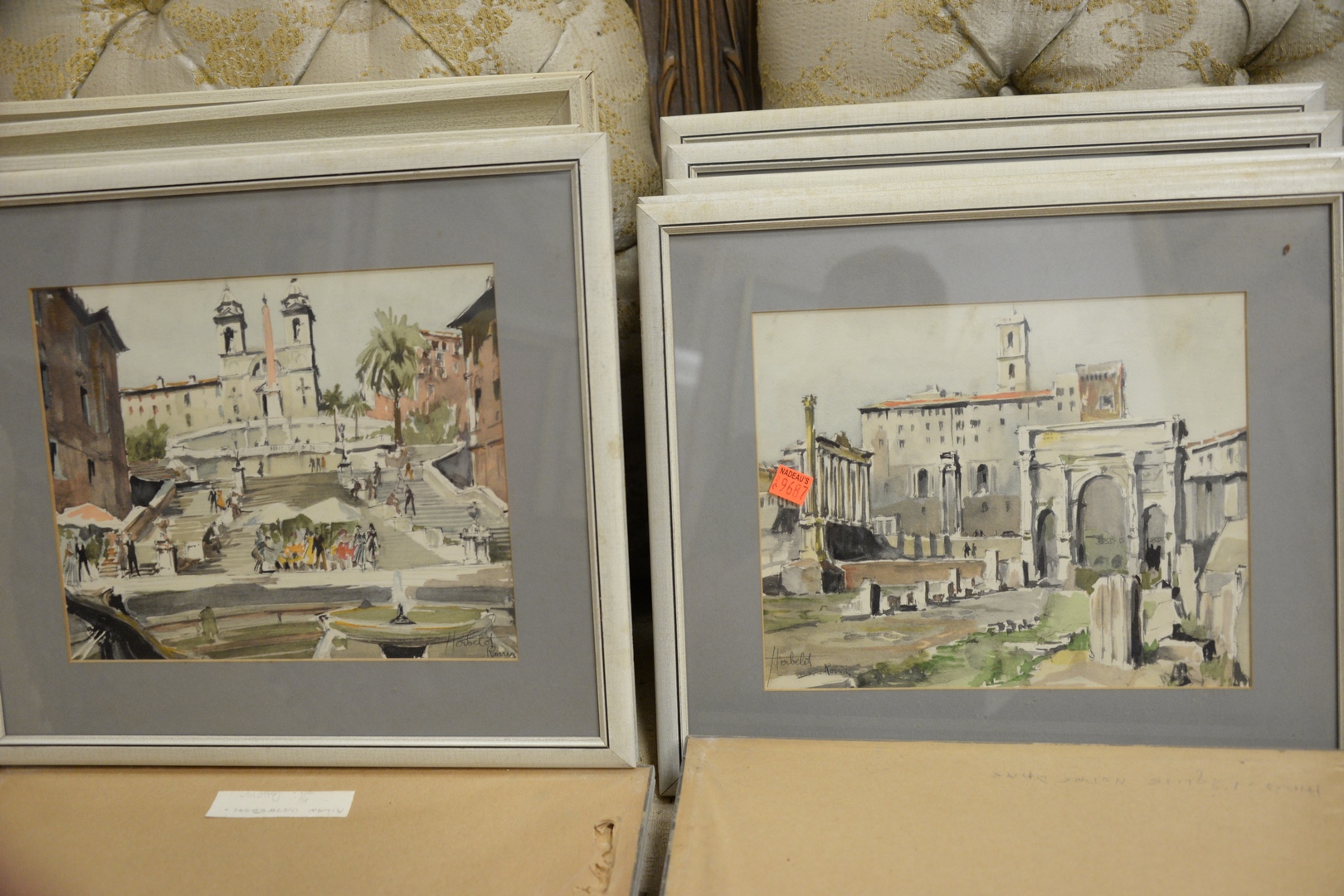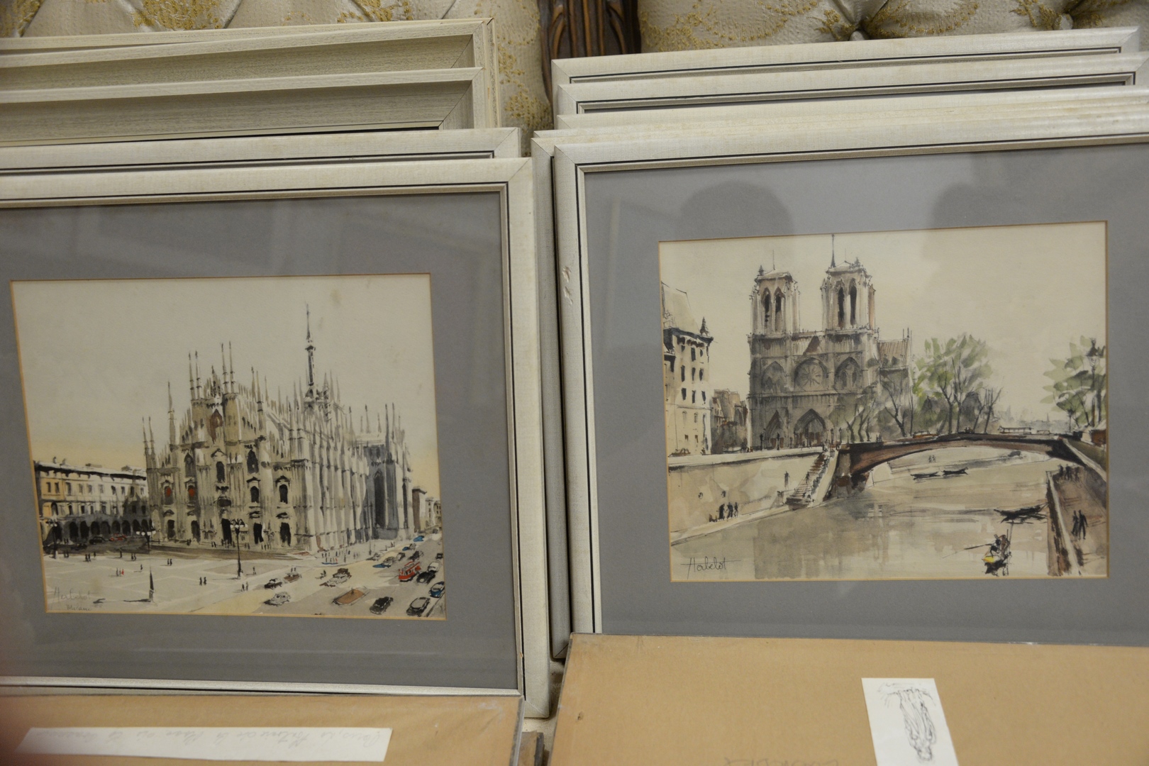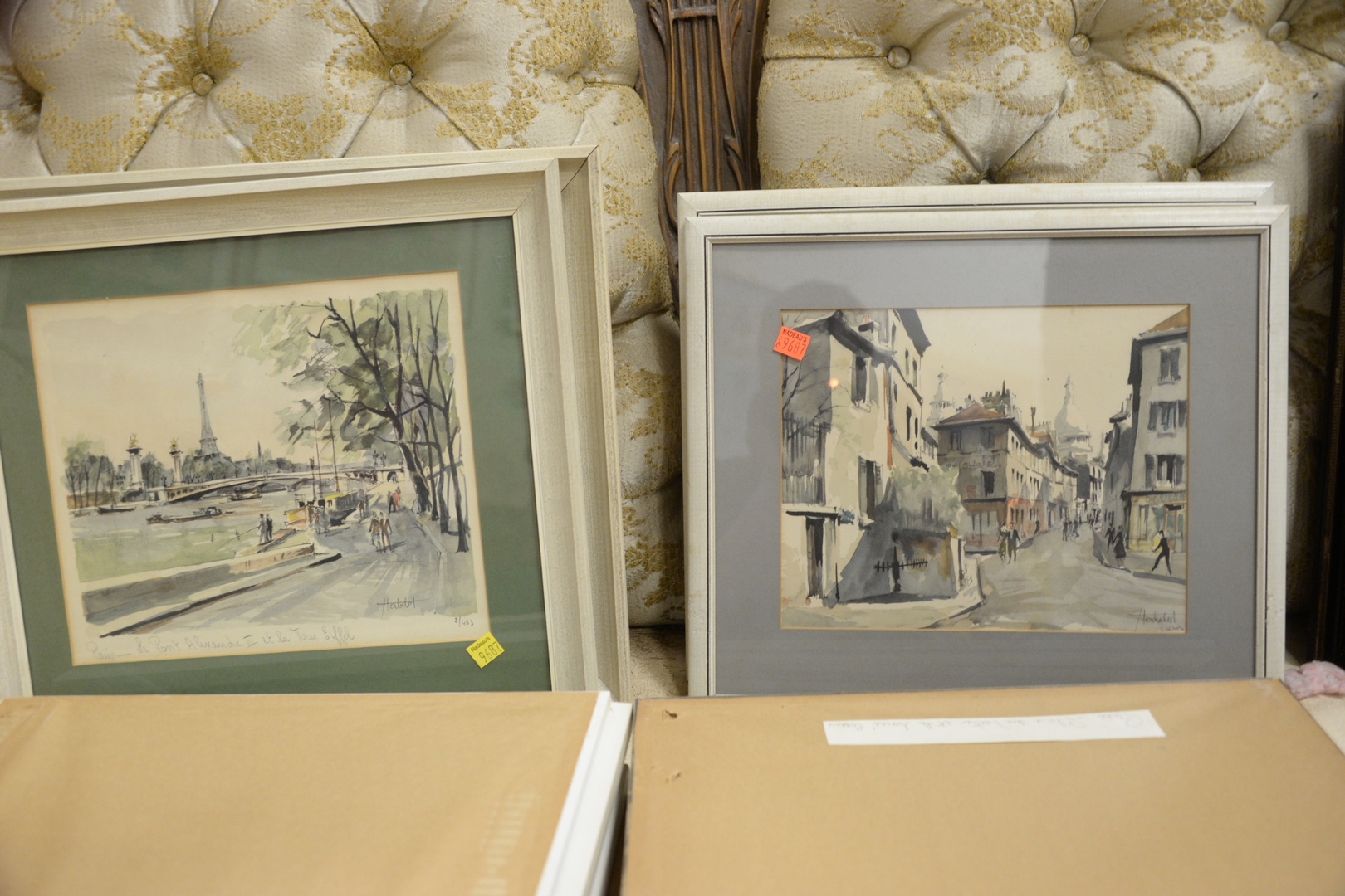 Set of Eighteen Franz Herbelot French Lithographs Paris street scenes 8-1/4 x 10-1/4 sight